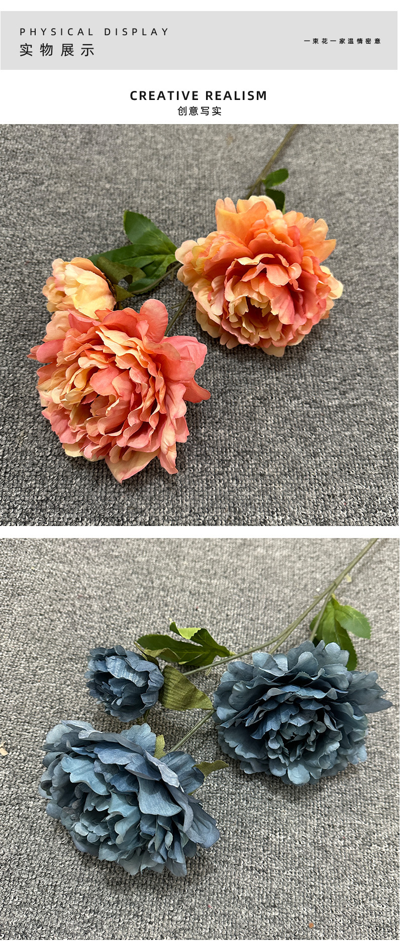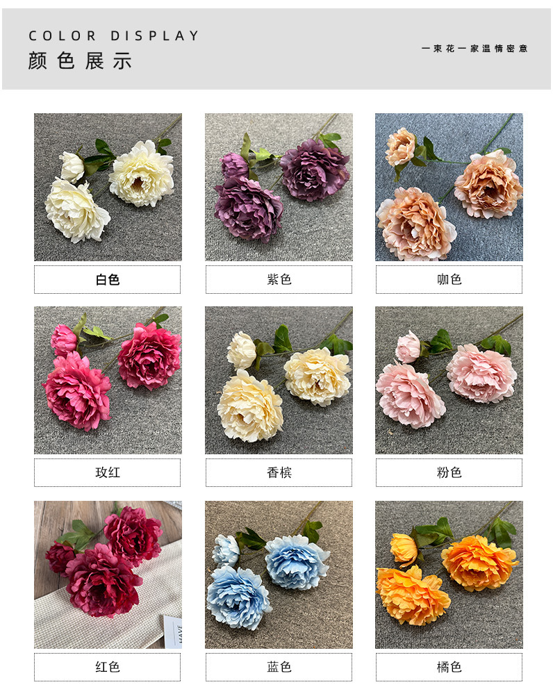 Nueva pintura al óleo Luoyang 3 peonía flor artificial boda salón de bodas arreglo floral hogar Hotel decoración transfronteriza