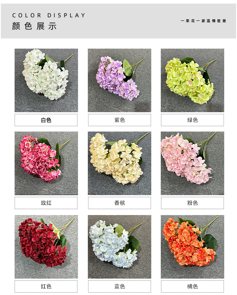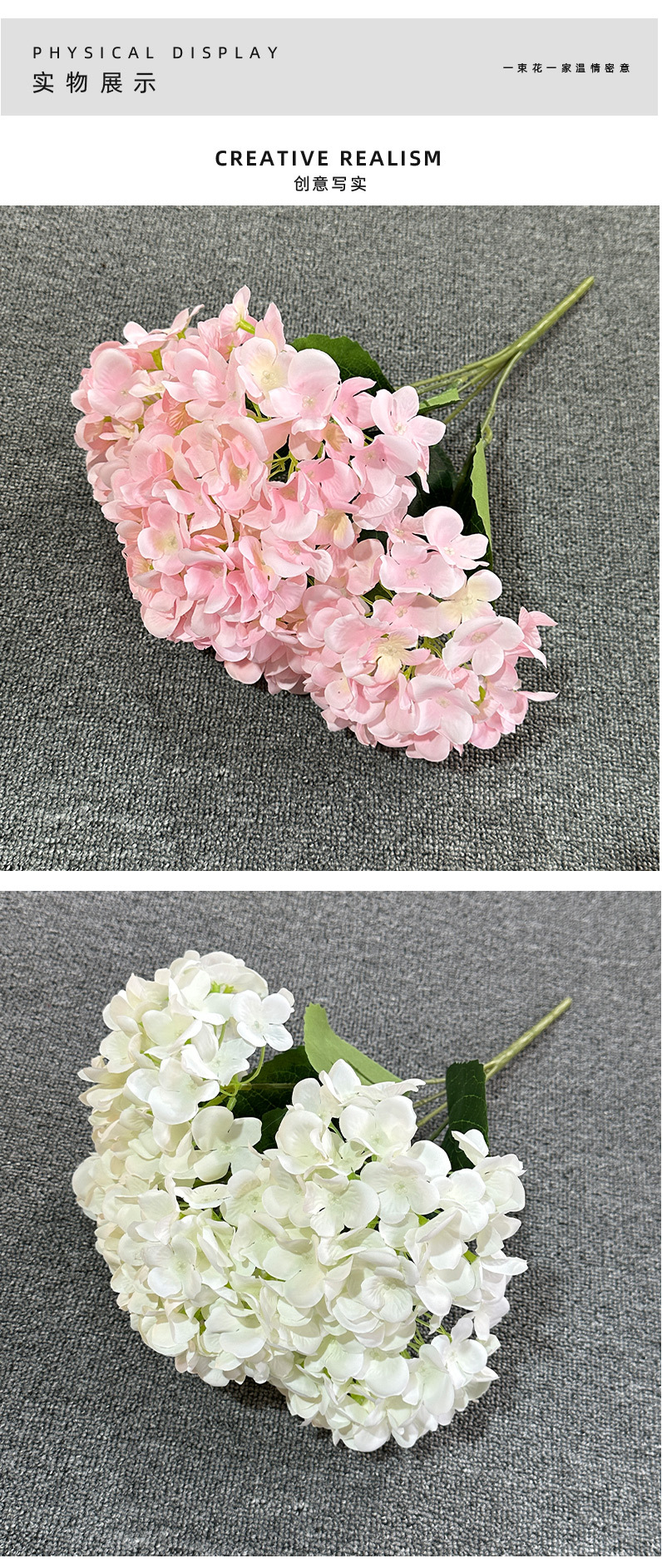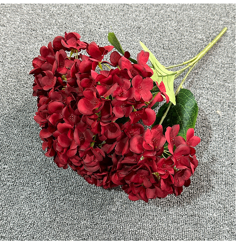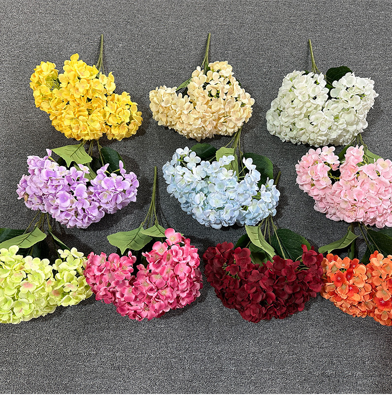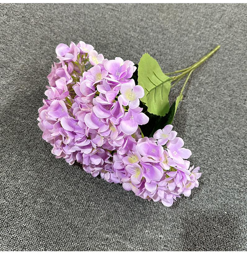 Celebridad en línea 5-cabeza macaron Hortensia flor artificial tela de seda hotel boda Boda arreglo floral decoración flor falsa transfronteriza