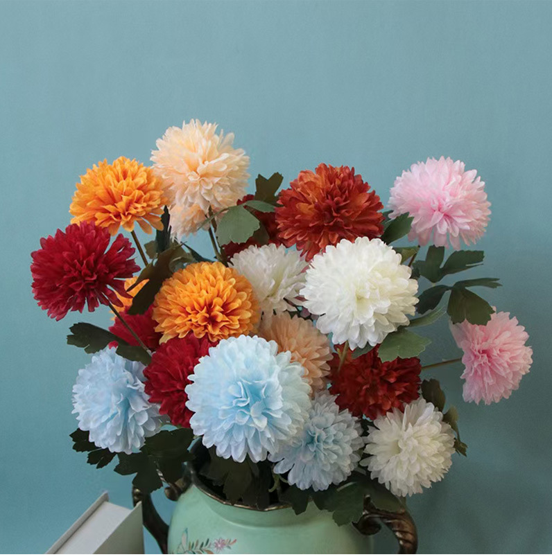 Crisantemo artificial Arreglo de La boda crisantemo de tres cabezas decoración de la fotografía de la boda 3-cabeza cebolla bola flor Hortensia flor falsa