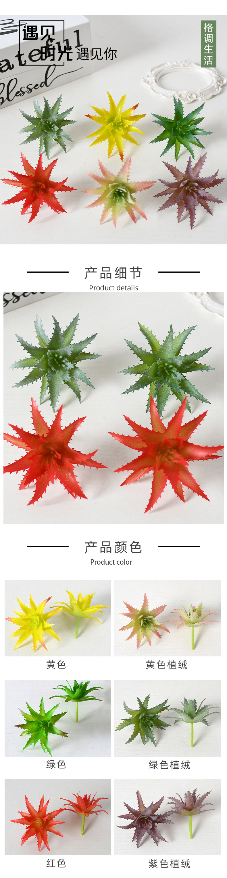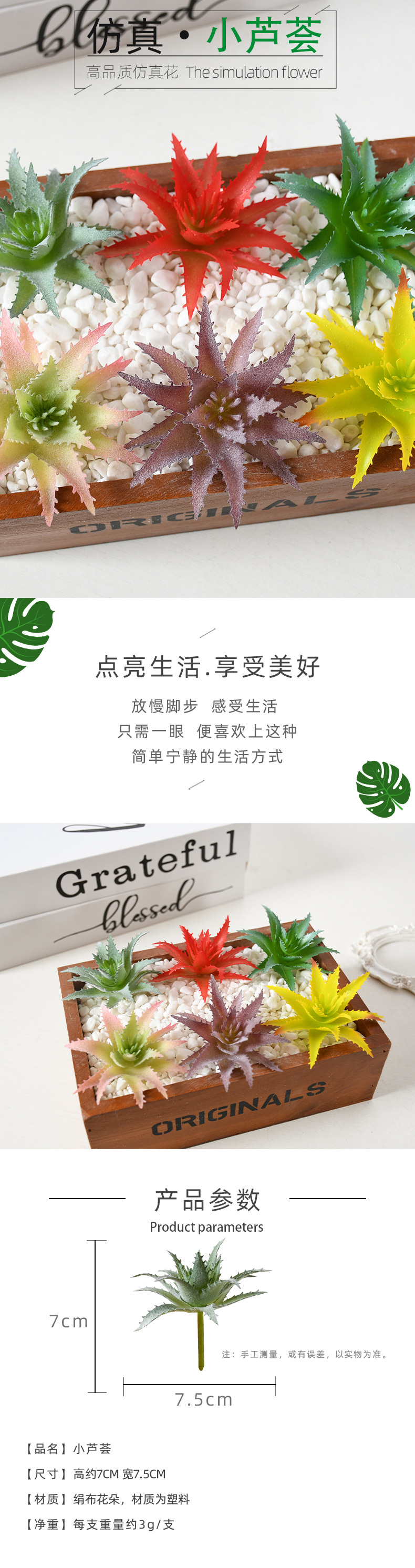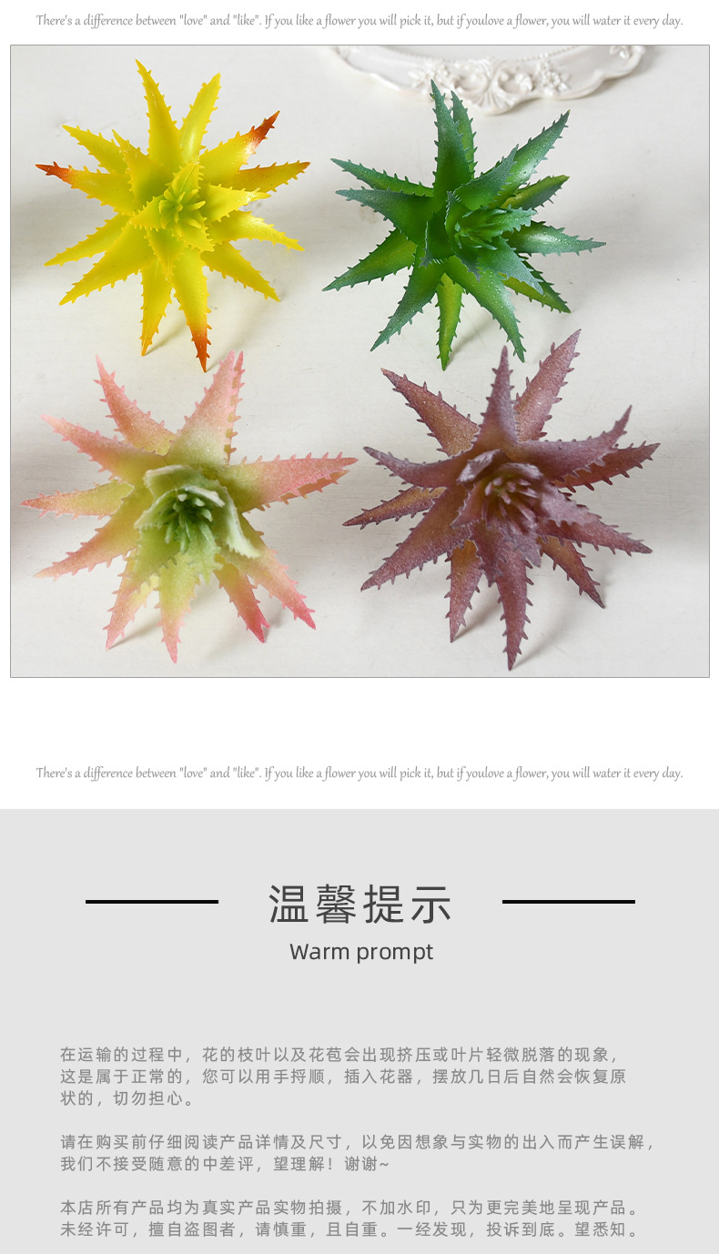 | Color | Pequeño Aloe Amarillo, Pequeño Aloe Amarillo Flocking, Pequeño Aloe Verde, Pequeño Aloe Verde Flocking, Pequeño Aloe Rojo Púrpura Flocking, Pequeño Aloe Azul Flocking |