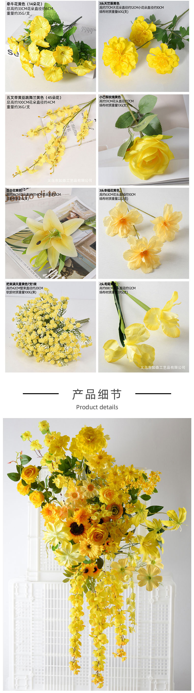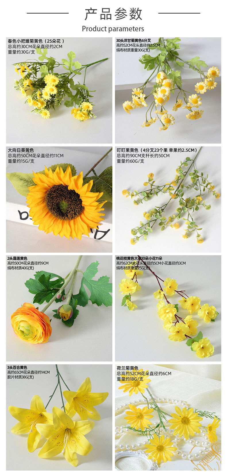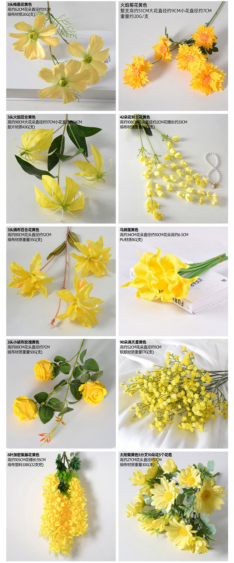 | Colores | Crisantemo holandés amarillo,Gerbera amarilla,diamante rosa amarillo,Amapolas amarillo,Amapolas Naranja Amarillo,Amarillo amapola 3D,Amarillo Lirio Dorado,3 lirio de tela de seda amarillo,3 cabezas de lirio amarillo,3 flores Gesang amarillas,3 cabeza llama lirio amarillo,Amarillo Peonía,3 peonía extranjera naranja,brownie amarillo,3 cabezas de franela pequeña rosa amarilla,amarillo violeta,5 horquillas bailando azul amarillo,Rosa de Diamante Caramelo de 3 Cabezas,Pon un montón de estrellas amarillas,Jingding Fruit Amarillo,Flor feliz amarillo,Flor de durazno amarillo,Manzano silvestre de rama alta,Manzanilla amarilla,Crisantemo de llama amarillo,Hortensia de 5 cabezas, amarillo mandarina,9 cañas amarillas,Eryngium amarillo champán (claro),Amarillo lirio de los valles (campana),Lirio de los valles amarillo de tallo largo,Flor de Galla de Mariposa de 6 Cabezas, Amarilla,Cañas amarillo,Calla amarillo,Lirio de Cala, Amarillo con Centro Blanco,Able amarillo,Hortensia Plisada - Amarilla,5 cabezas pequeño París naranja,Gypsophila amarillo,Grande franela rosa amarillo,Pelargonium amarillo,2 cabezas Lulian,Iris amarillo,3 cabezas pequeño París naranja,Ratán de girasol,Acebo norteamericano 6 tenedores,Acebo norteamericano 10 tenedores,Cola de perro bicolor verde,Cola de perro hierba naranja,Rosa naranja,Amarillo caléndula,Champán de caléndula,Amarillo rosa hidratante,Phalaenopsis de 9 cabezas con manchas amarillas otoñales (transparente),Lily de rama larga amarillo,Girasol grande amarillo,Pu tulipán amarillo,Phalaenopsis de otoño amarillo (transparente),Tulipán hidratante amarillo,Pequeño París amarillo,Pequeña franela amarilla,Gypsophila Clásica Amarilla de Tres Puntas |