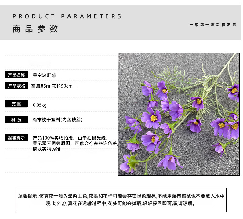 | Colores | Cosmos estrellado blanco,Cosmos estrella rosa,Cosmos estrellado rojo,Cosmos estrellado amarillo,Cosmos azul estrellado,Cosmos verde estrellado,Cosmos de cielo estrellado púrpura claro,Cosmos púrpura estrellado |