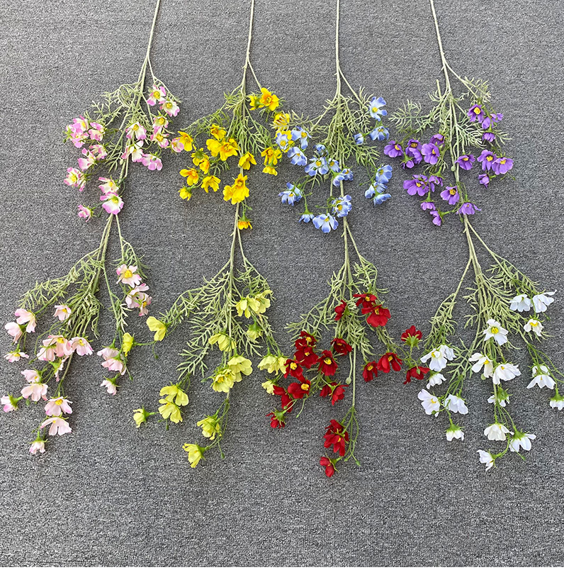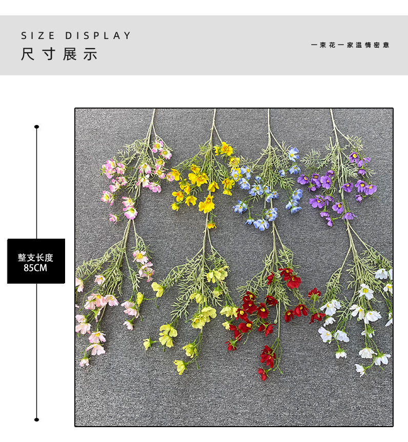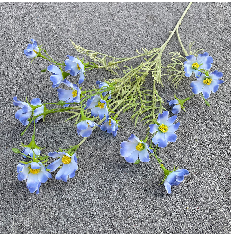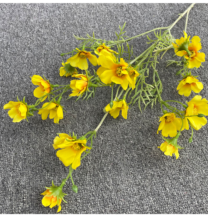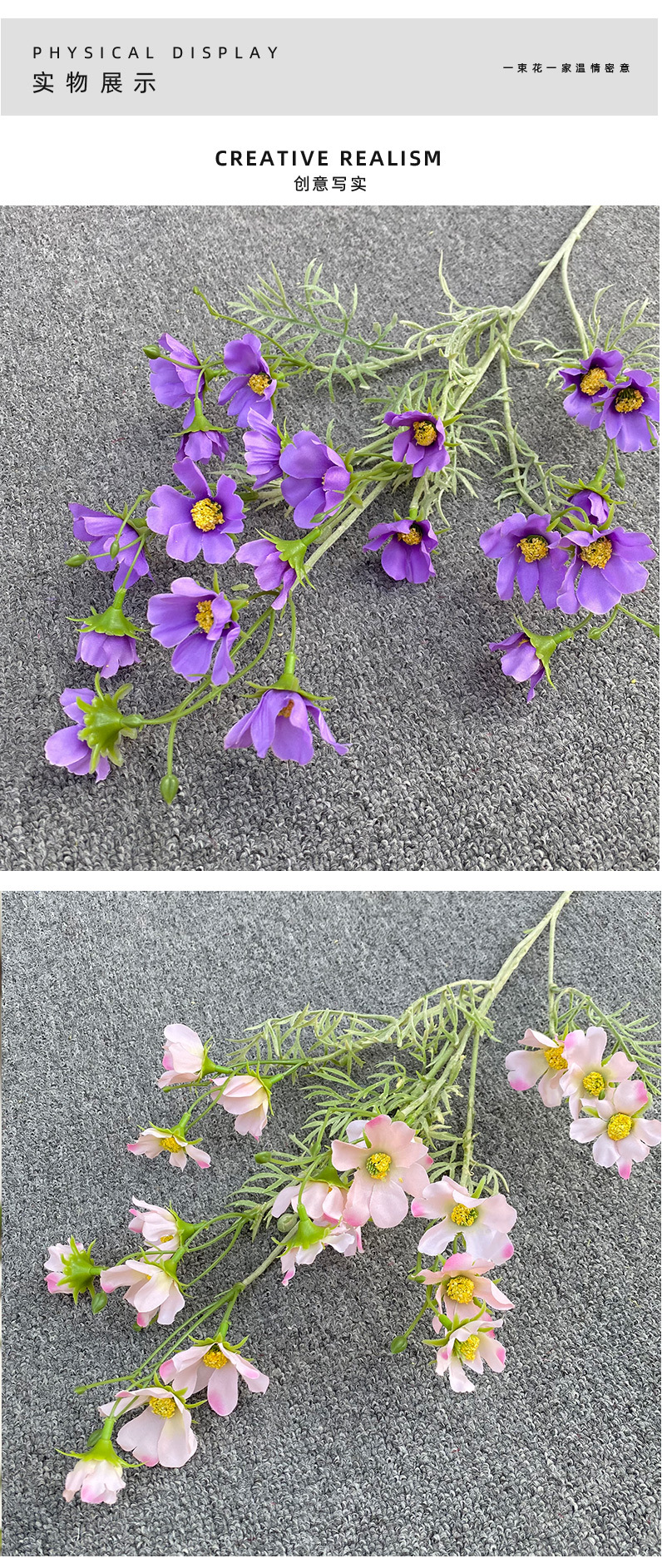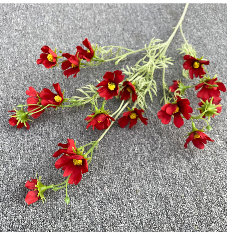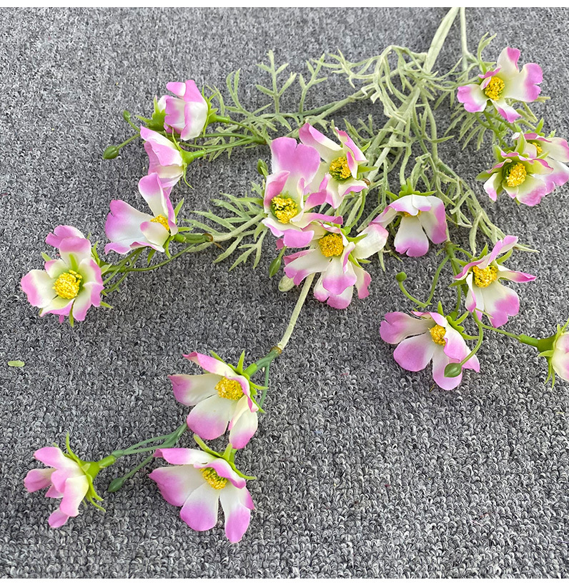 Nueva flor de imitación de alta calidad flocado estrellado cosmos de múltiples cabezas pequeño crisantemo salvaje pequeña red de boda floral pared de cártamo