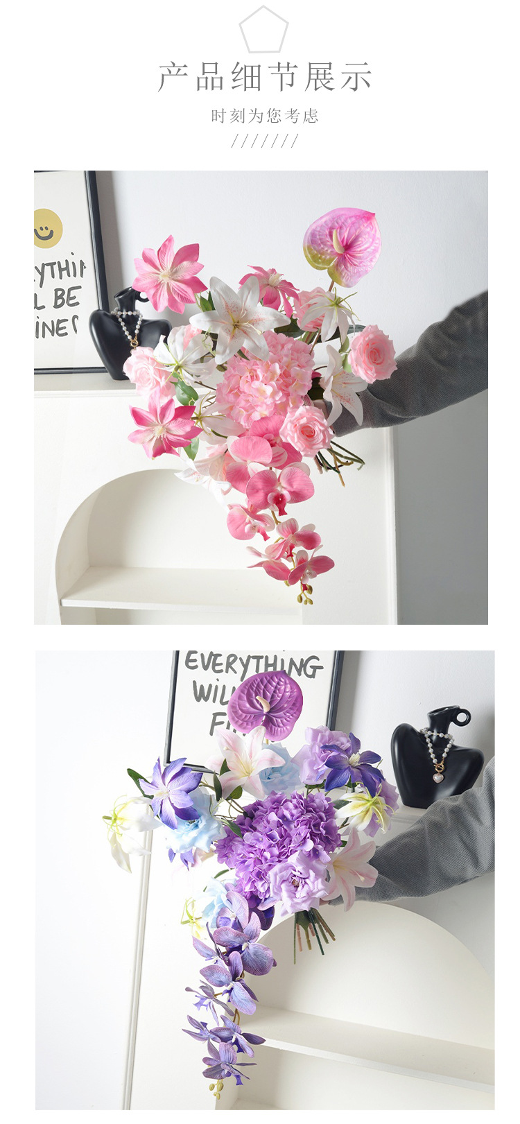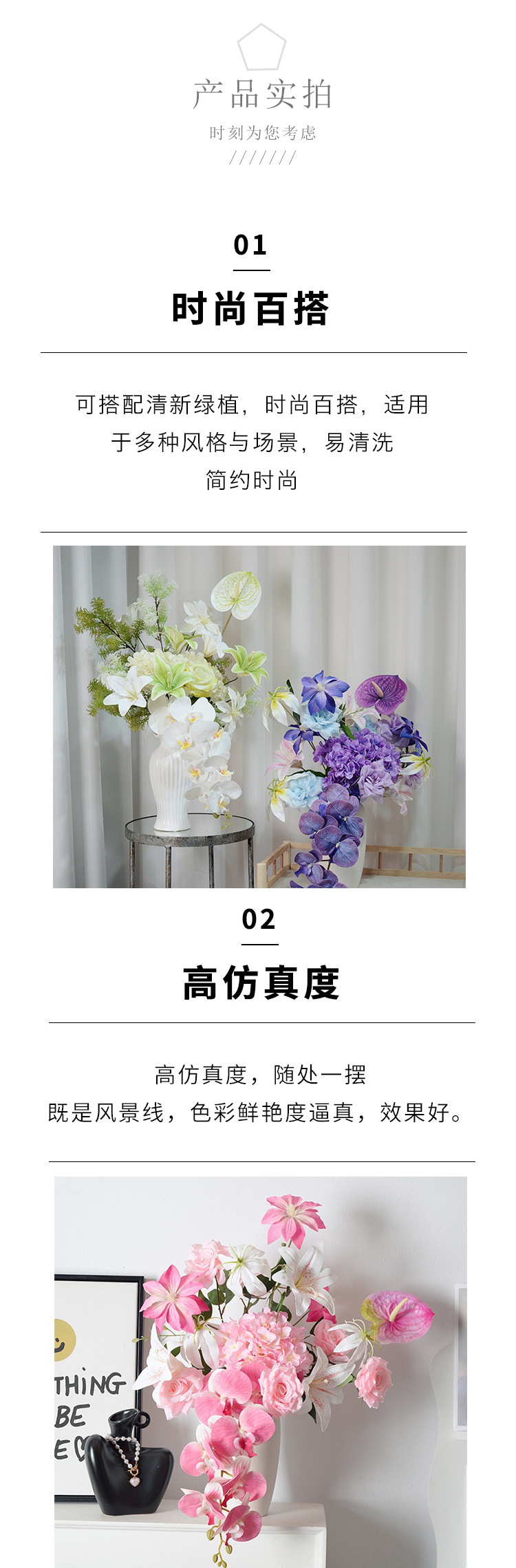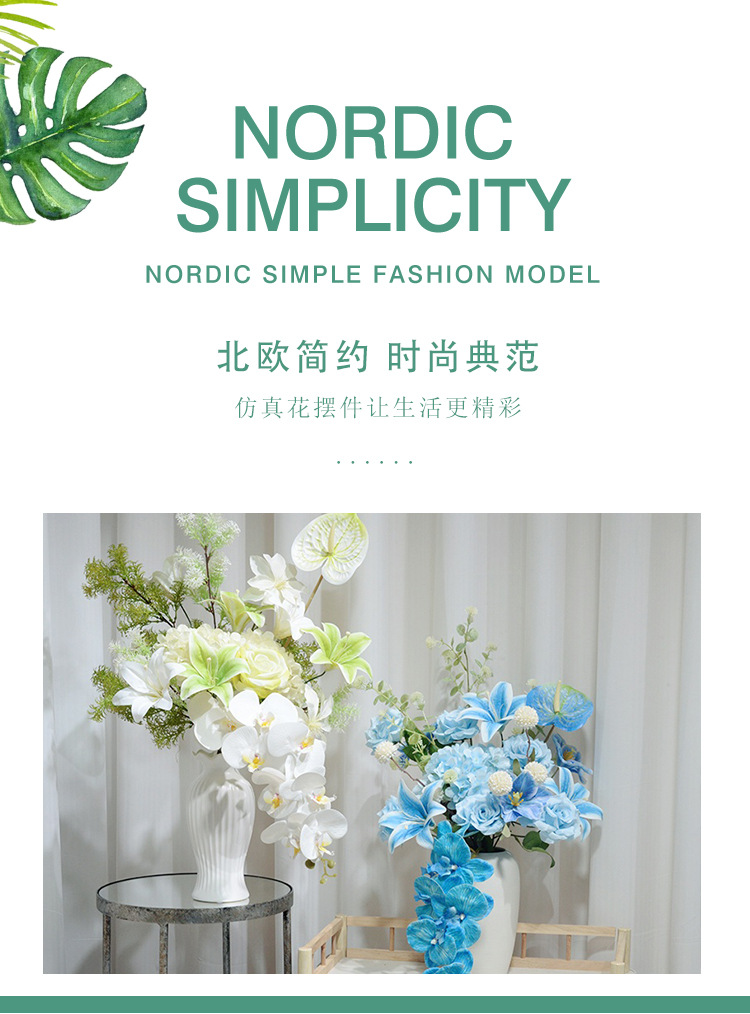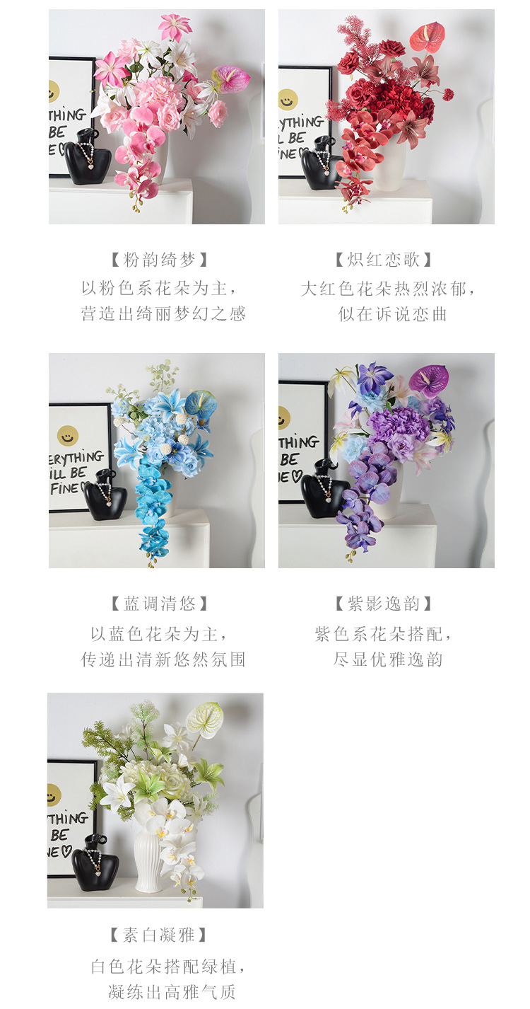 Diseñador con lujo ligero Monet estilo Phalaenopsis combinación de flores artificiales ramo falso boda decoración del hogar sentido de alta gama