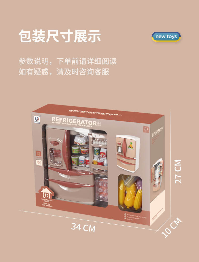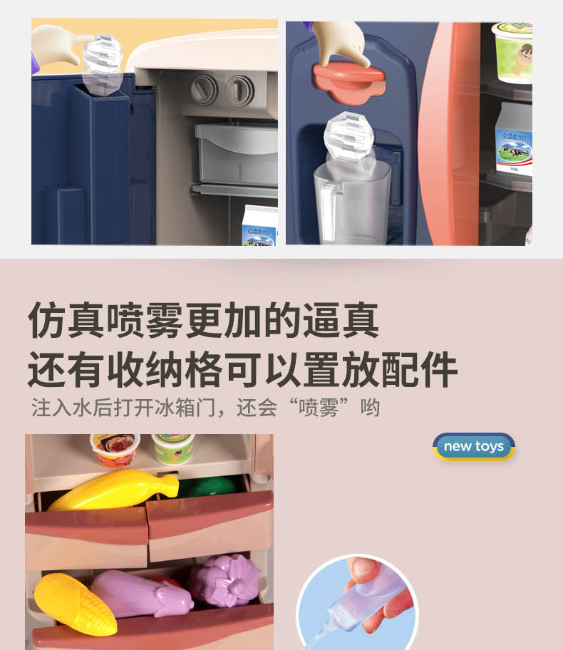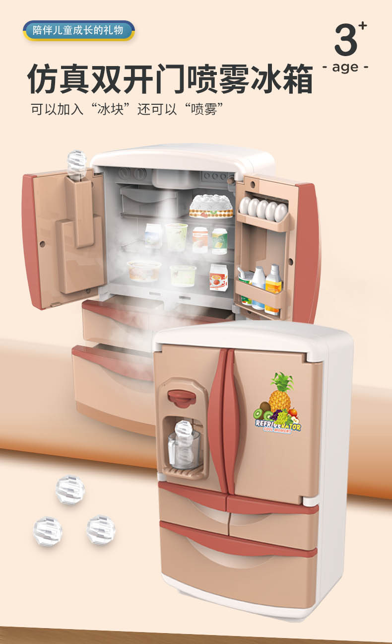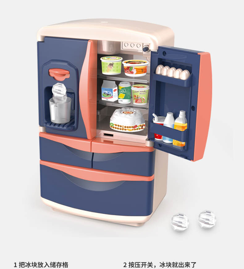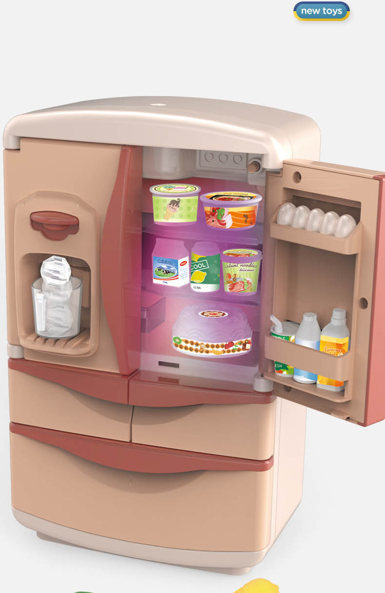 Refrigerador de juguete grande para niñas, mini cocina infantil con juego completo, gran set de regalo de cumpleaños para niños de tres años.
