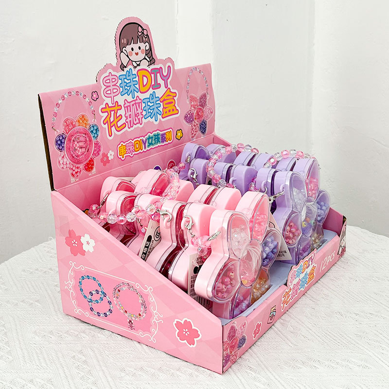 Niñas juguetes caseros petal caja princesa pulsera perlas joyas caja de joyería regalos de la escuela de entrenamiento