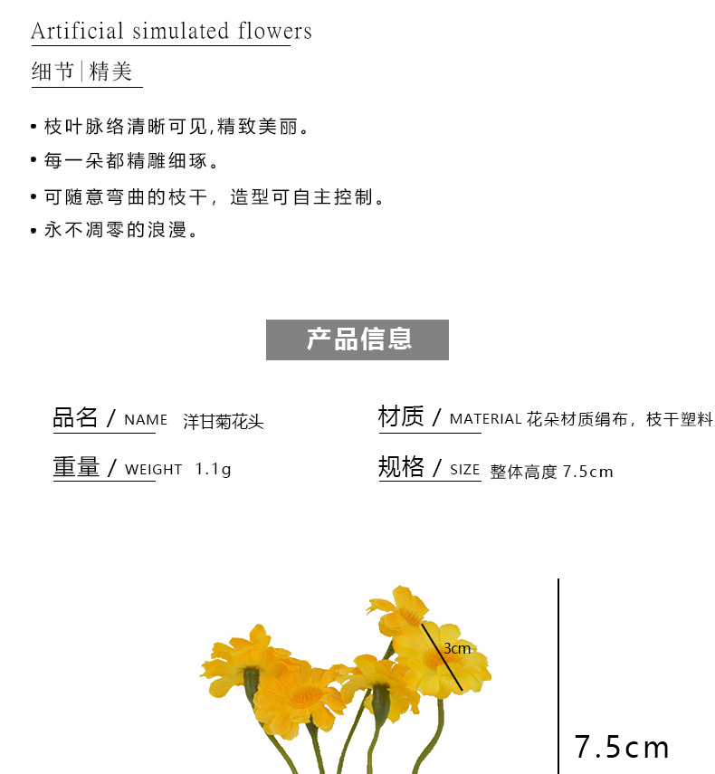 Camomilla blanca margarita flor de simulación ramo de graduación caja de materiales paquete didiy flor clipper sombrero flor decorativa