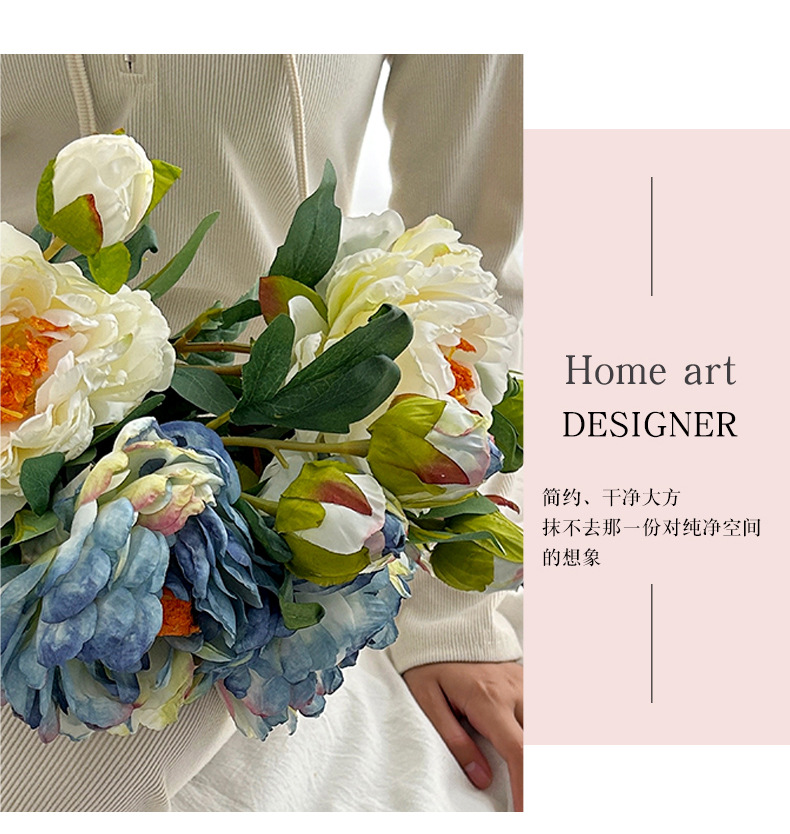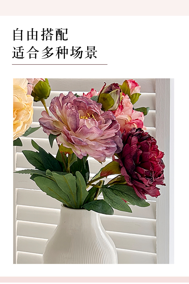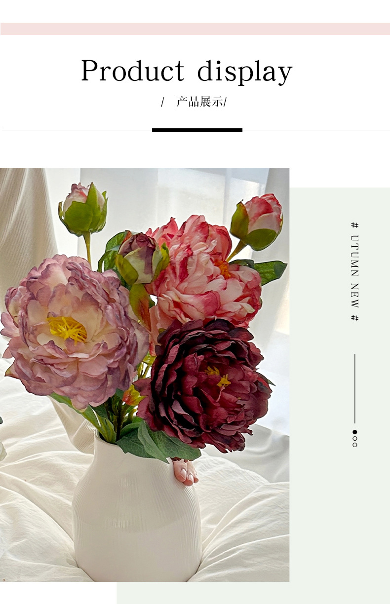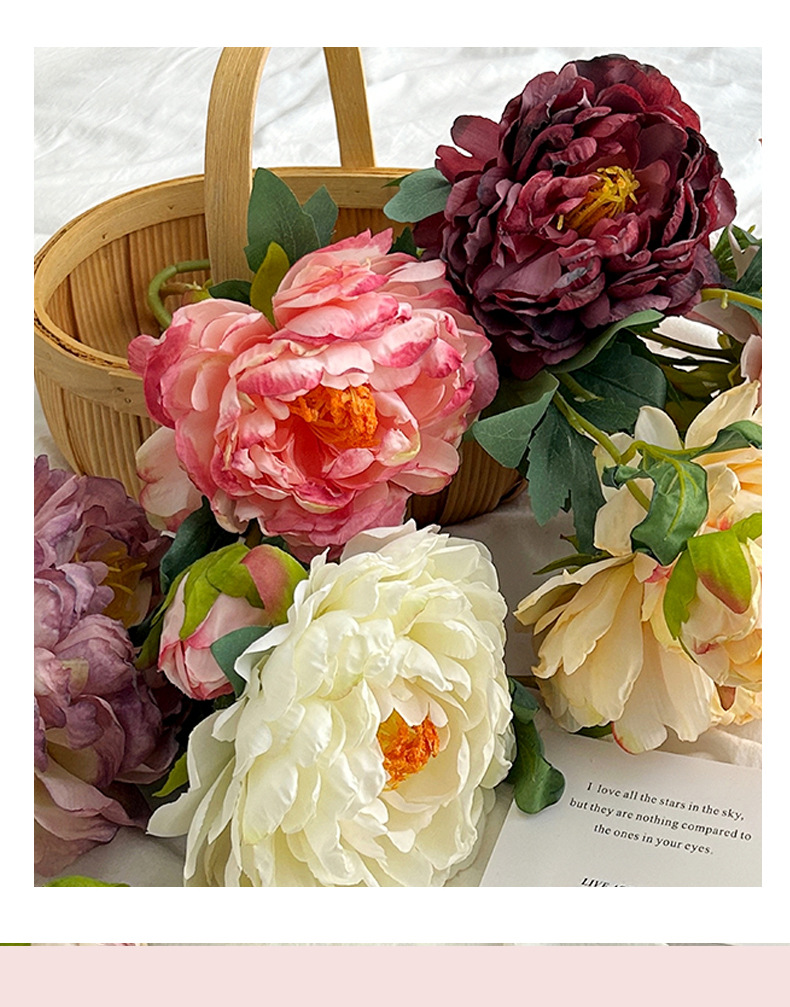 Borde quemado peonía flor artificial pintura al óleo vintage borde horneado peonía Flor de seda interior sala de estar decoración del hogar Accesorios de fotografía
