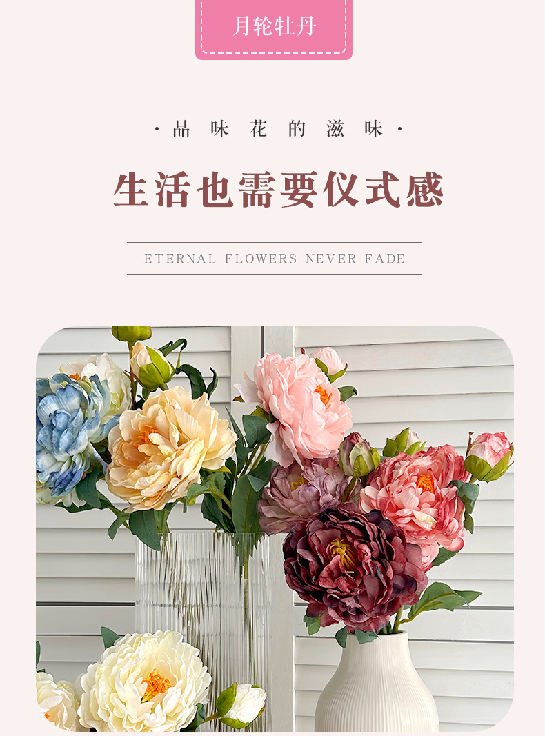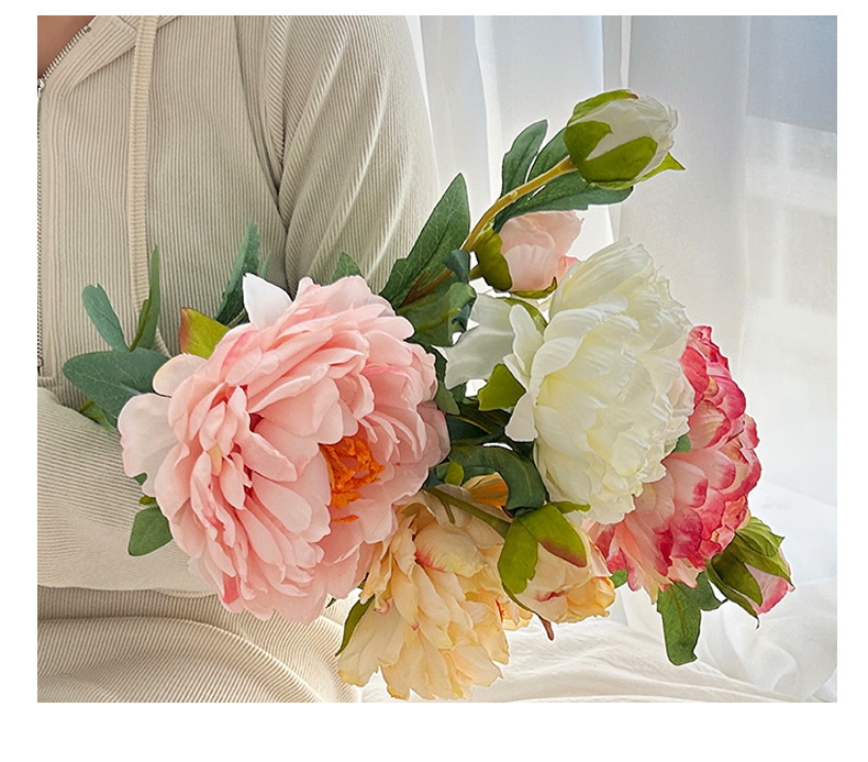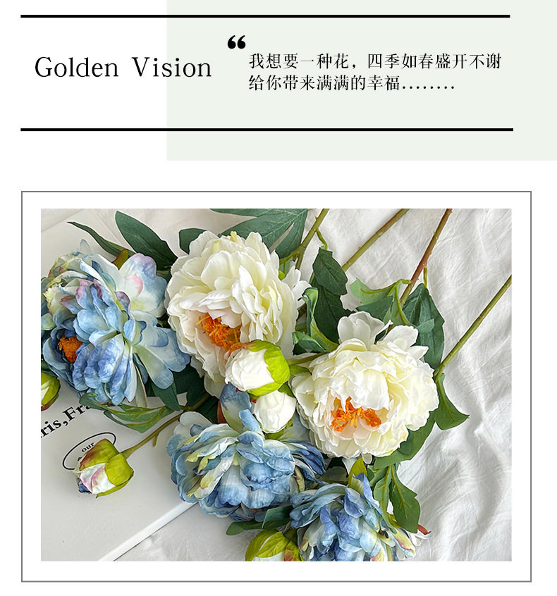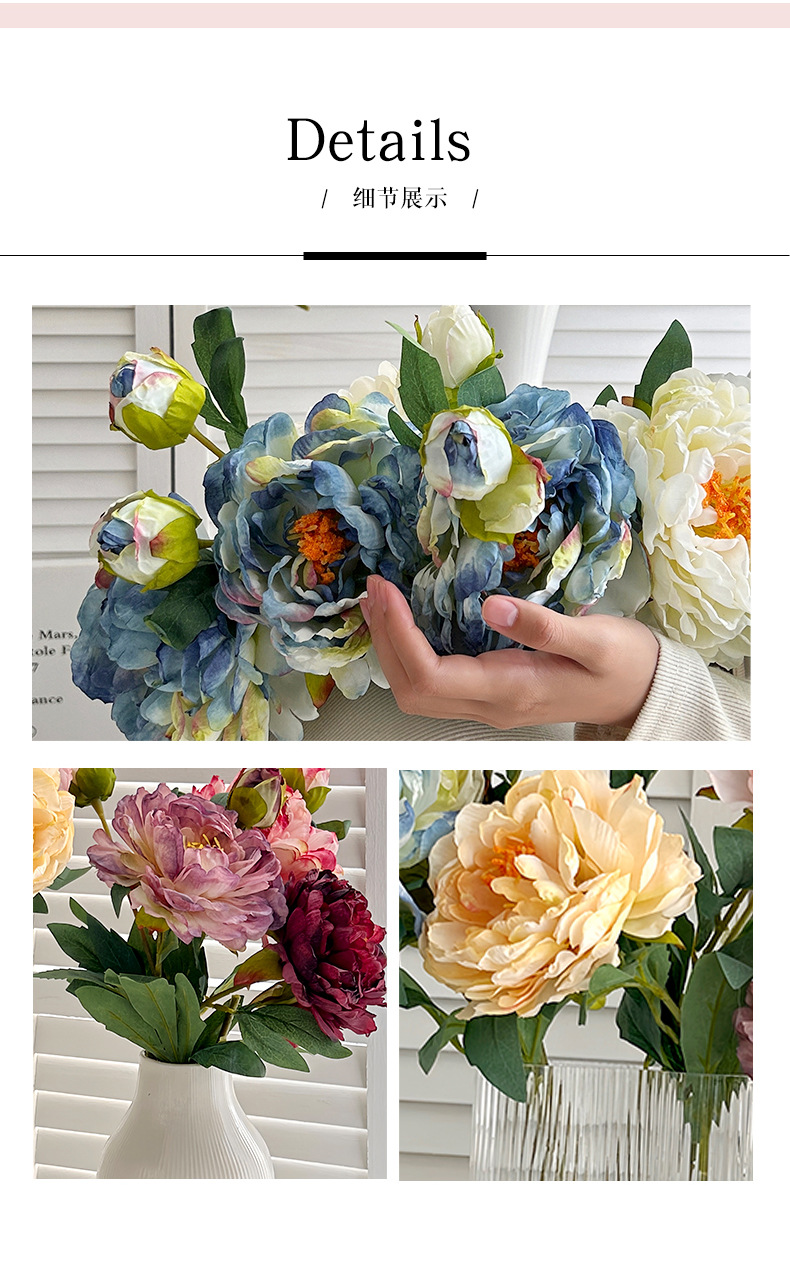 Borde quemado peonía flor artificial pintura al óleo vintage borde horneado peonía Flor de seda interior sala de estar decoración del hogar Accesorios de fotografía