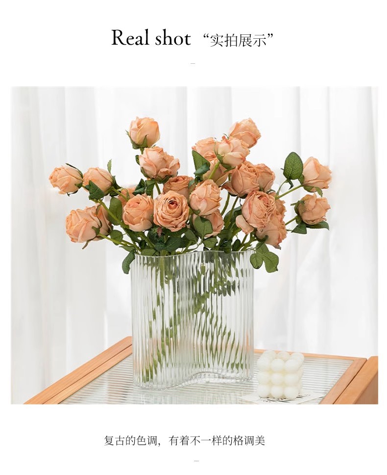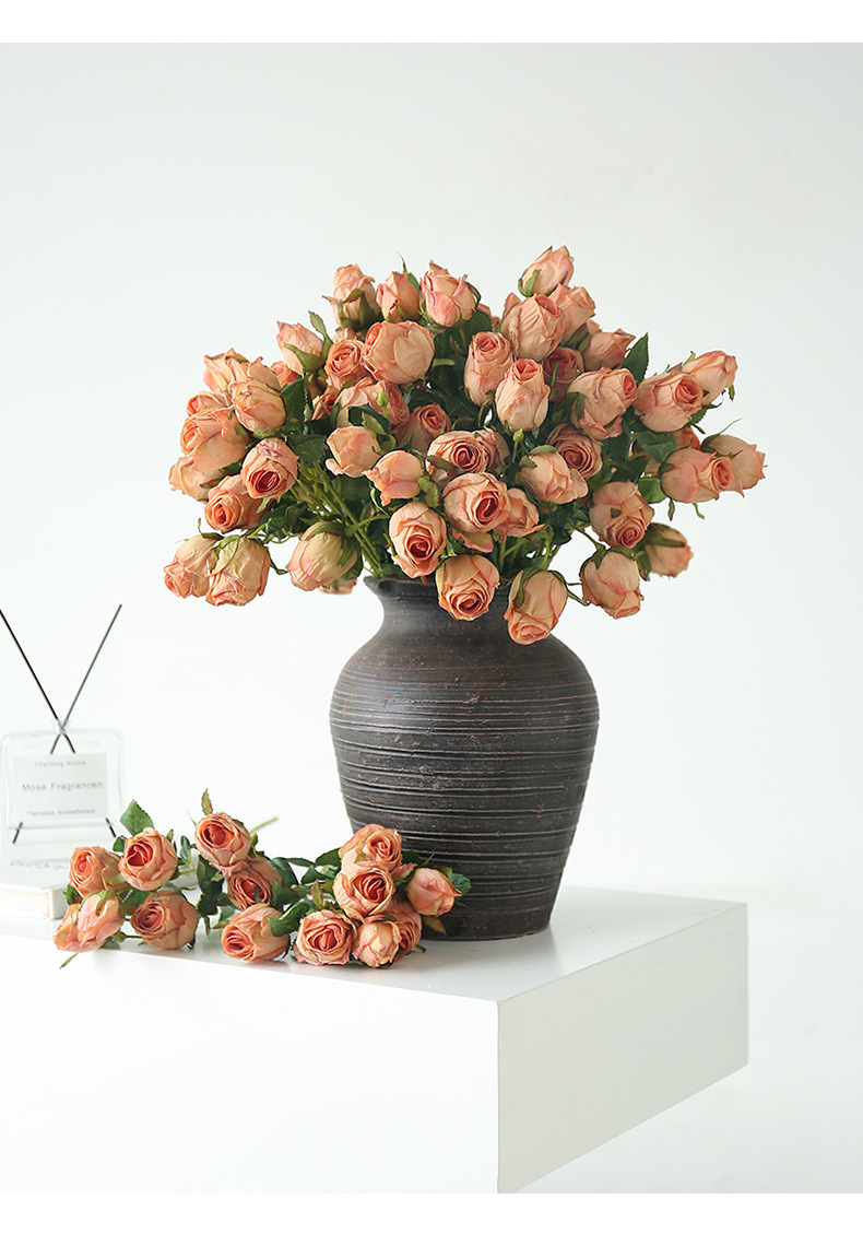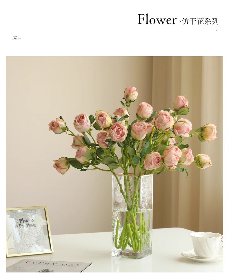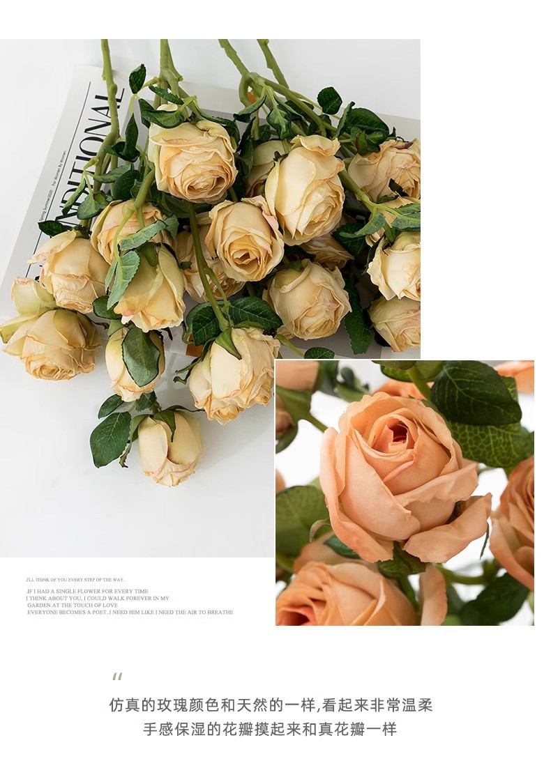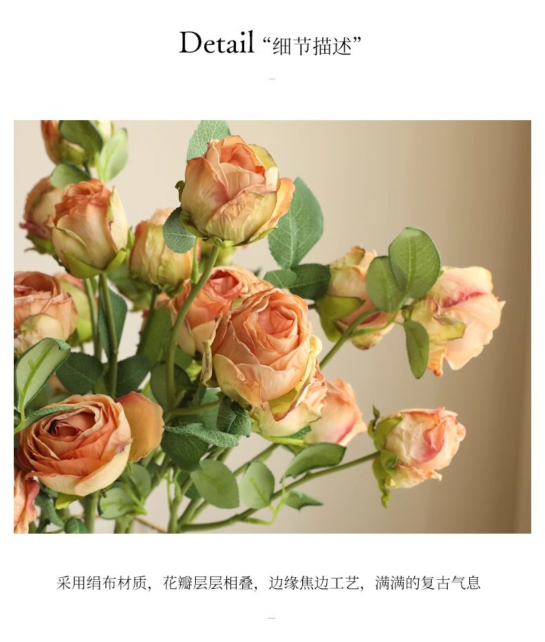 7 flores de rosa retrógrada flores de imitación de bordes de rojo flores secas flores de decoración de mesa de comedor accesorios de fotografía