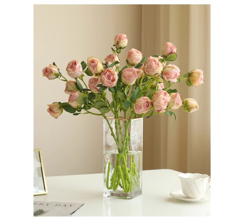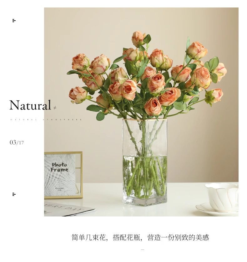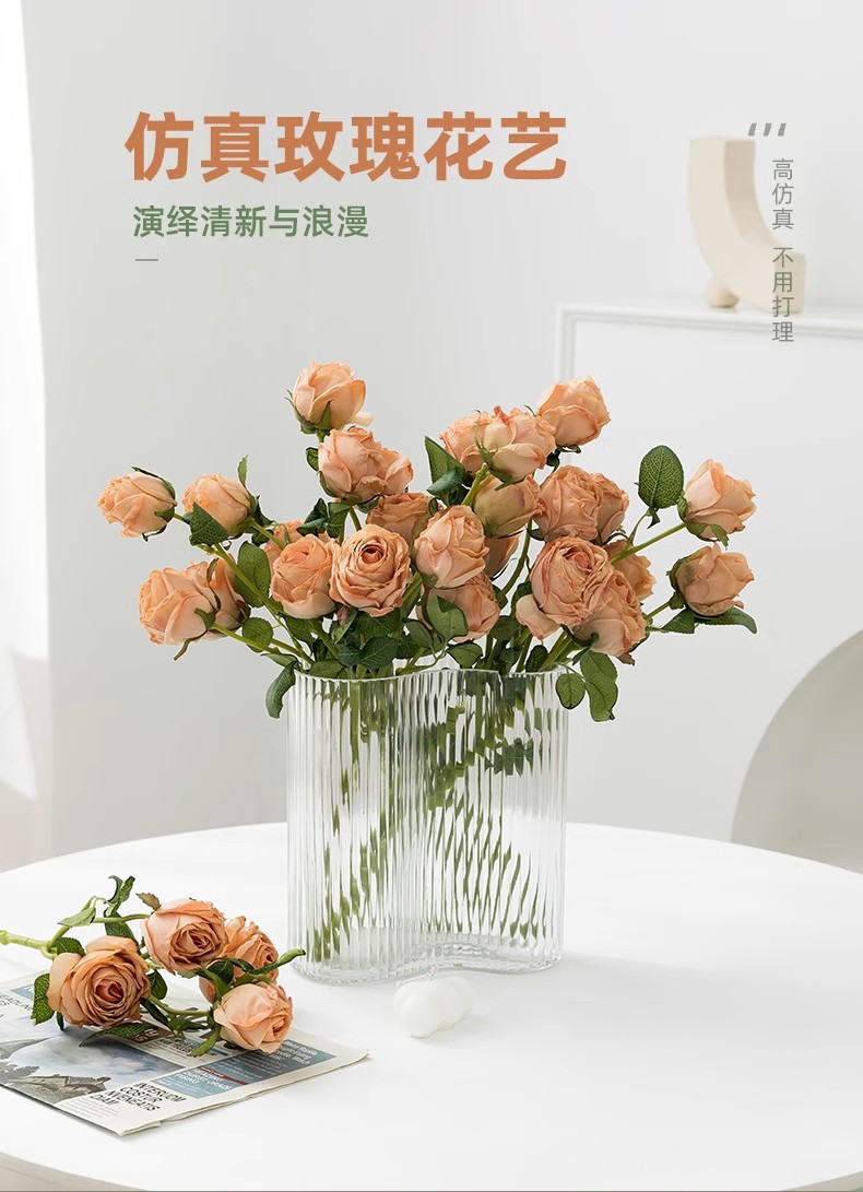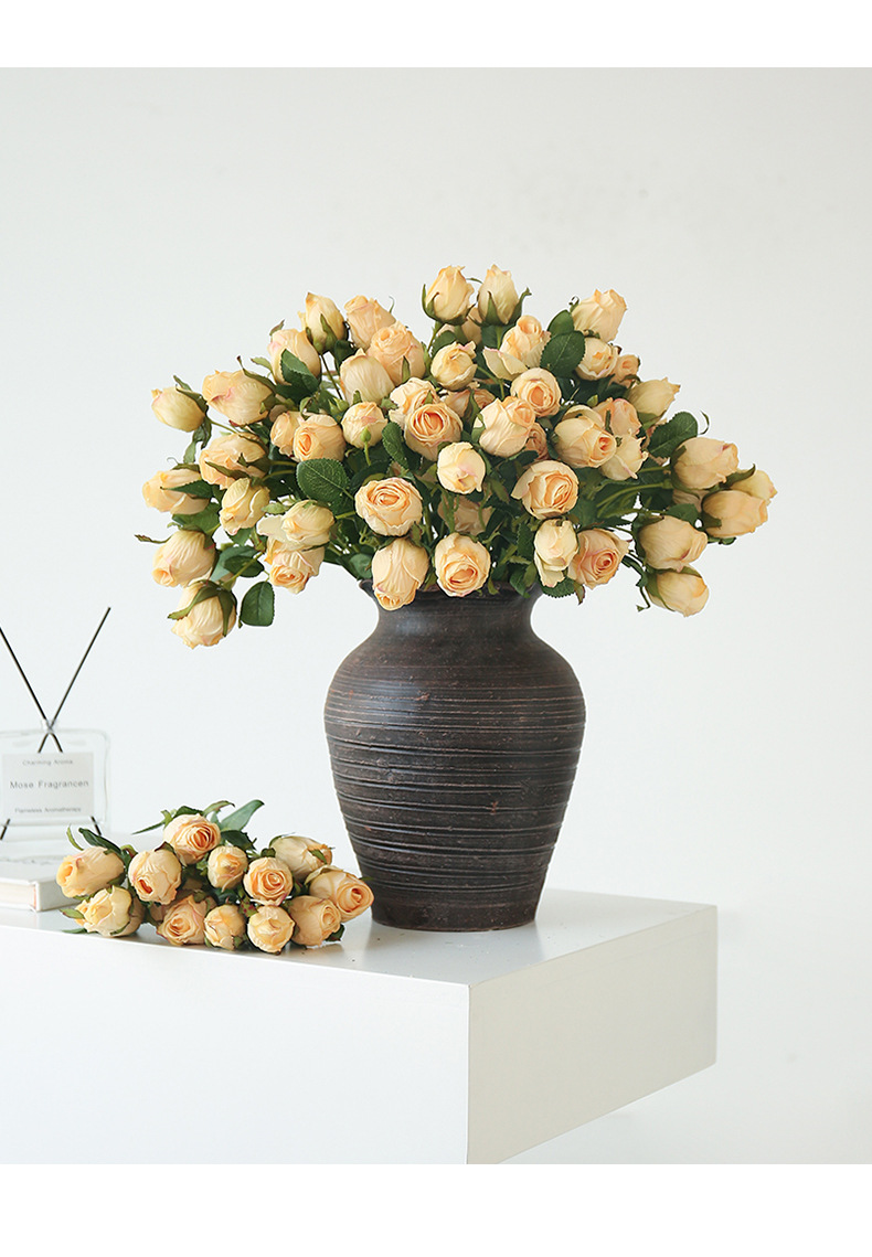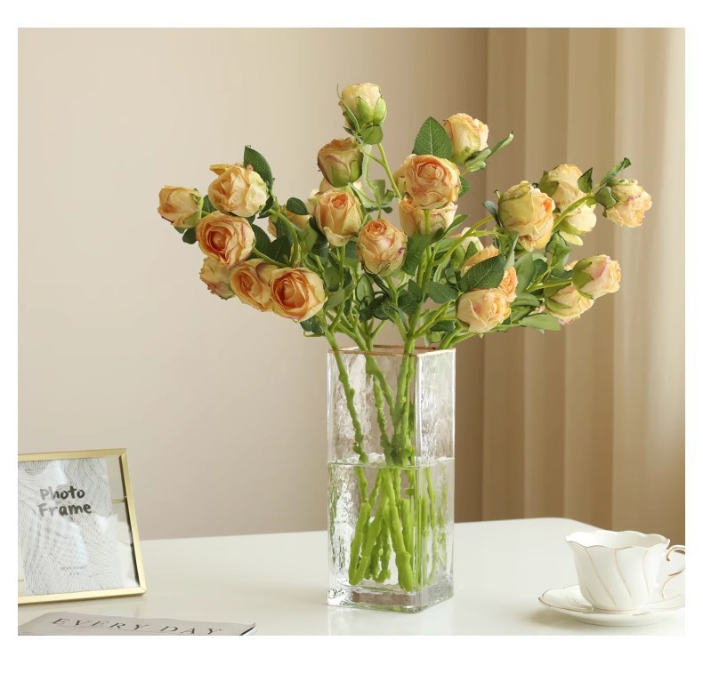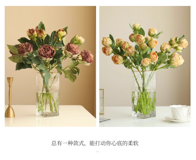 7 flores de rosa retrógrada flores de imitación de bordes de rojo flores secas flores de decoración de mesa de comedor accesorios de fotografía