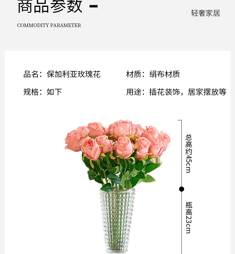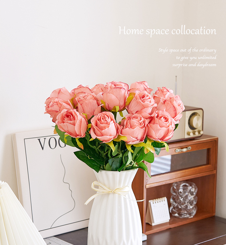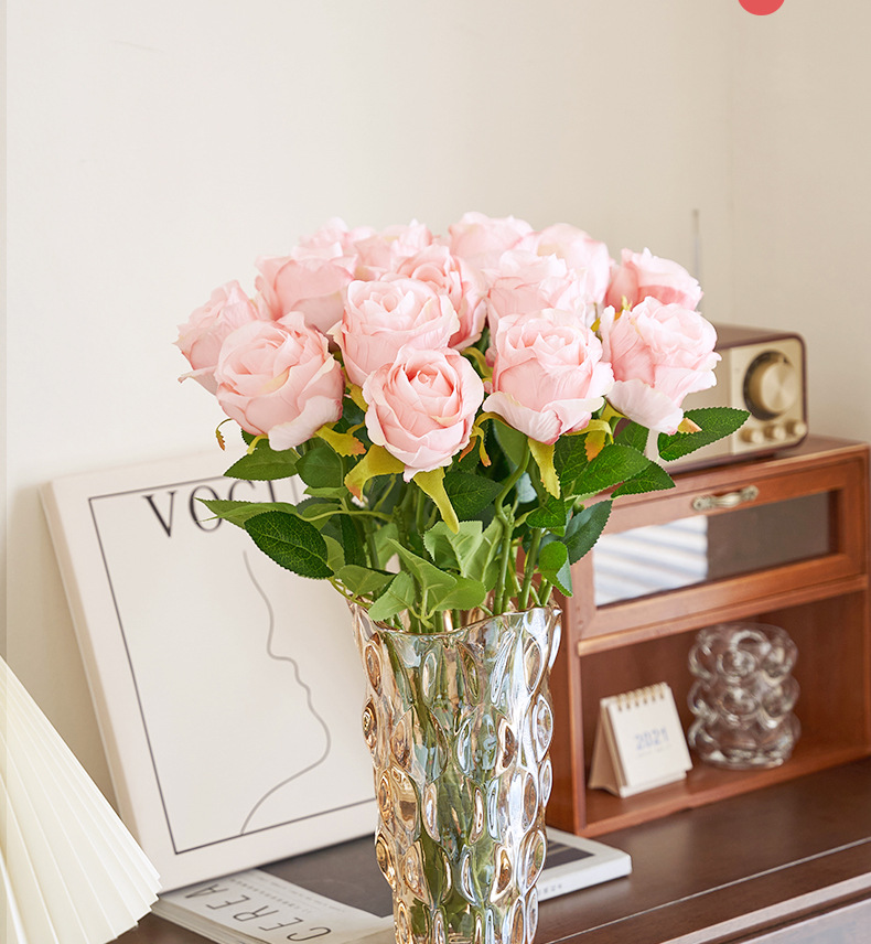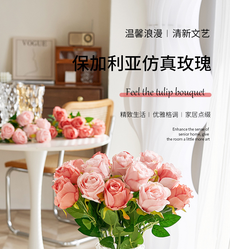 Rosas búlgaras de alta calidad imitación de seda ramo de flores falsas decoración de decoración de la mesa interior de la sala de estar