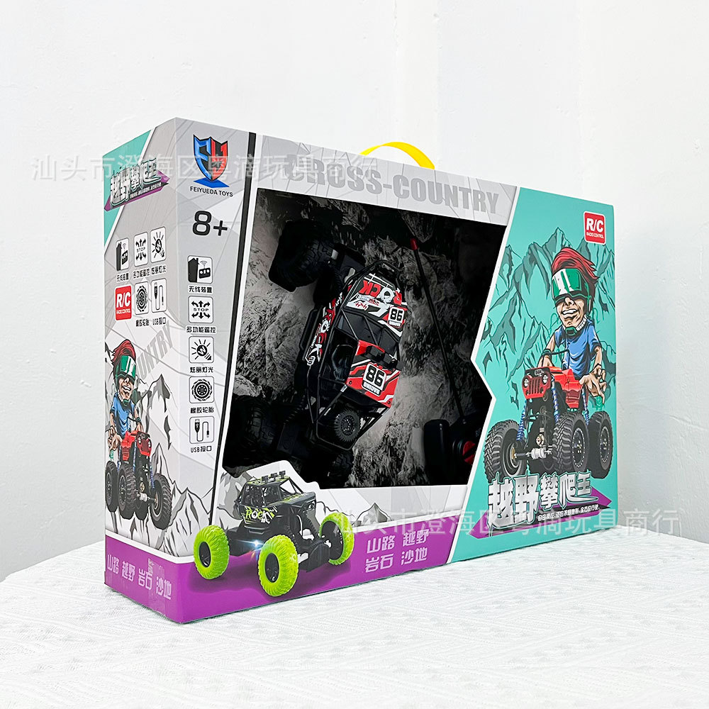 Vehículo de control remoto para niños, vehículo todoterreno de cuatro vías, vehículo de escalada, modelo de automóvil eléctrico, colección de entrenamiento de automóviles de juguete, caja de regalo de inscripción