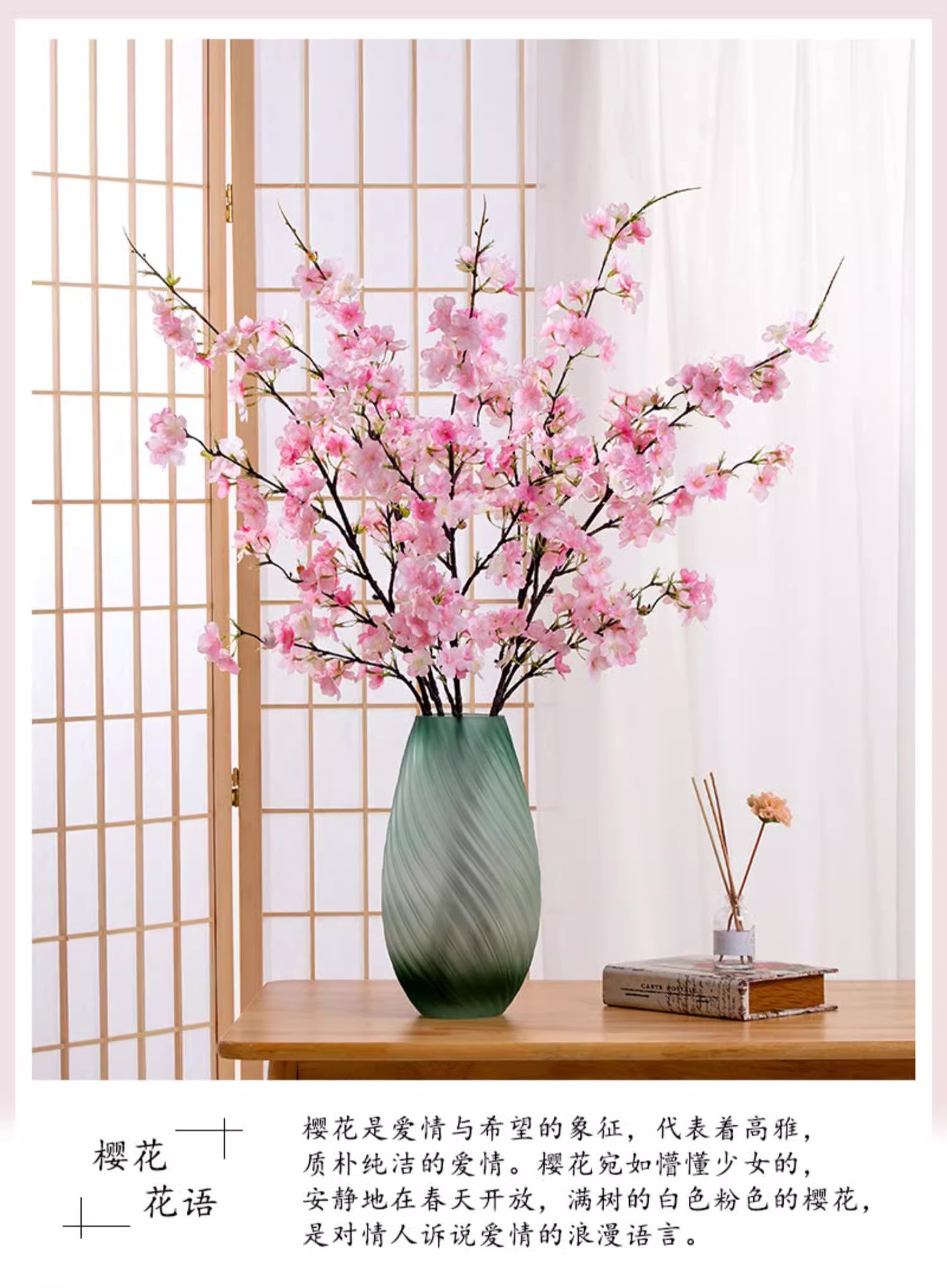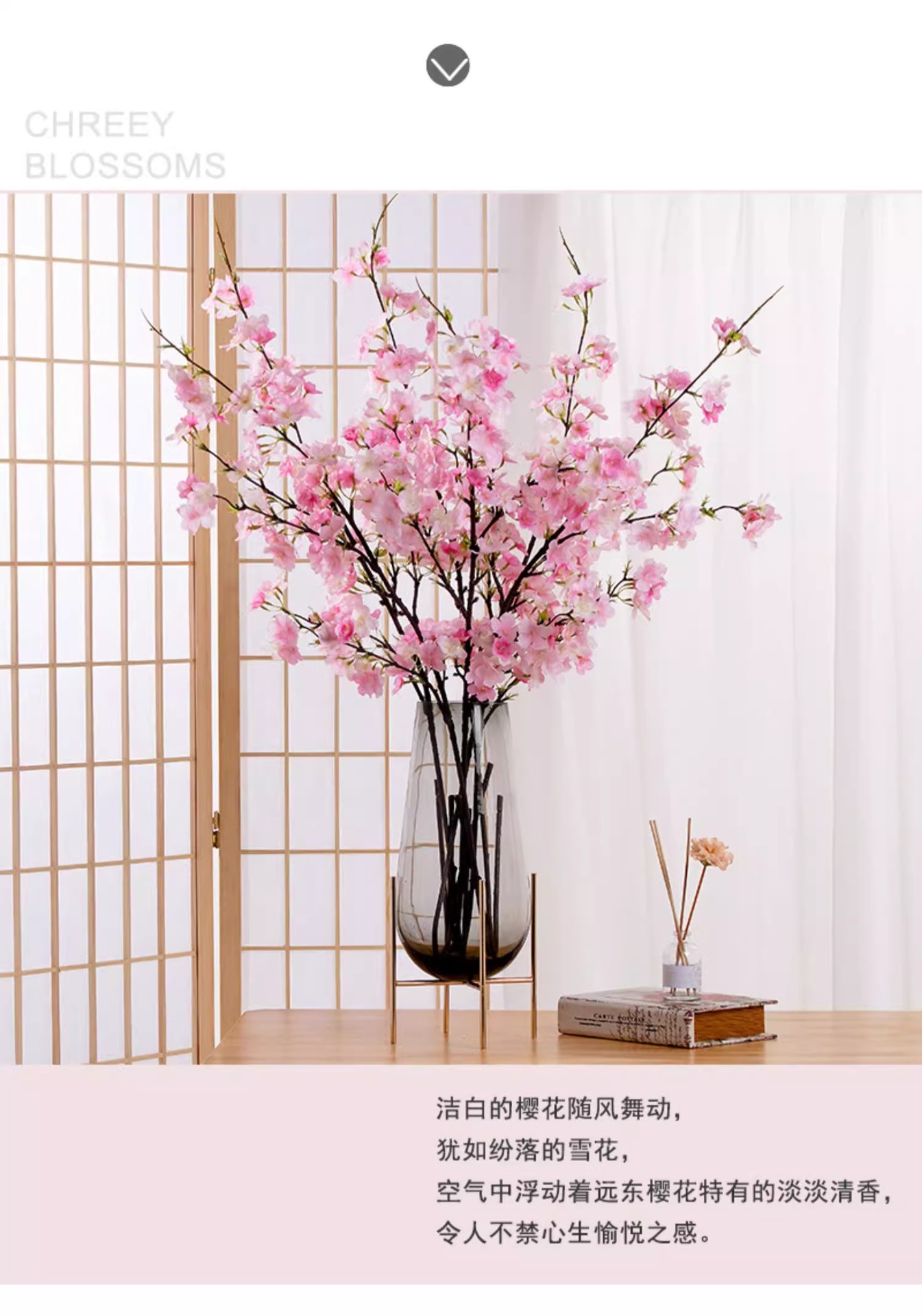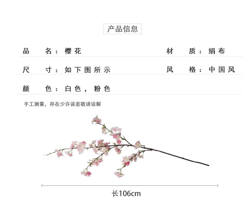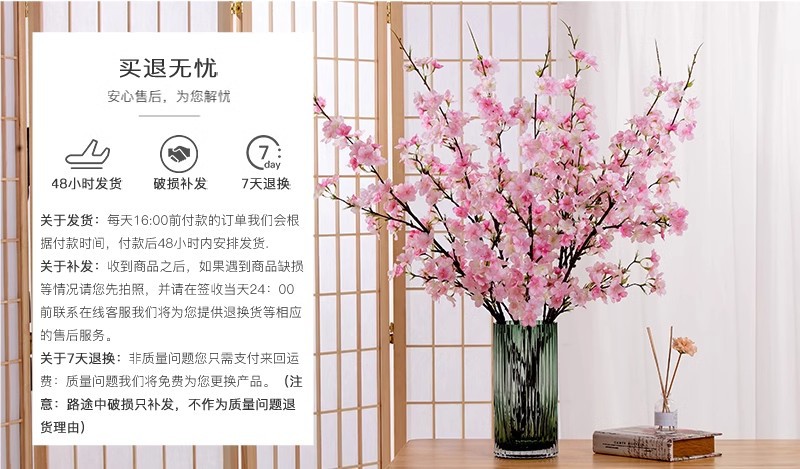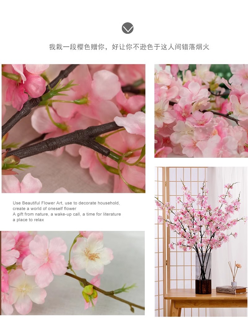 Flor de cerezo artificial rama larga flor falsa Flor de melocotón luz mesa de comedor de lujo floral TV gabinete decoración interior decoración transfronteriza Aprobación de fábrica