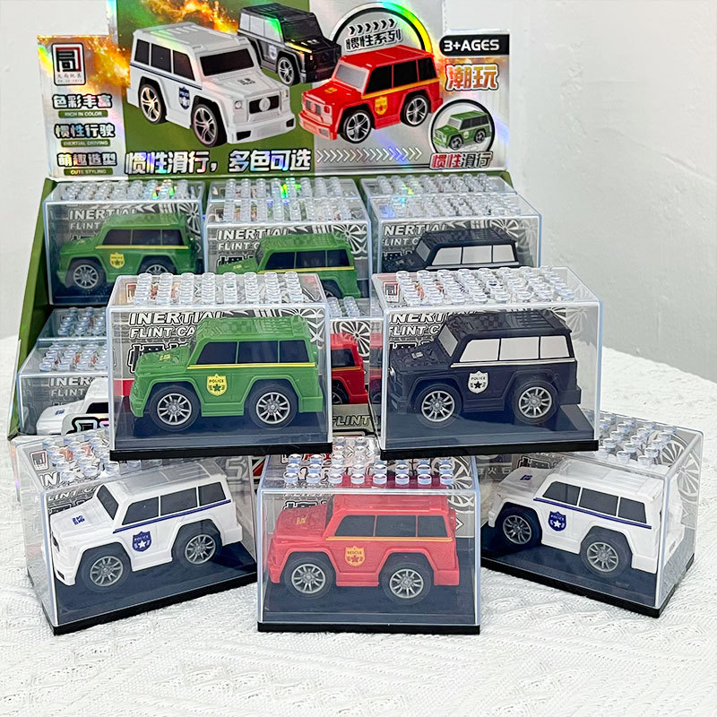 Juguetes de piedra de fuego luminosa, jeep de inercia, modelo de vehículo todoterreno, salón de juegos de la ciudad, pequeños regalos