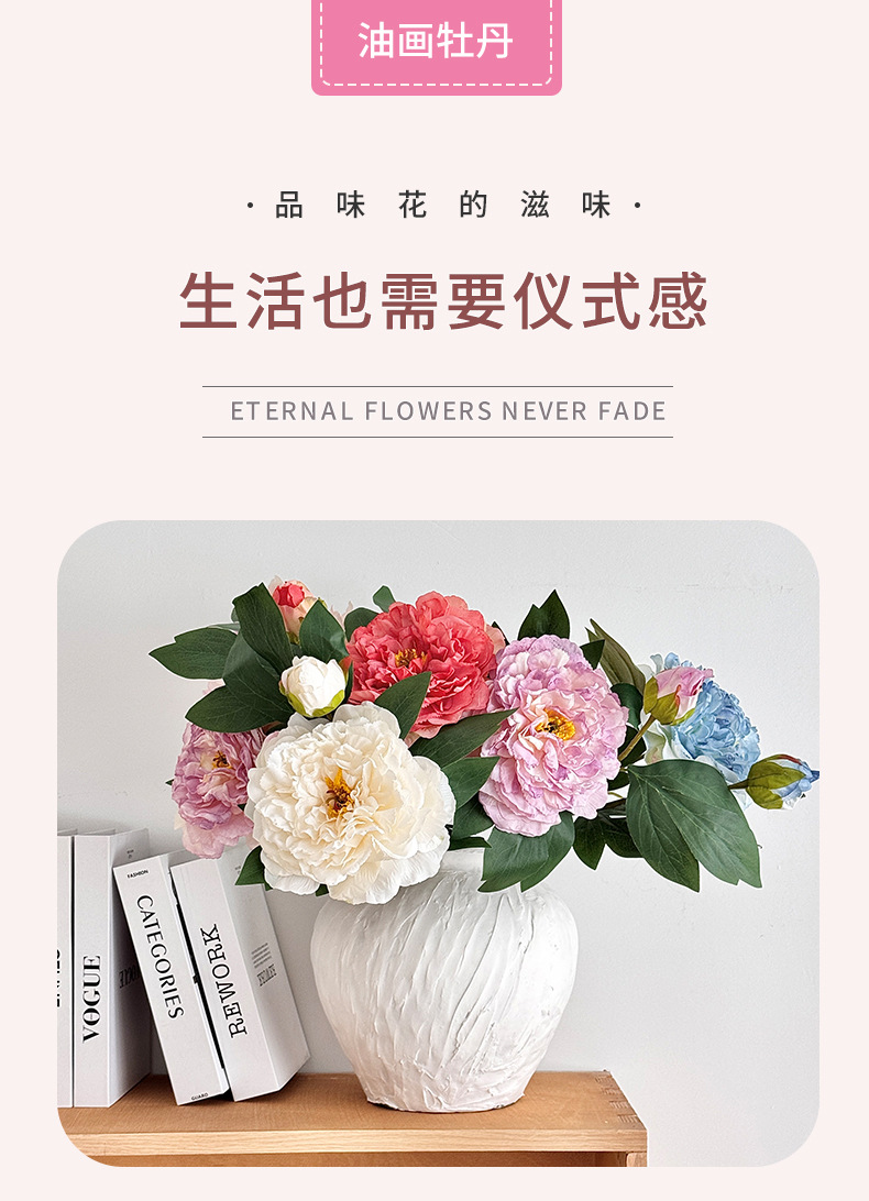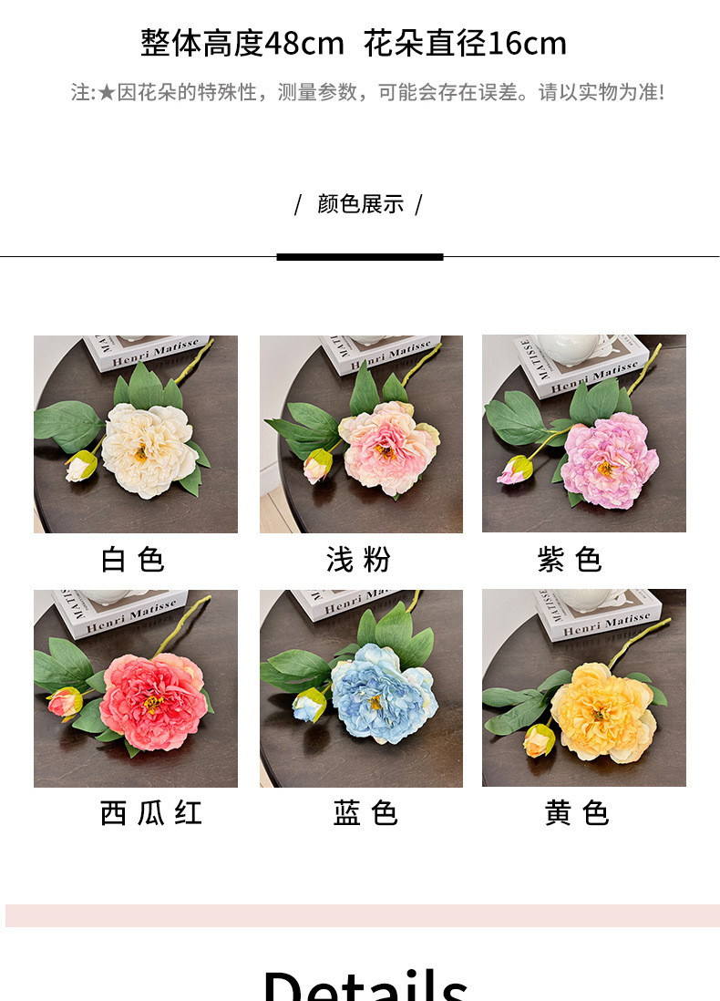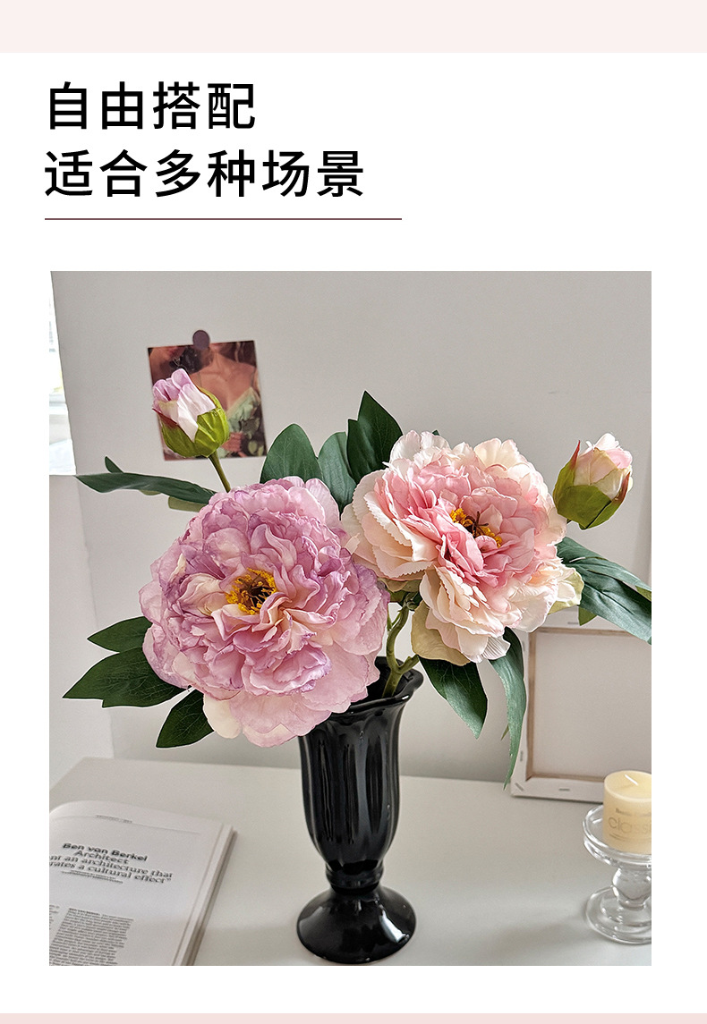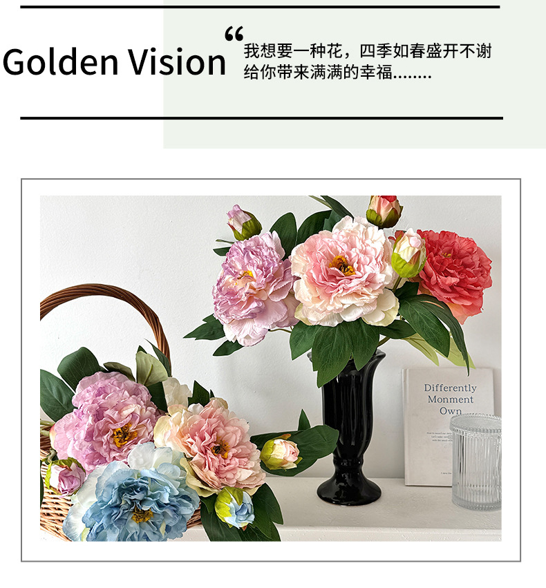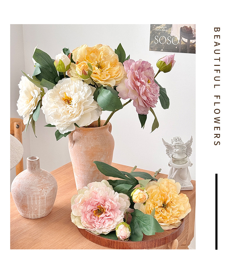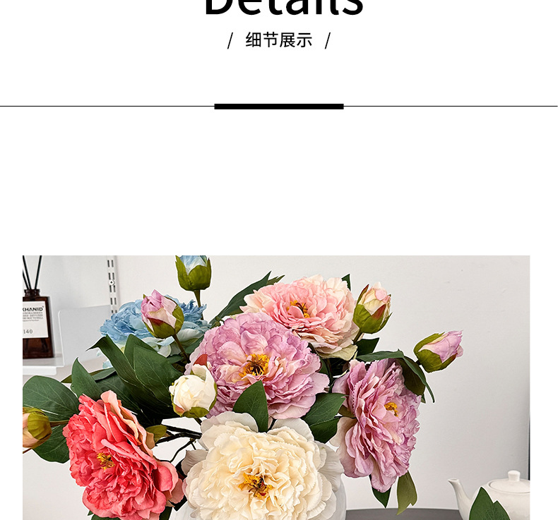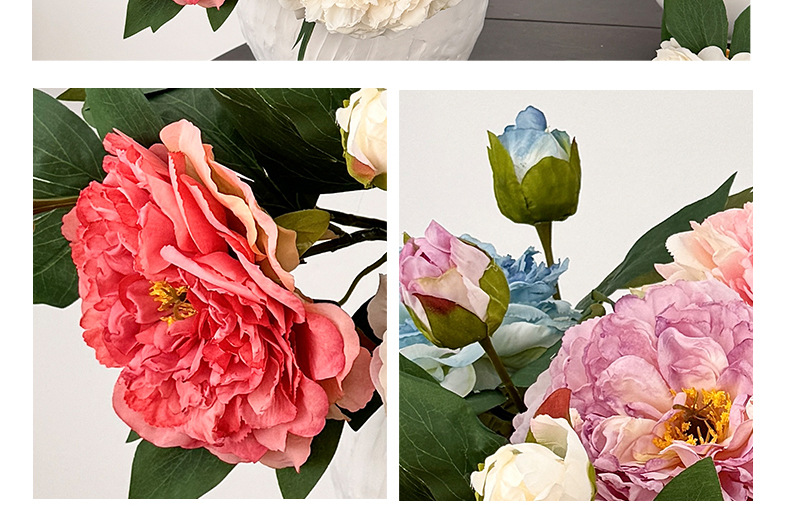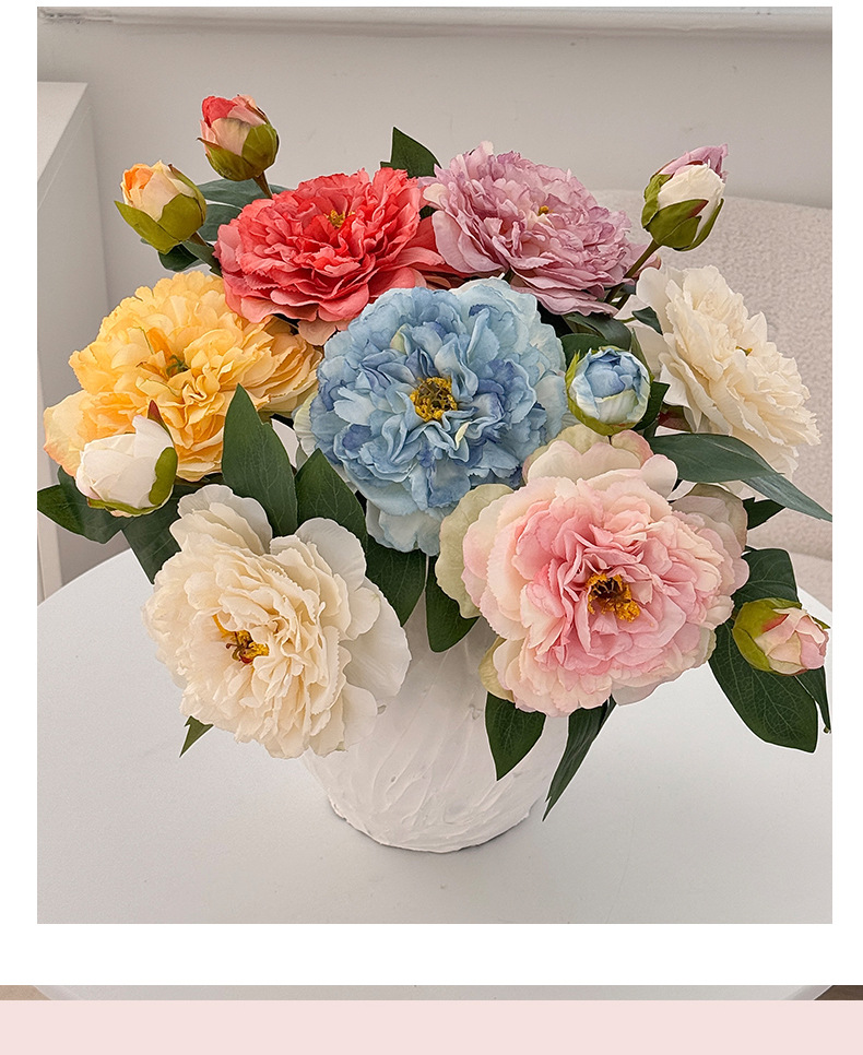 Advancado de alta calidad, peonía, peonía, flor artificial, decoración de flores falsas, mesa de comedor de la sala de estar, ramo de flores secas, decoración de flores