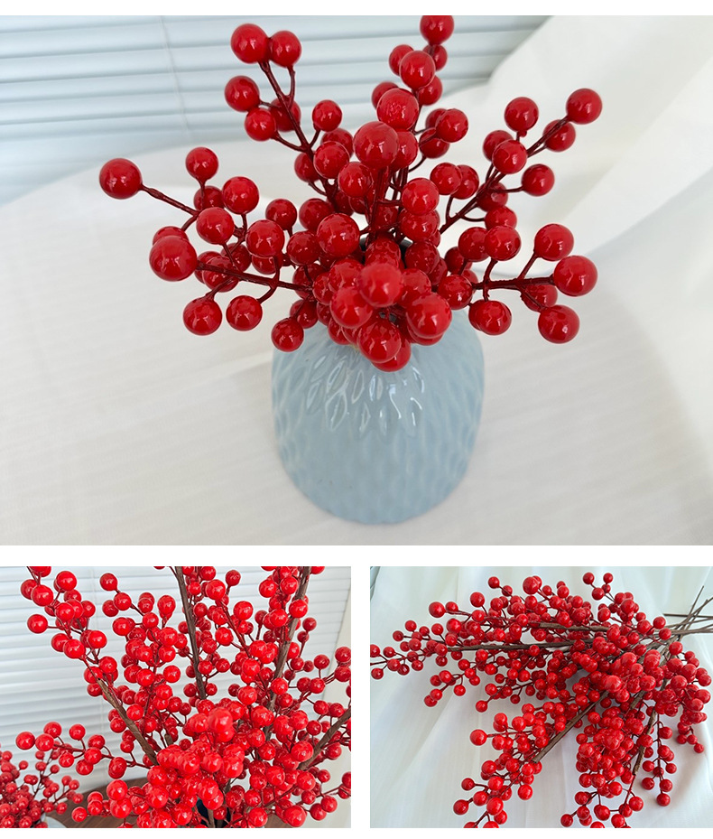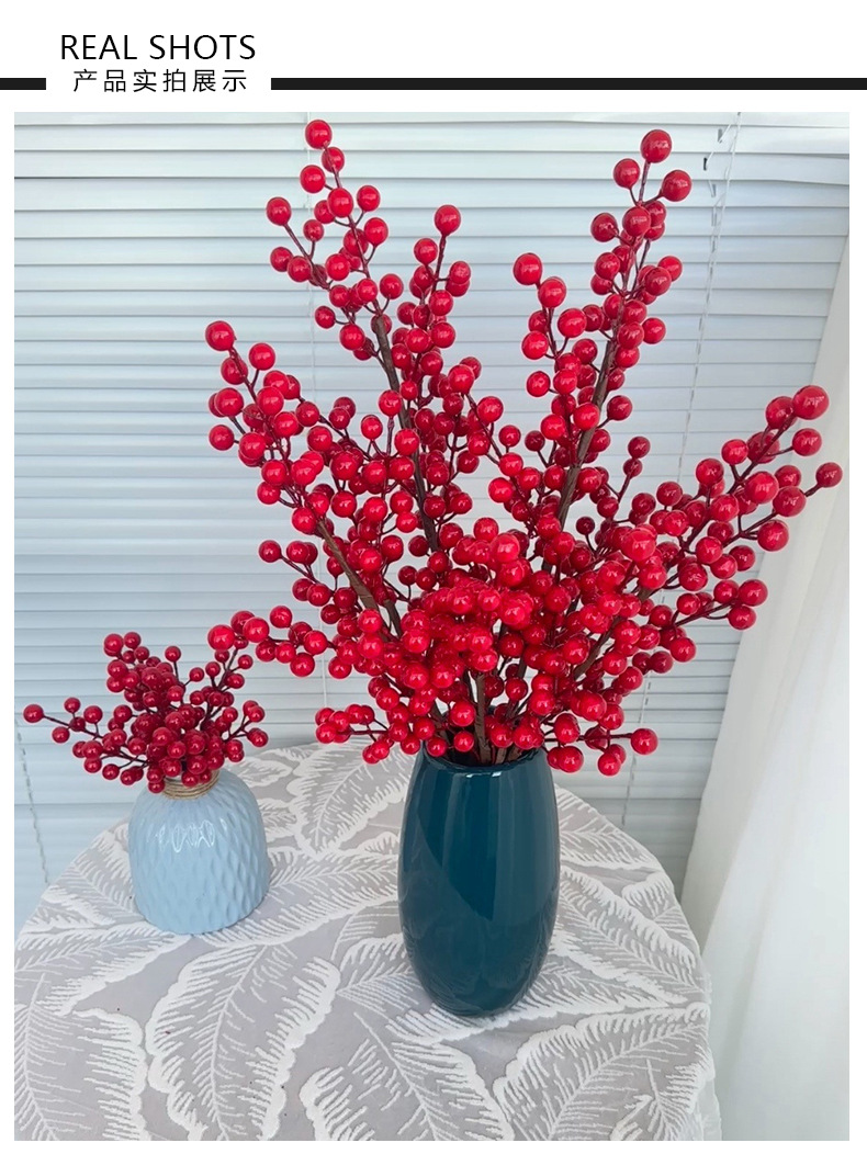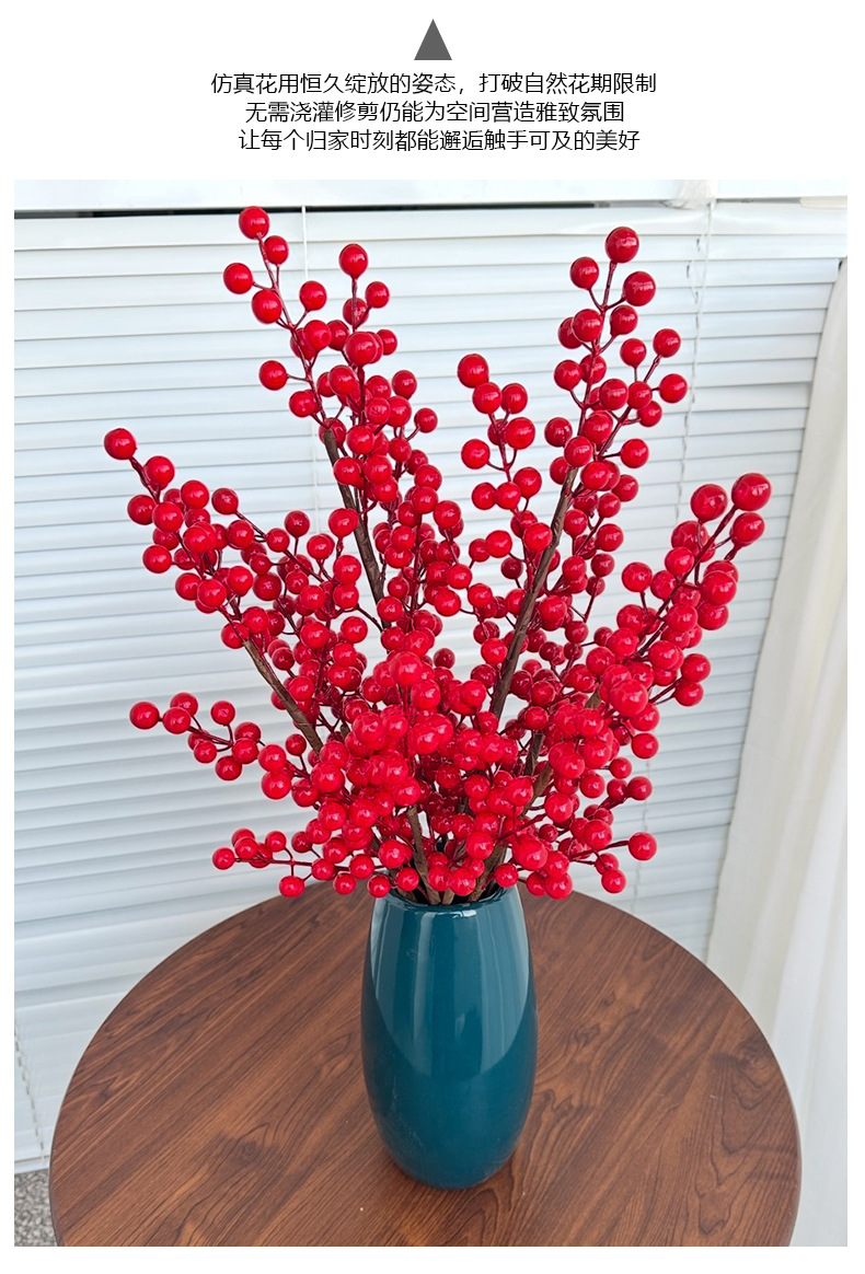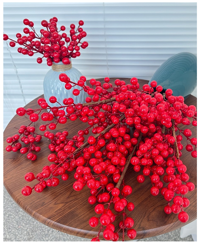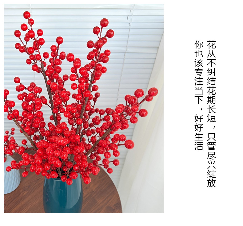 Fruta roja fortuna fruta simulación Holly fruta flor falsa Año Nuevo bendición cubo hogar sala de estar decoración fábrica de bayas rojas al por mayor