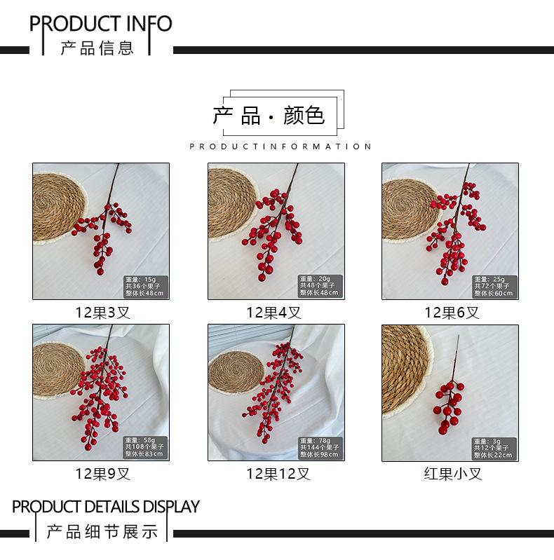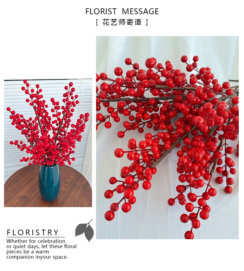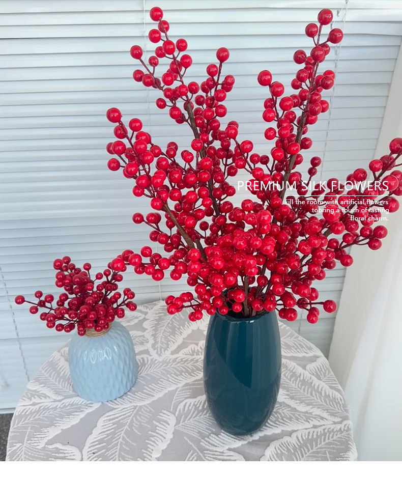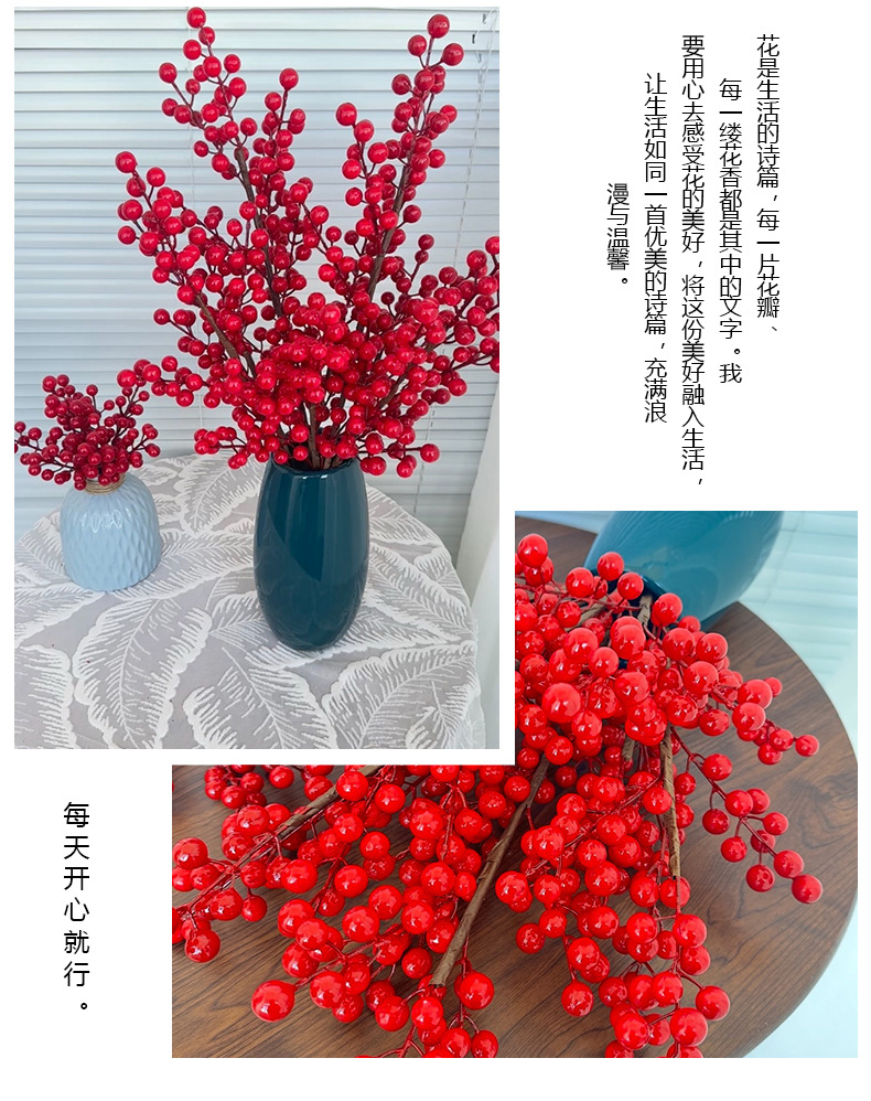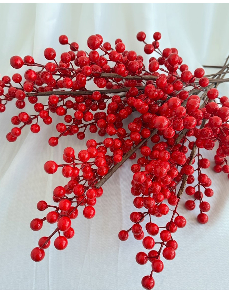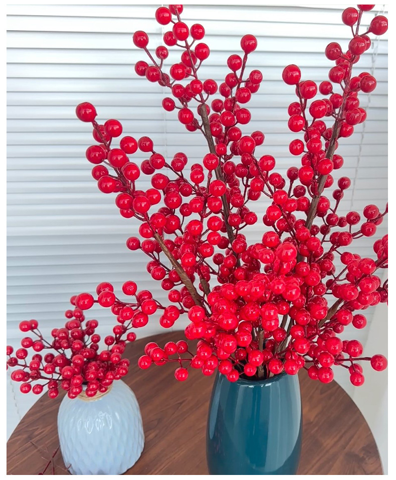 Fruta roja fortuna fruta simulación Holly fruta flor falsa Año Nuevo bendición cubo hogar sala de estar decoración fábrica de bayas rojas al por mayor
