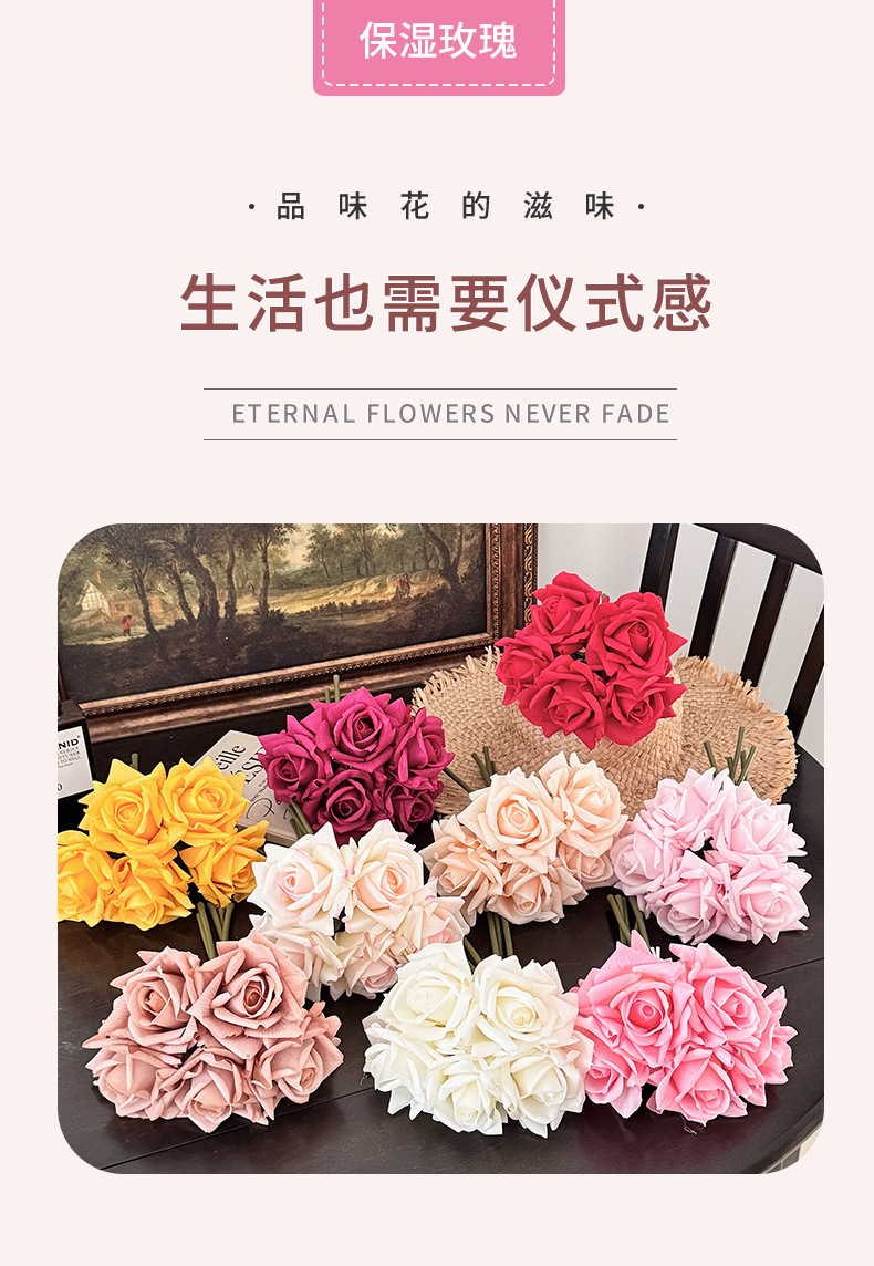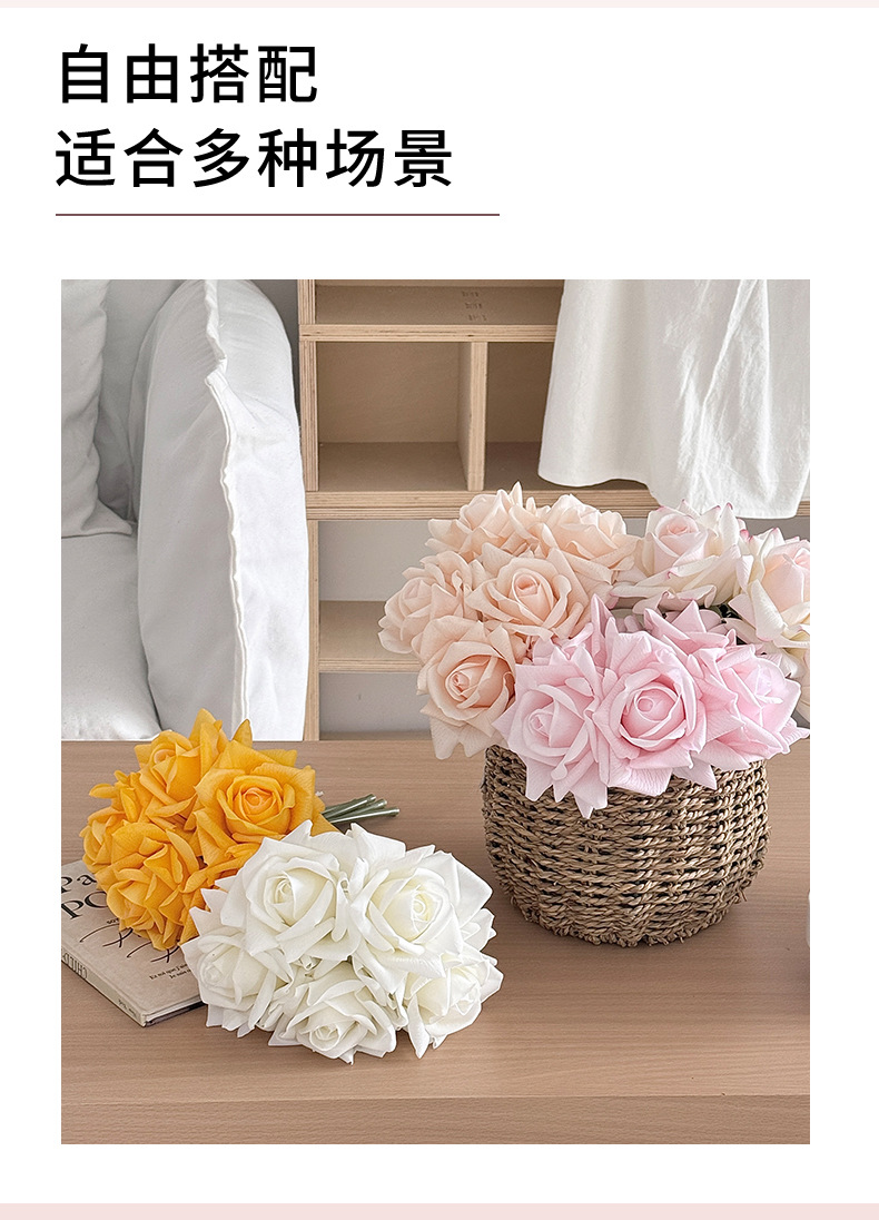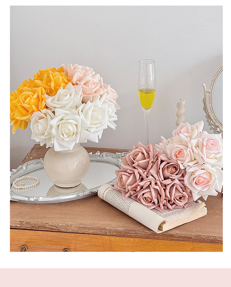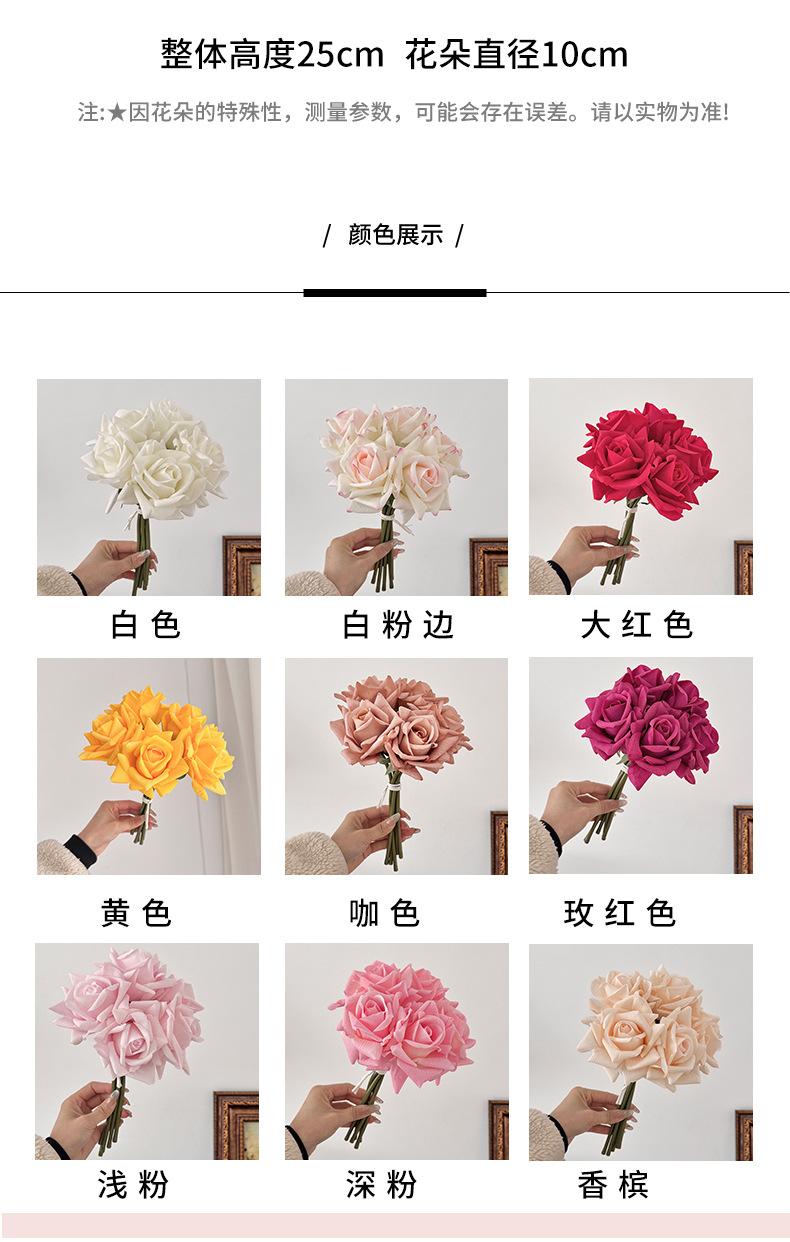 Ramo de rosas hidratante de alta calidad, flores artificiales, flores falsas, accesorios para fotografía, arreglo floral de mano, decoración del hogar.