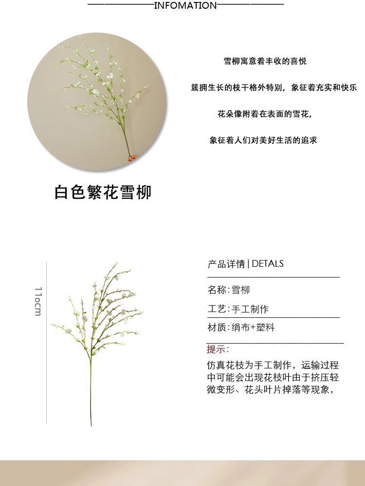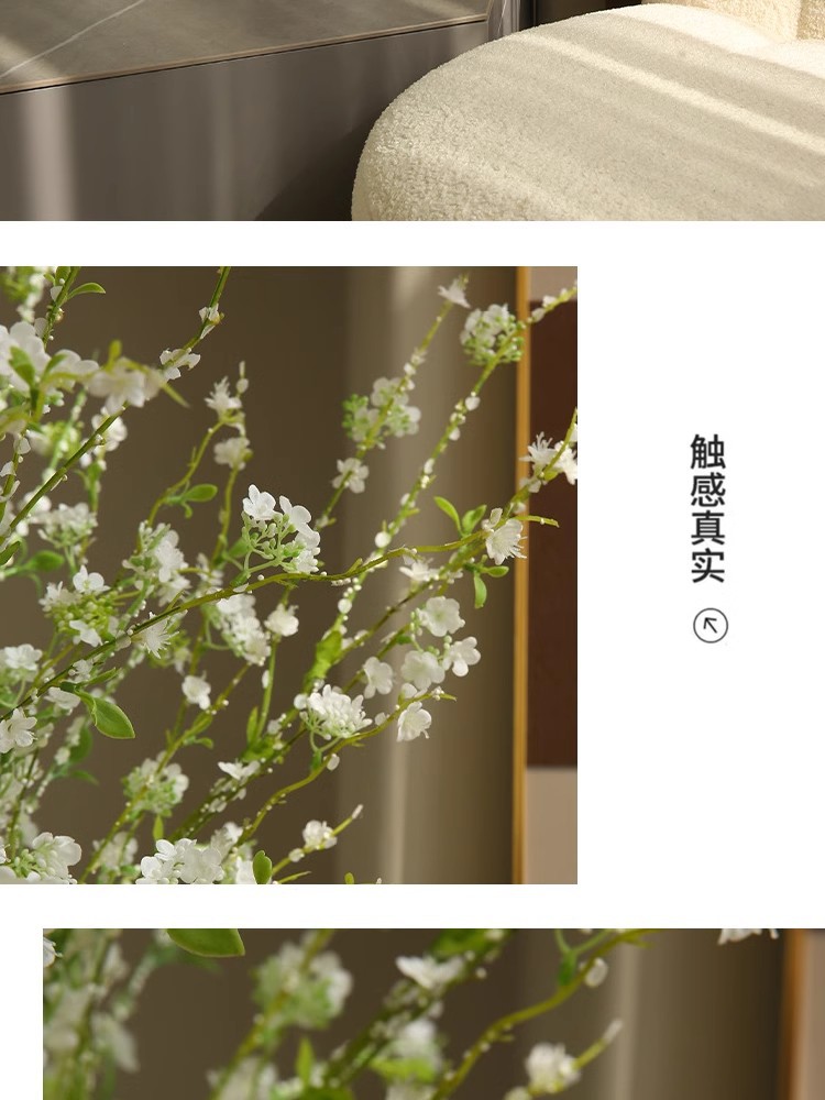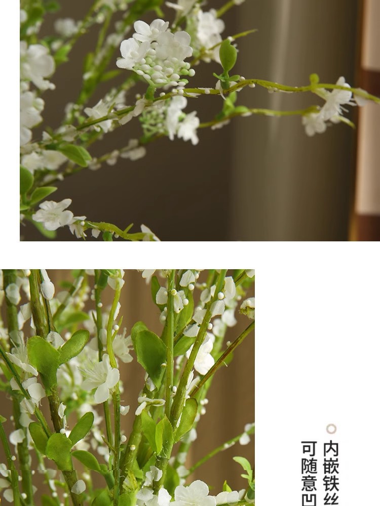 Simulación de rama larga de sauce de nieve flores falsas lujosas mesa de comedor floral modelo de gabinete de televisión floral decoración floral de cerezo floral