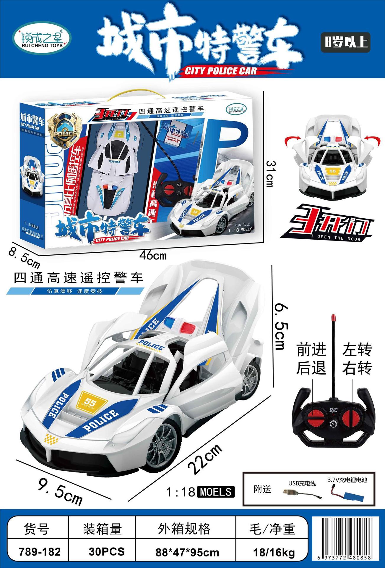 | Color | Vehículo de policía de control remoto de alta velocidad de cuatro vías - con batería recargable 789 - 182 |