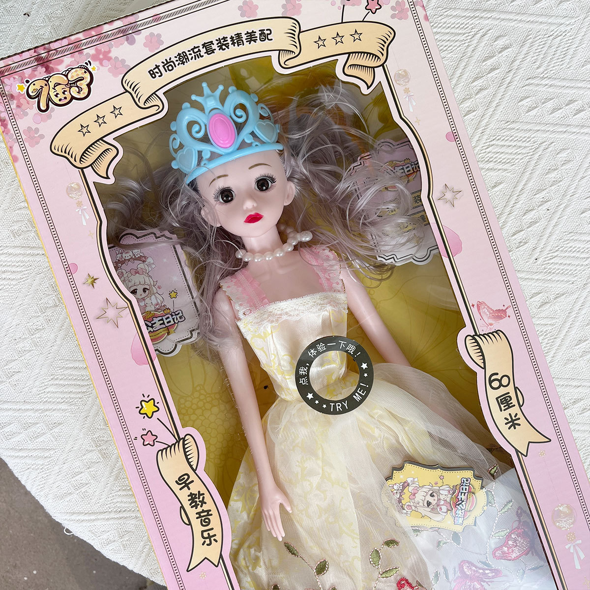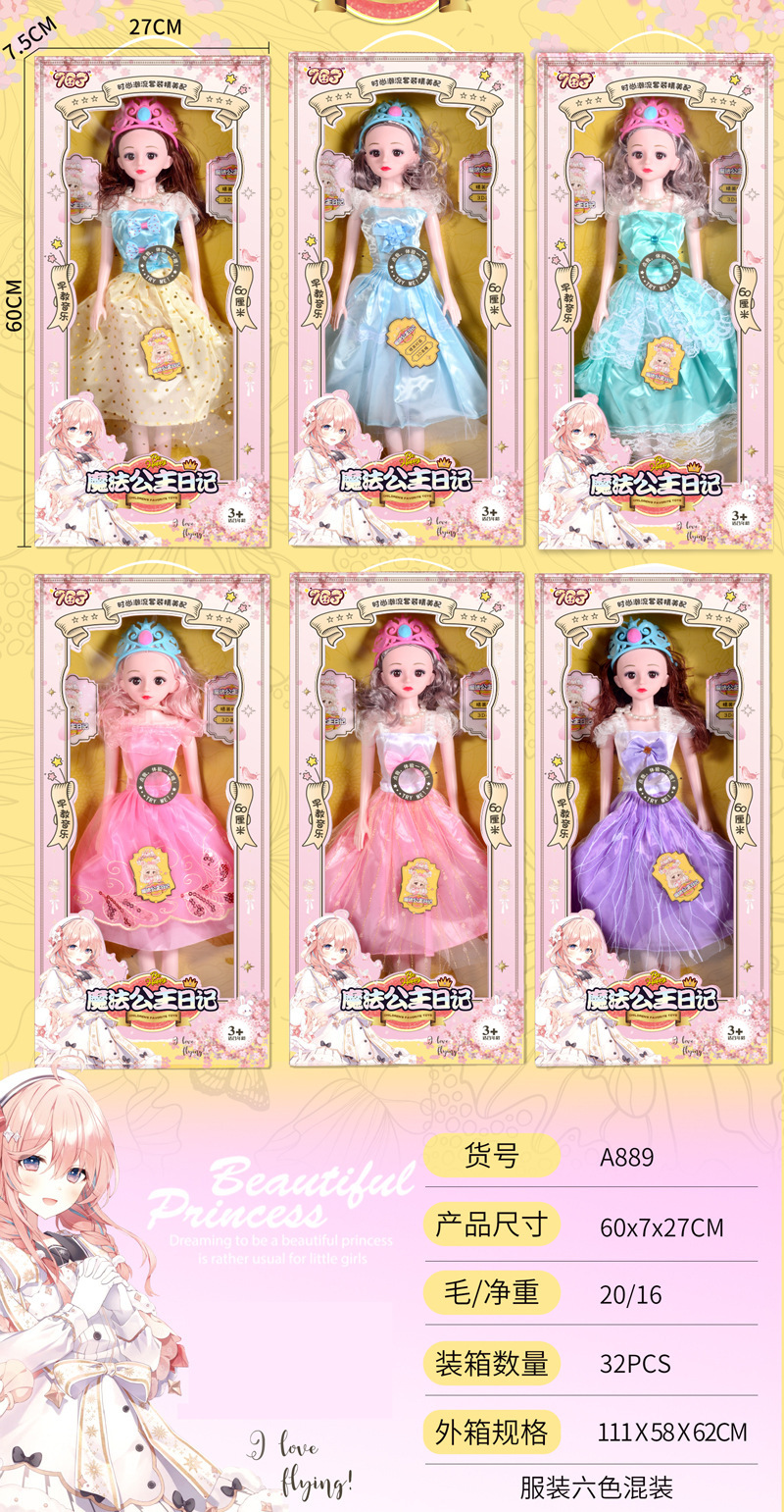 Niñas de educación temprana música corona princesa mágica muñeca diario 60cm gran caja regalo inscripción agencia
