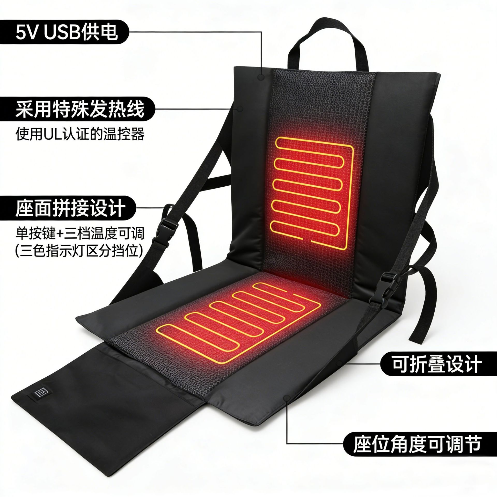 Suministro transfronterizo de cojín de calefacción de automóviles de alimentación USB, cojín de calefacción de automóviles de temperatura ajustable de tres niveles, fabricante de cojín de calefacción de automóviles