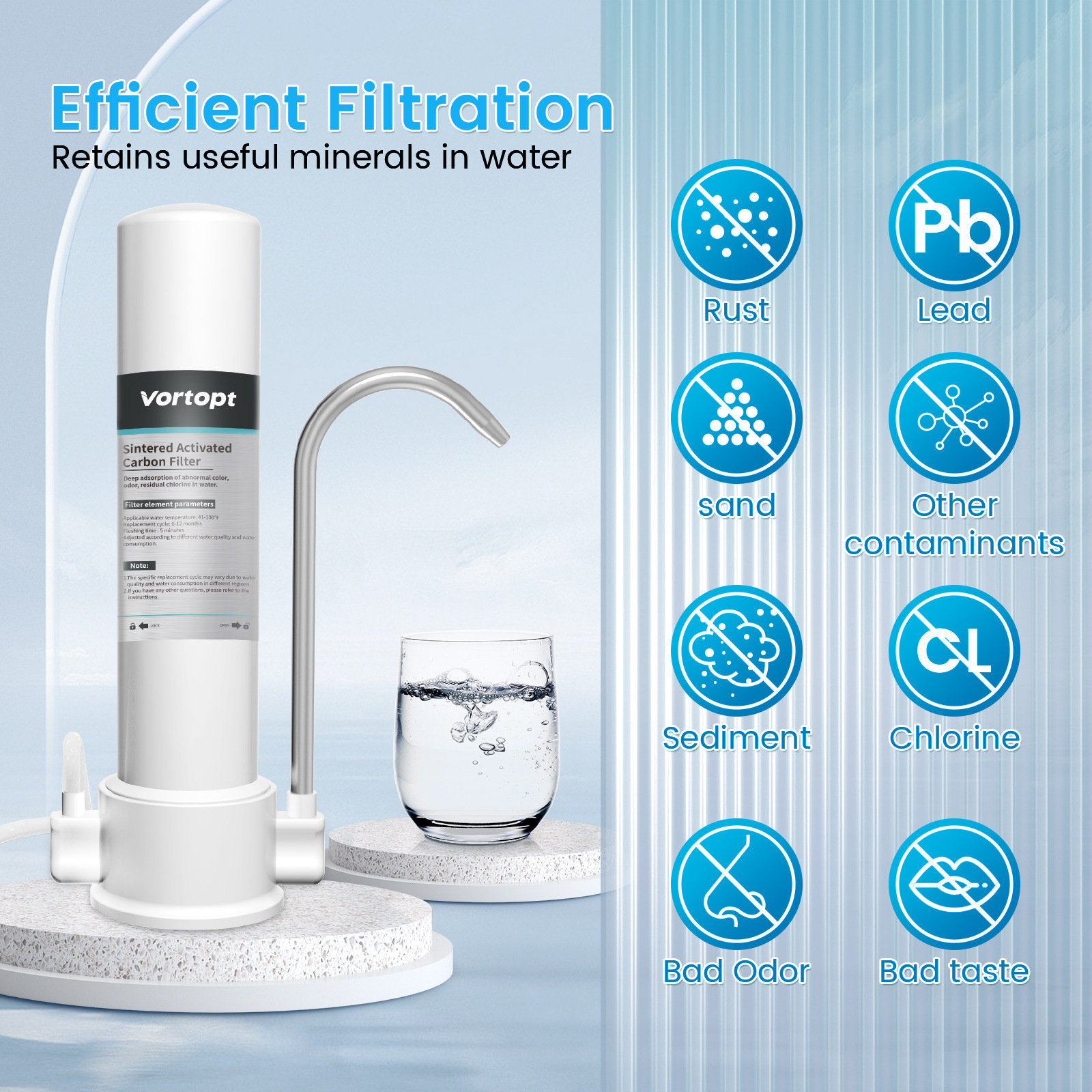 | Efecto de purificación de agua | Descloro,Además del óxido,Eliminación de sedimentos |
