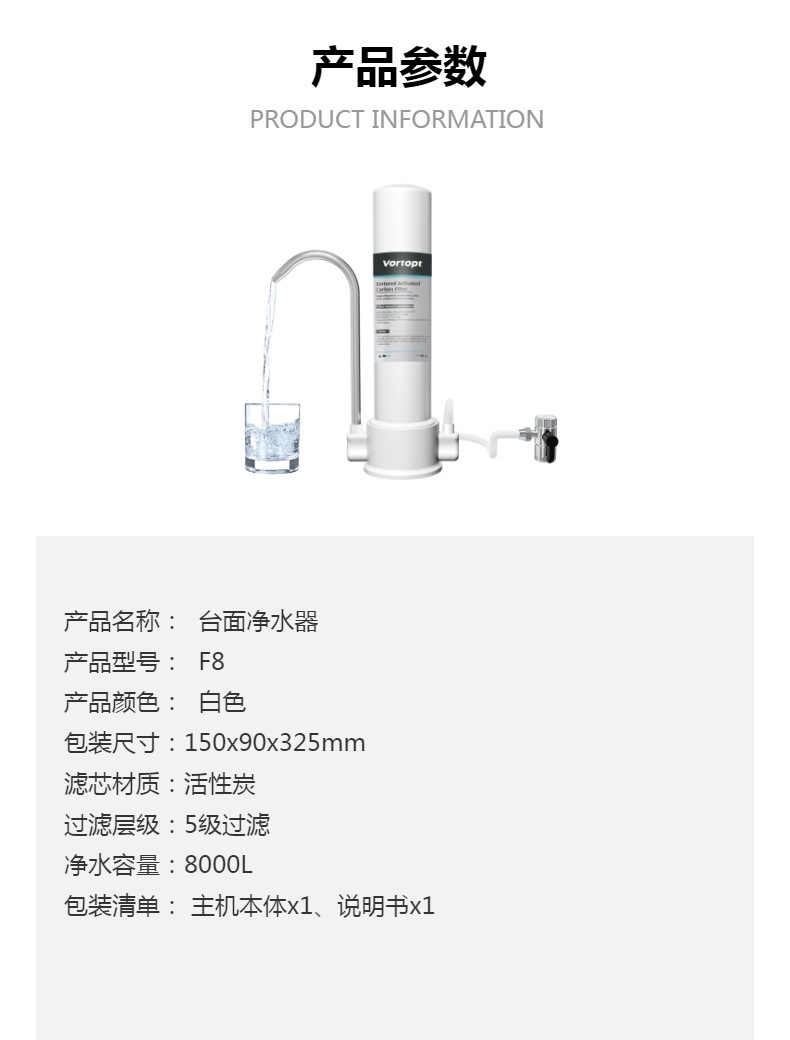 Purificador de agua de grifo doméstico con filtro de carbón activado portátil de escritorio con grifo incorporado, purificador de agua compacto