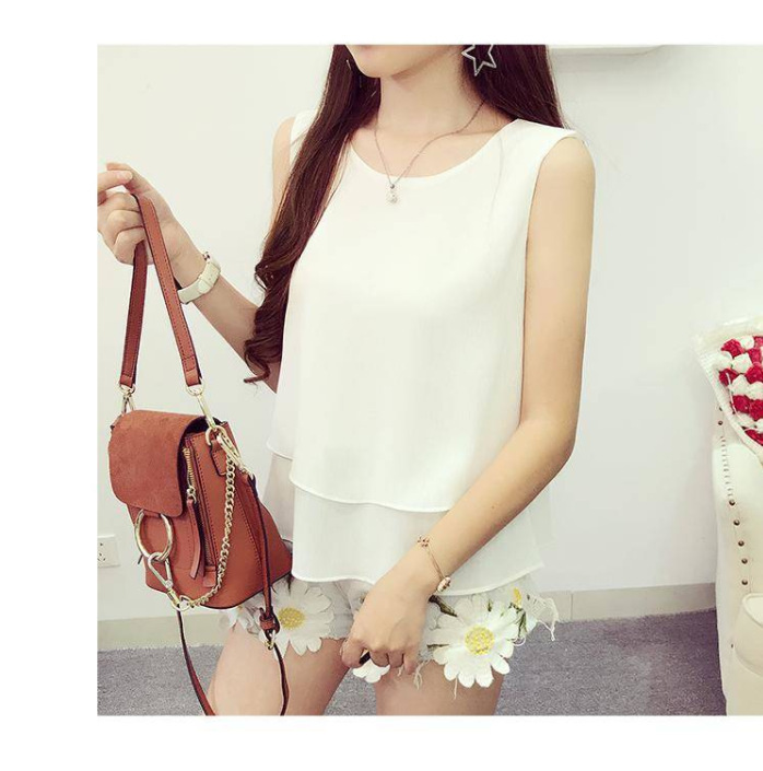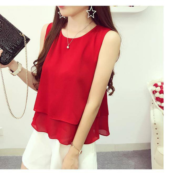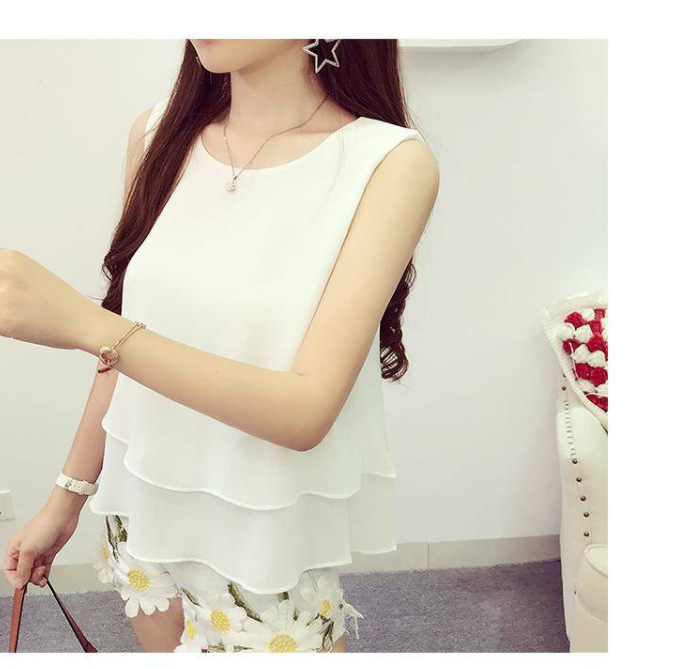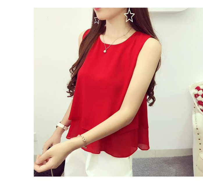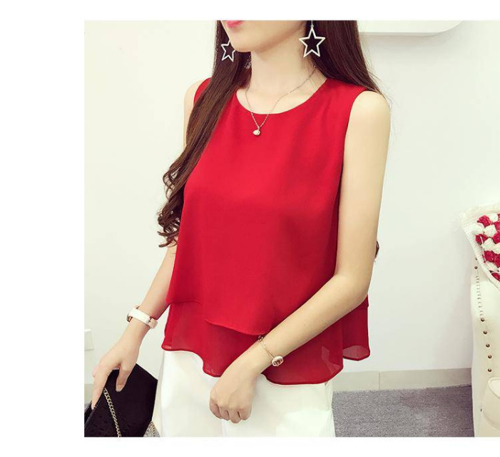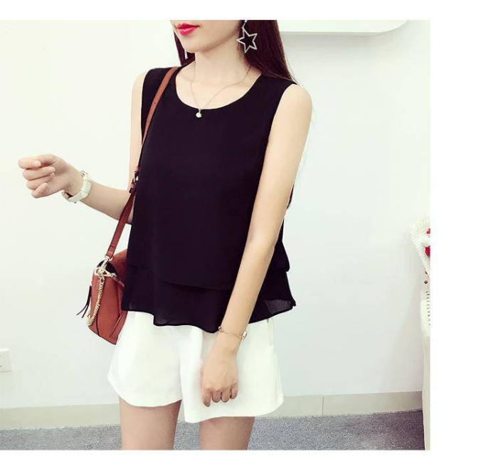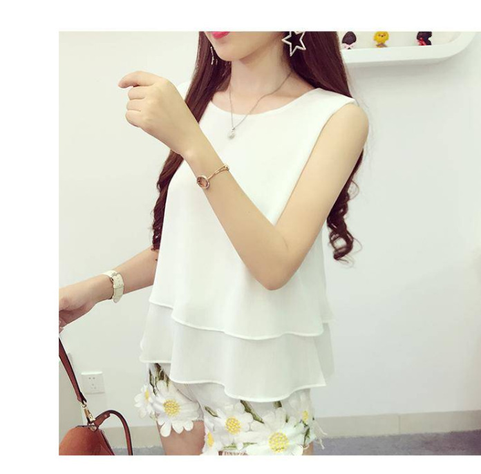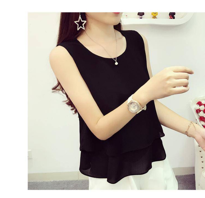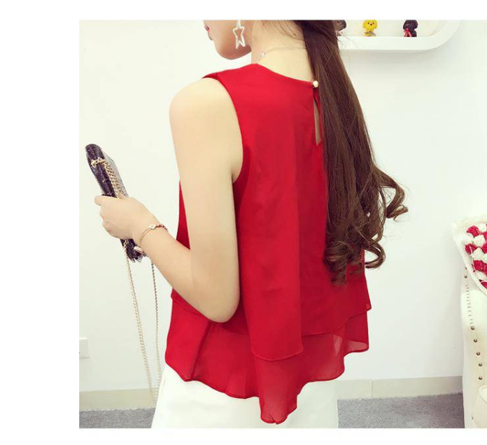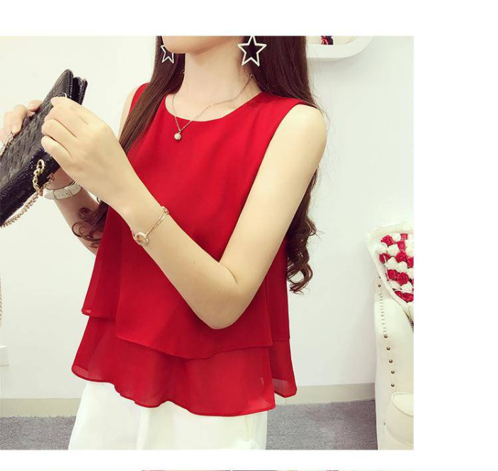Chaleco de cuello redondo de chiffon suelto para mujeres con camiseta de vestir abdomen primavera y verano con traje sin mangas camiseta de vestir