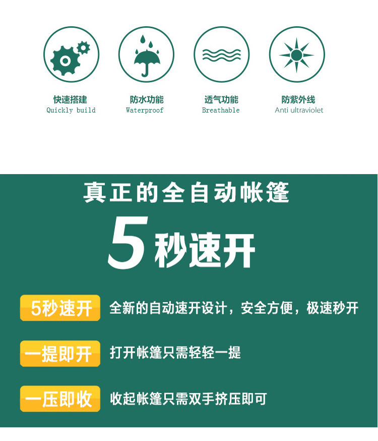 Camping al aire libre tolva sombra impermeable transpirable protección solar campo completamente automático sin construir tienda de campaña de apertura rápida portátil