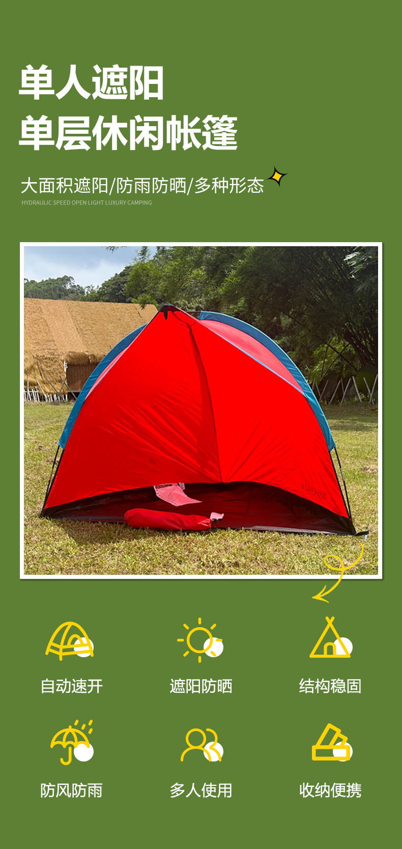 Transfronterizos al aire libre de una sola capa de doble mano para montar una tienda de campaña de campamento de 3 personas campamento de campo campamento de playa tienda de campaña de viaje