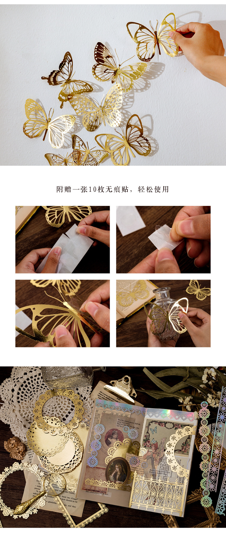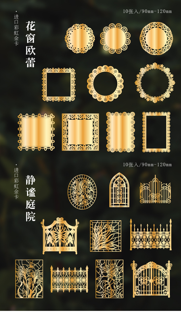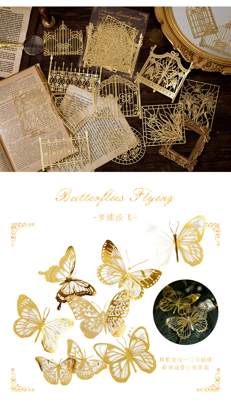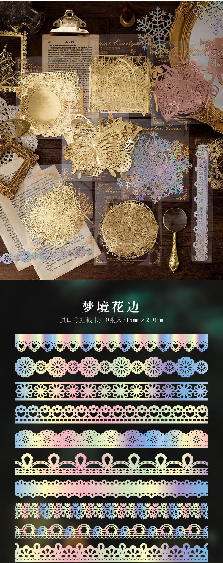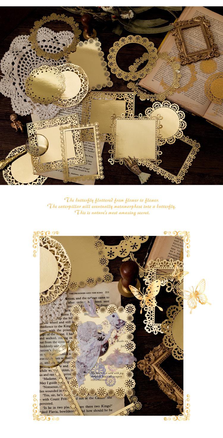 Mo tinta estampado de oro hueco papel de encaje romántico serie de cuentas retro DIY material de decoración 10