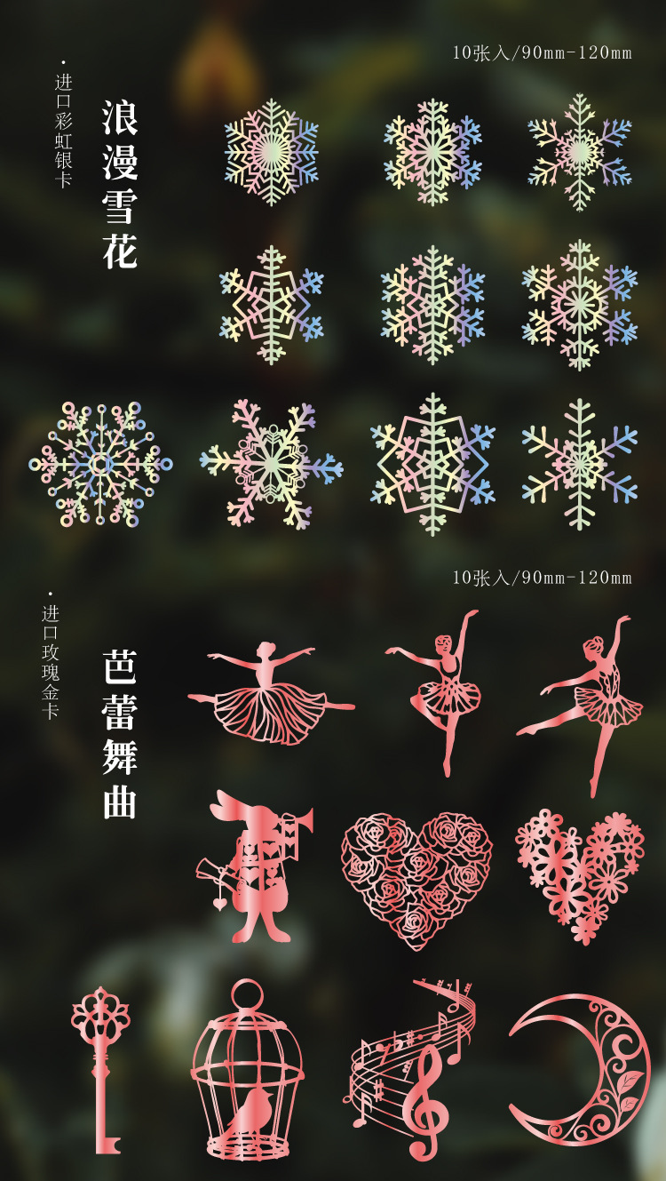 | Color | Ballet, copos de nieve románticos, encaje de sueños, patio tranquilo, ventana de flores, matrices de estrellas mágicas, bosques dorados, mariposas de sueños volando |