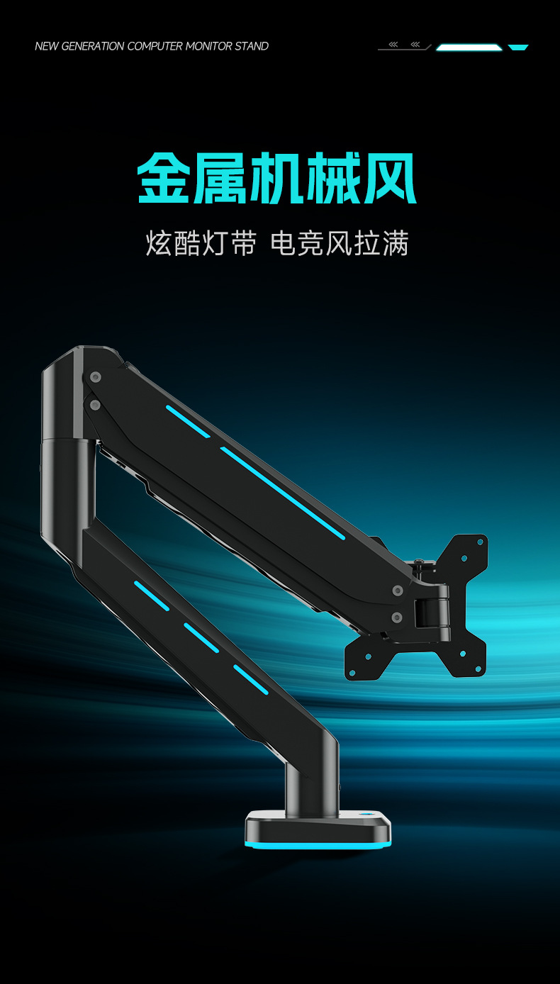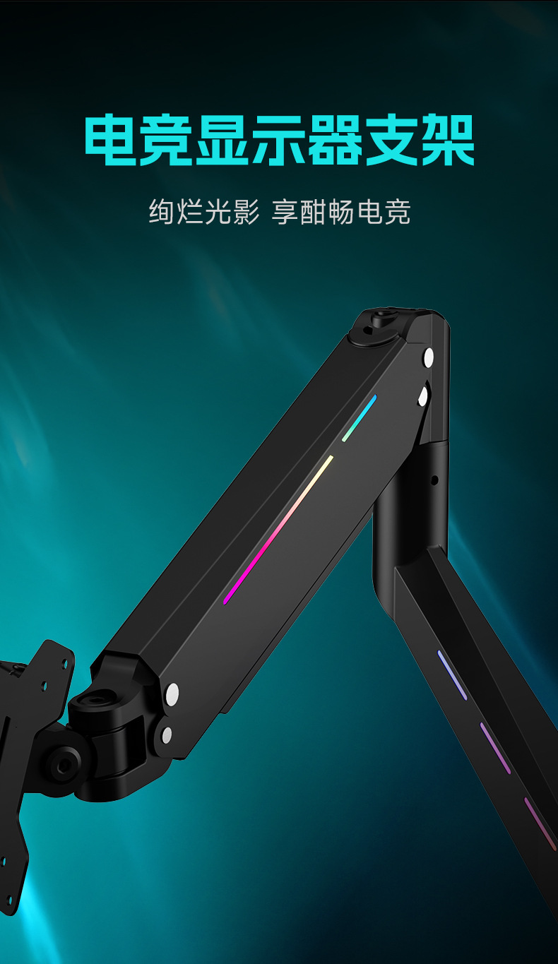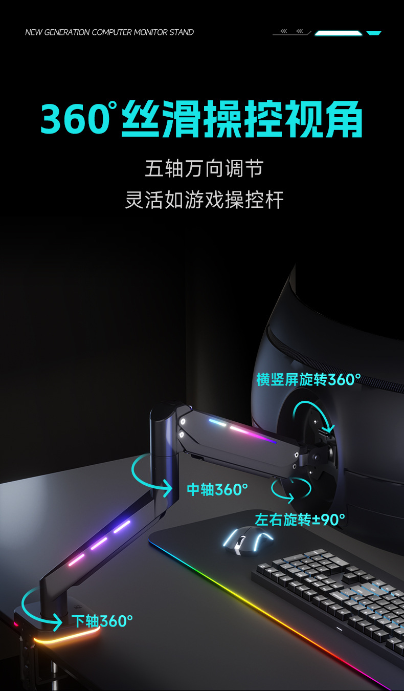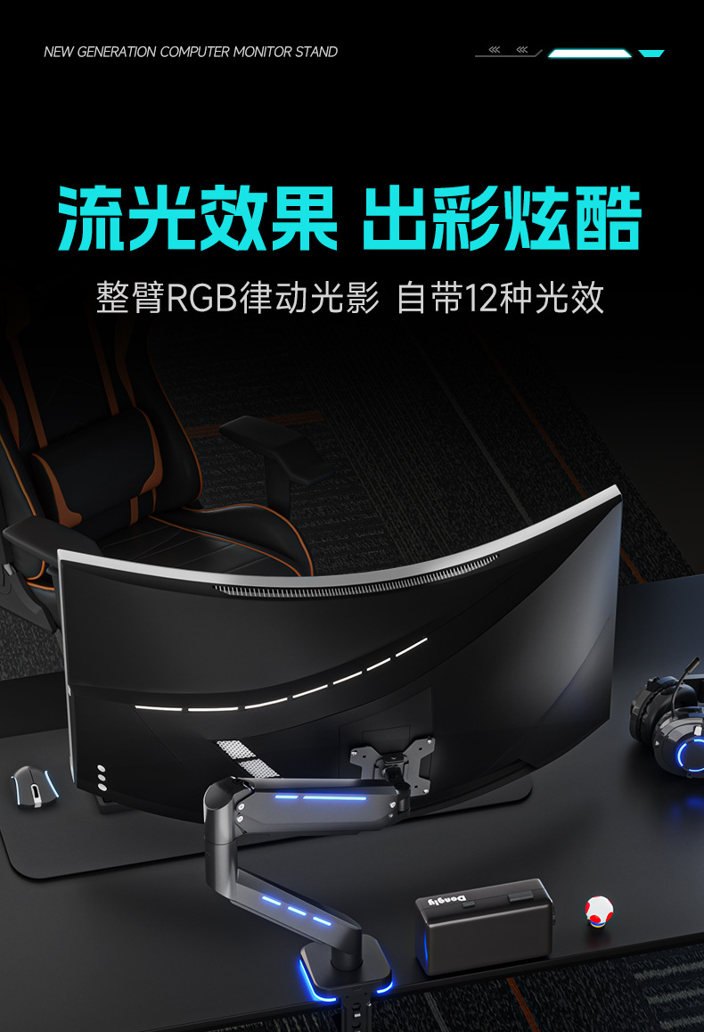 Pantalla de monitor de deportes eléctricos brazo en voladizo pantalla de computadora vesa base brazo robótico RGB cyber viento Zhircheng