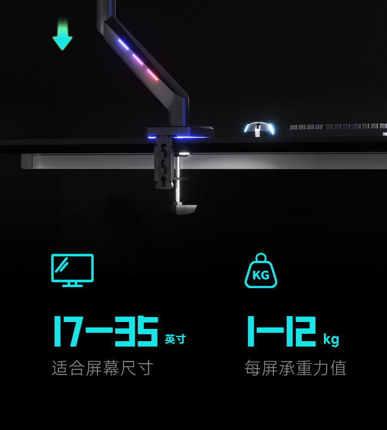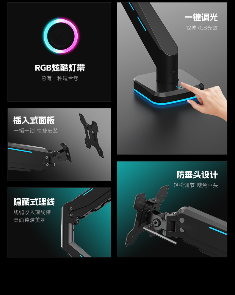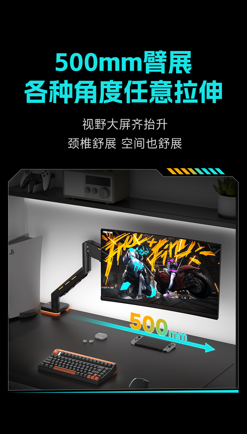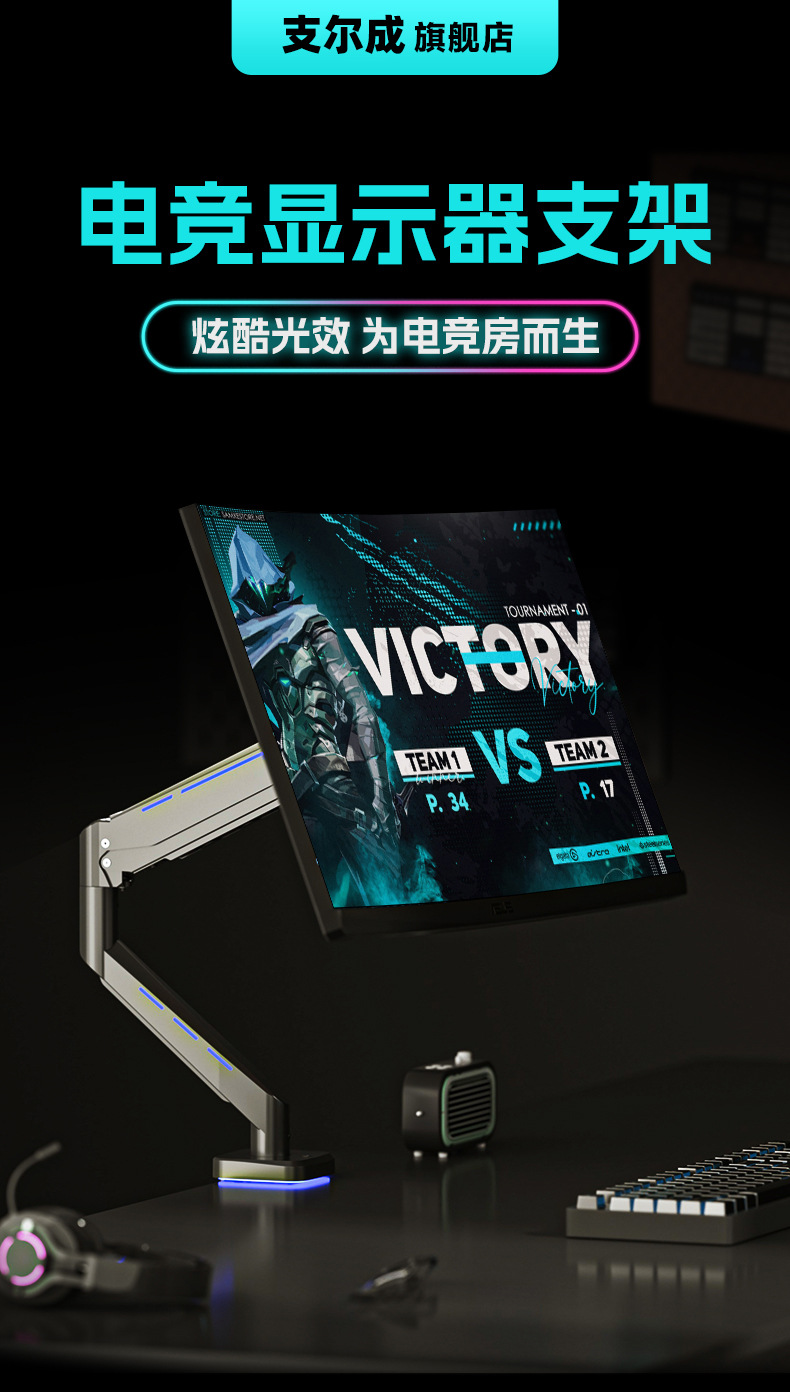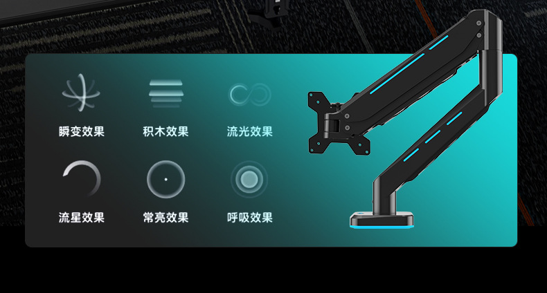 Pantalla de monitor de deportes eléctricos brazo en voladizo pantalla de computadora vesa base brazo robótico RGB cyber viento Zhircheng