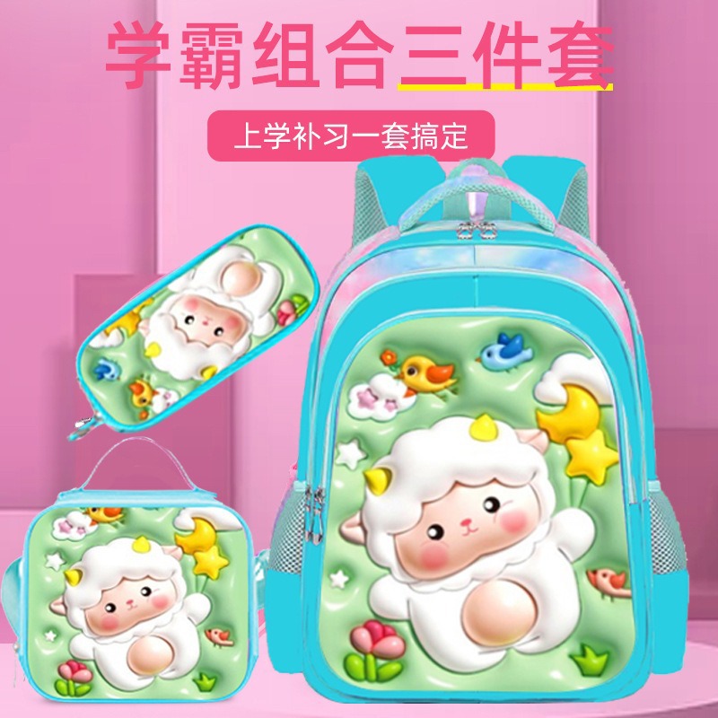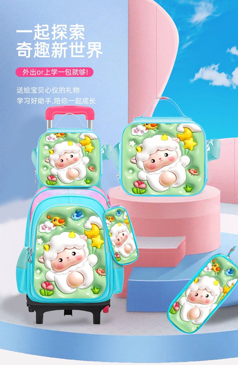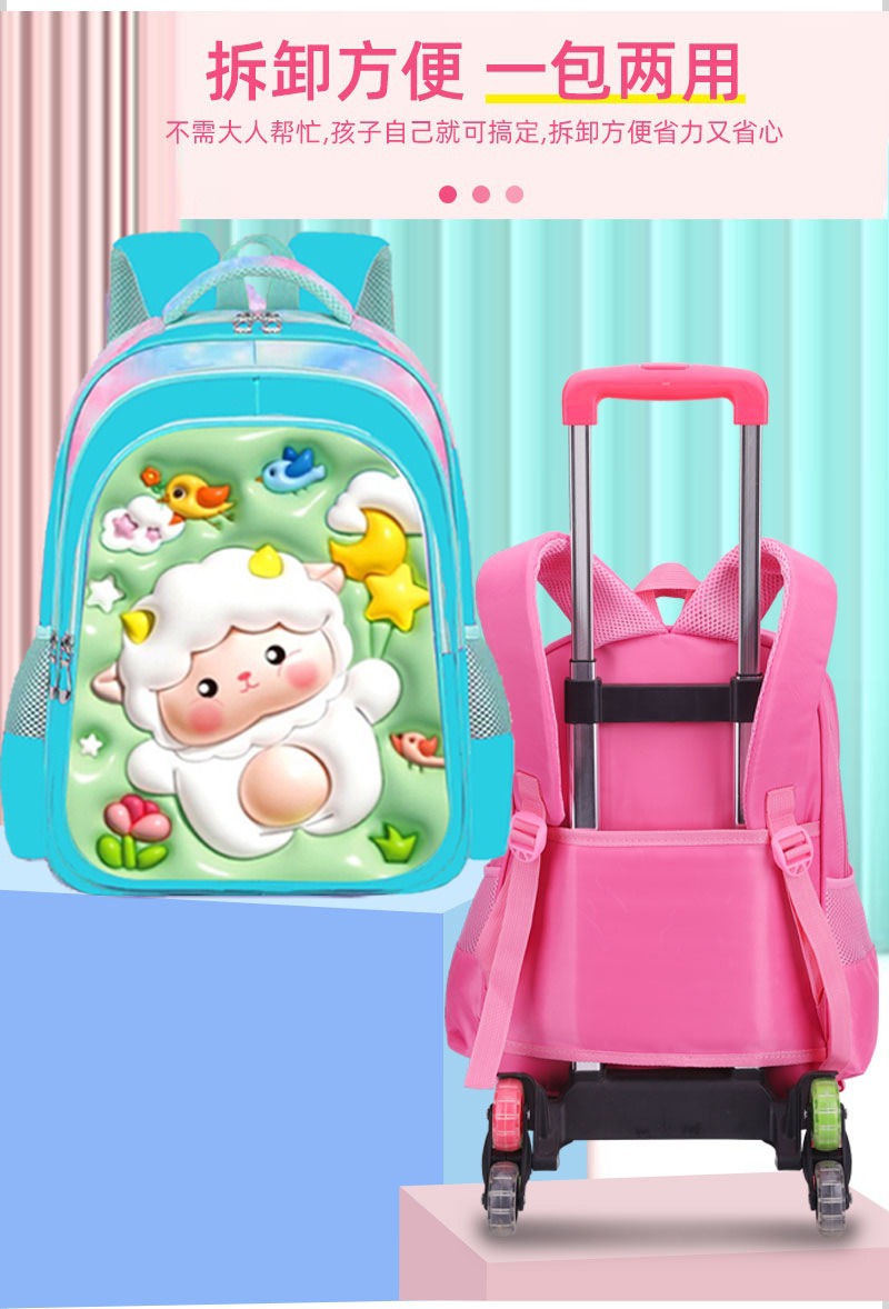 Los nuevos estudiantes de primaria transfronterizos pueden instalar una mochila escolar de dos ruedas y seis ruedas con barra de tracción, mochila de dibujos animados lindo para niños de tres piezas