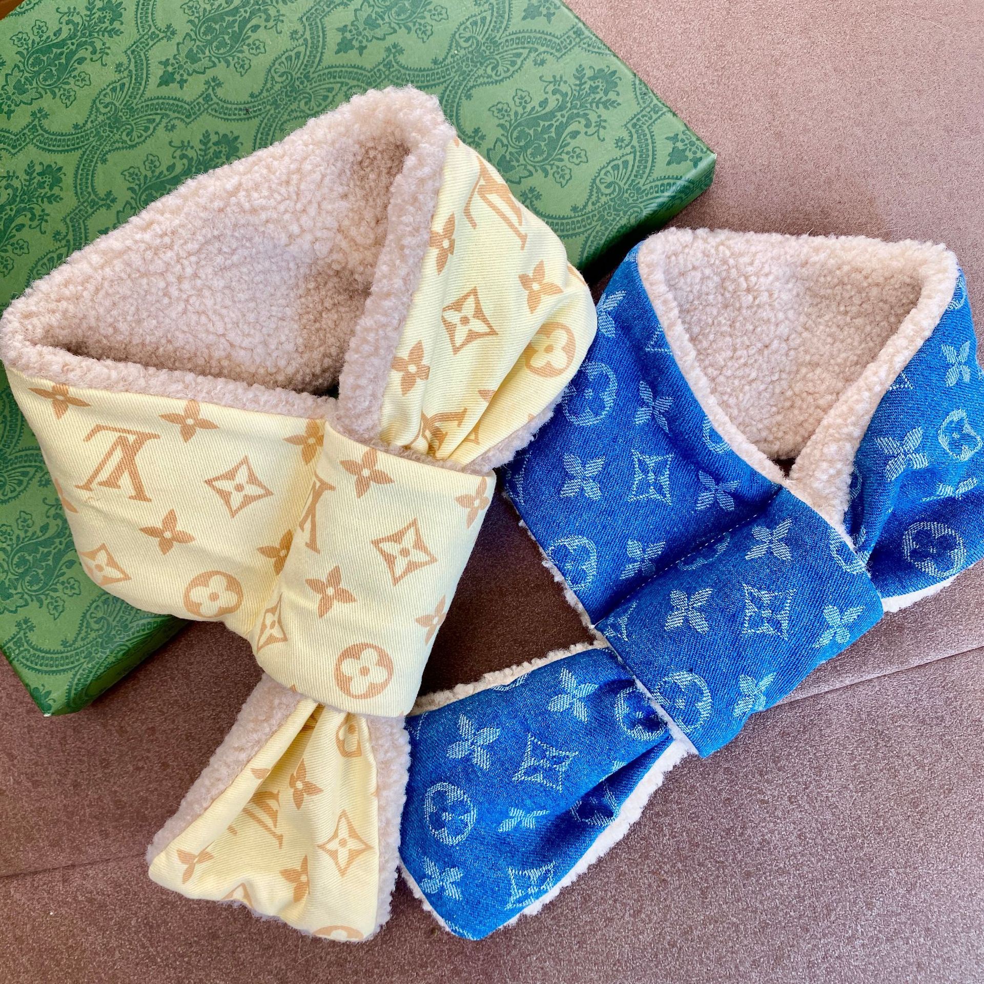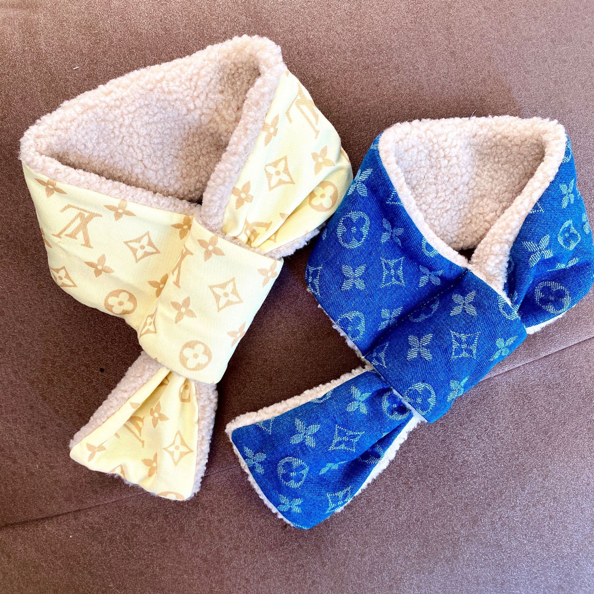 Bufandas de mascotas cálidas de invierno marca de moda de cordero de dos colores vaqueros perros grandes accesorios perros perros cachorros buñuelos Schenerite