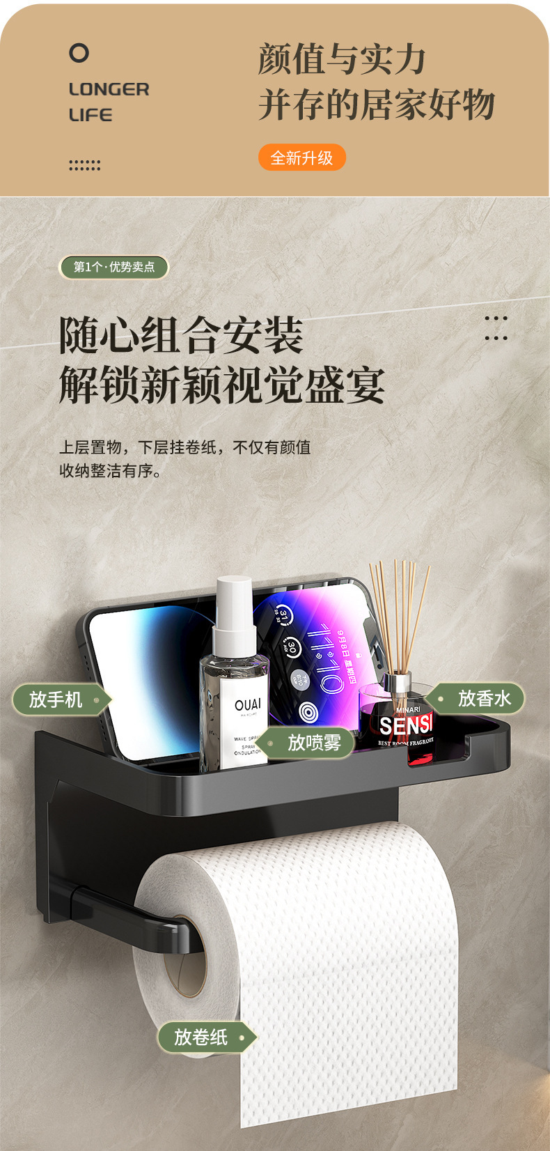 Caja de toallas de papel estante de almacenamiento tipo pared extractor de papel estante de papel de baño estante de papel de rollo estante de almacenamiento de baño simple almacenamiento de baño