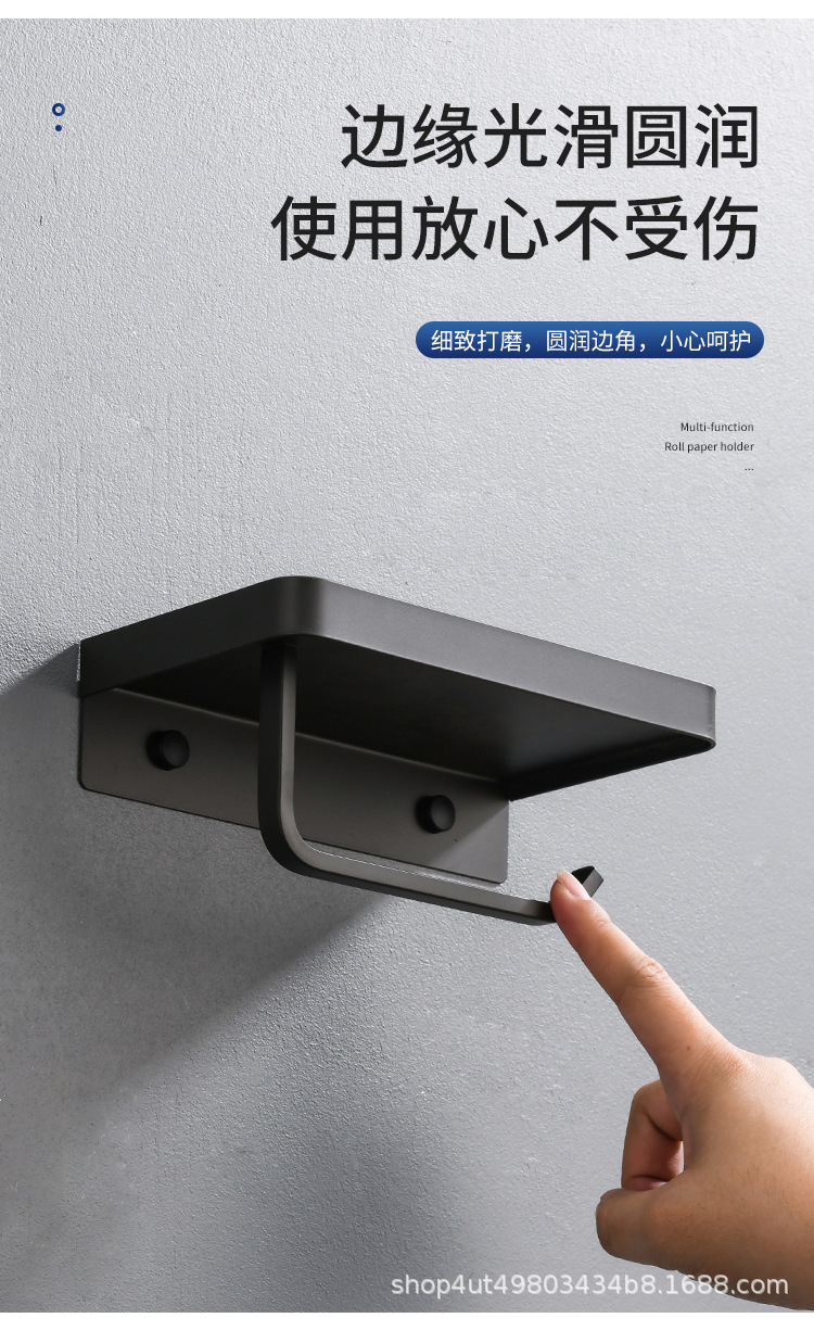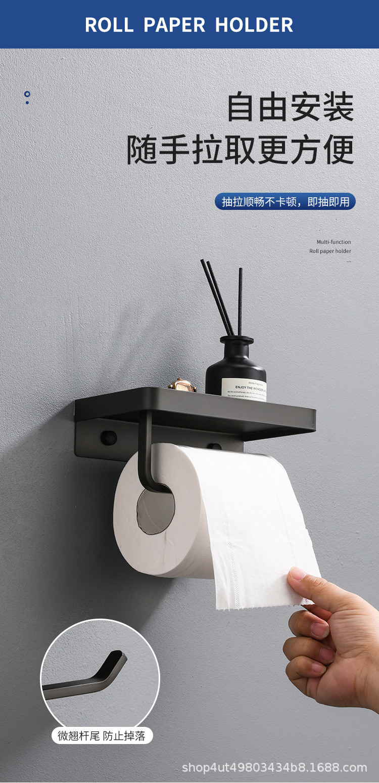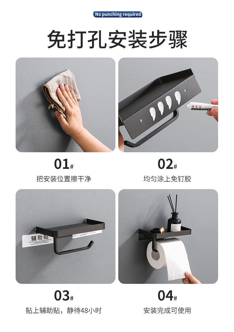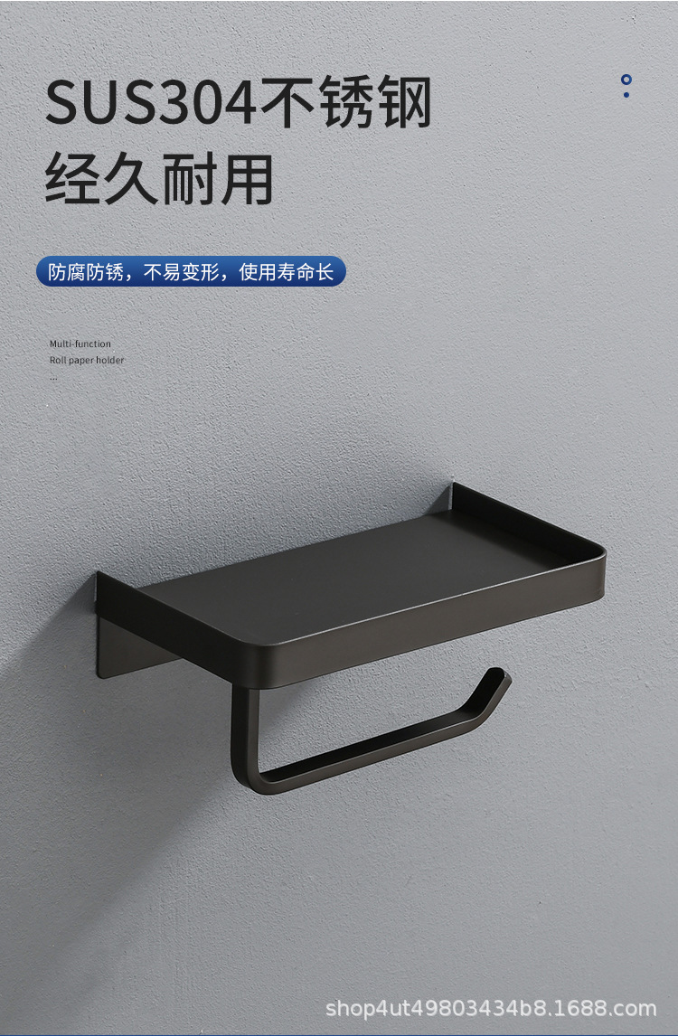 Guns gris 304 acero inoxidable baño de teléfono móvil inodoro roll toallitas inodoro caja de toallitas negras sin perforación