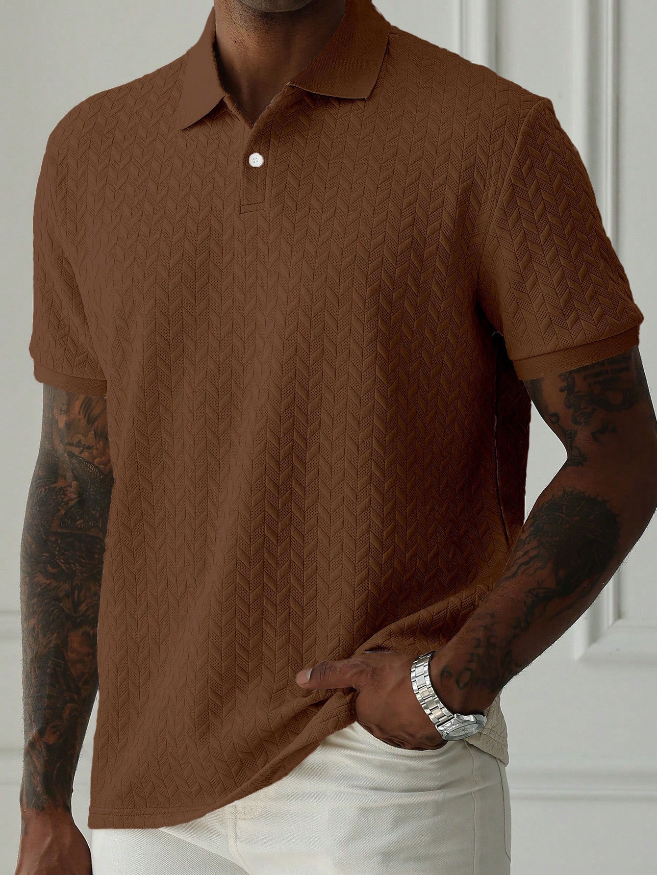 Polo de manga corta texturizado informal para hombre, estilo europeo y americano, exportación de verano 2026, Amazon Temu1008