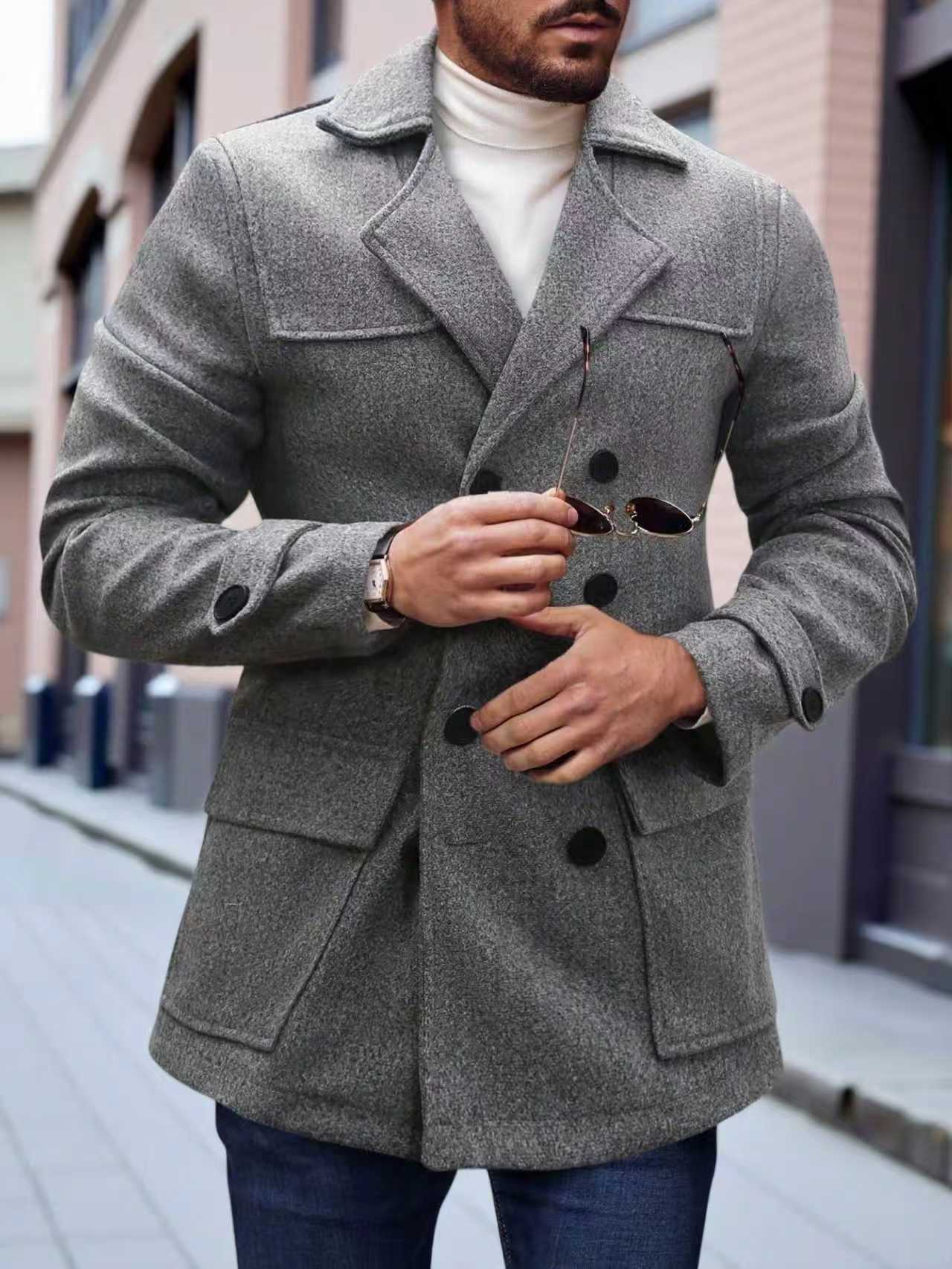Abrigo de Lana Cruzado Retro para Hombre, Estilo Europeo y Americano, Nuevo Otoño/Invierno 2025, Amazon