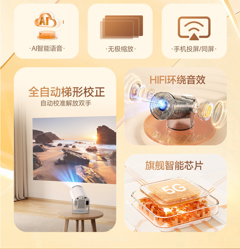 Nuevo proyector HY300 en el extranjero pequeño proyector de cañón de alta definición mini inteligente de pared de dormitorio