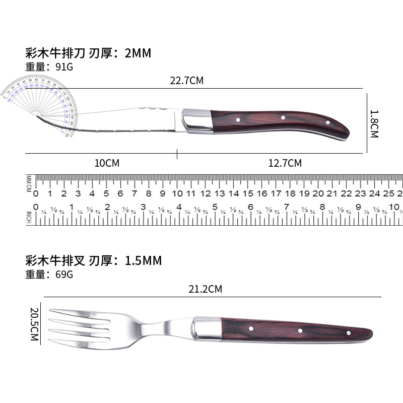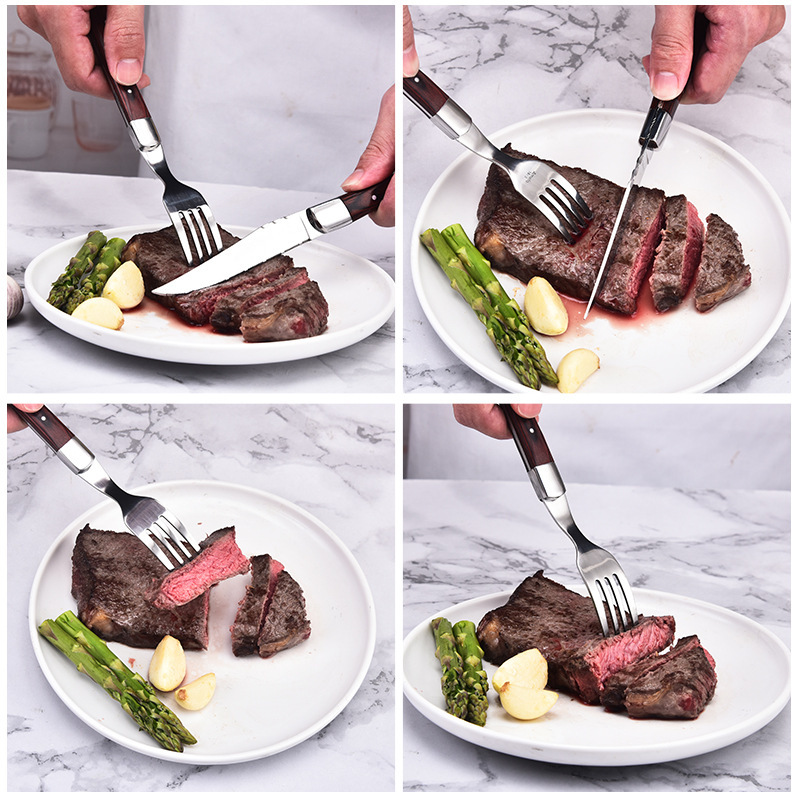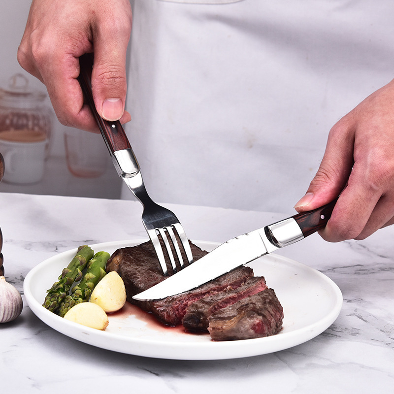 Nuevo cuchillo y tenedor de carne de res de acero inoxidable vajilla occidental creativa cuchillo de carne mango de madera juego de vajilla de regalo en stock