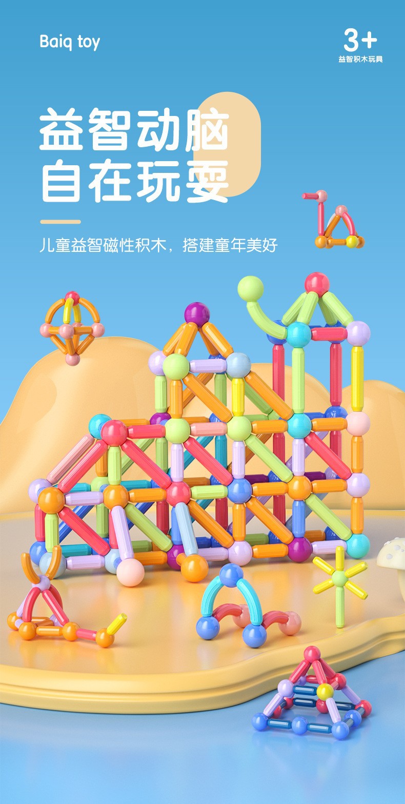 Barras magnéticas transfronterizas, juguetes magnéticos para niños, desarrollo de inteligencia, fábricas de bloques de construcción para hombres y mujeres.