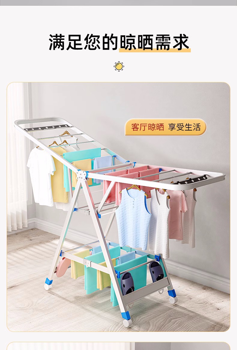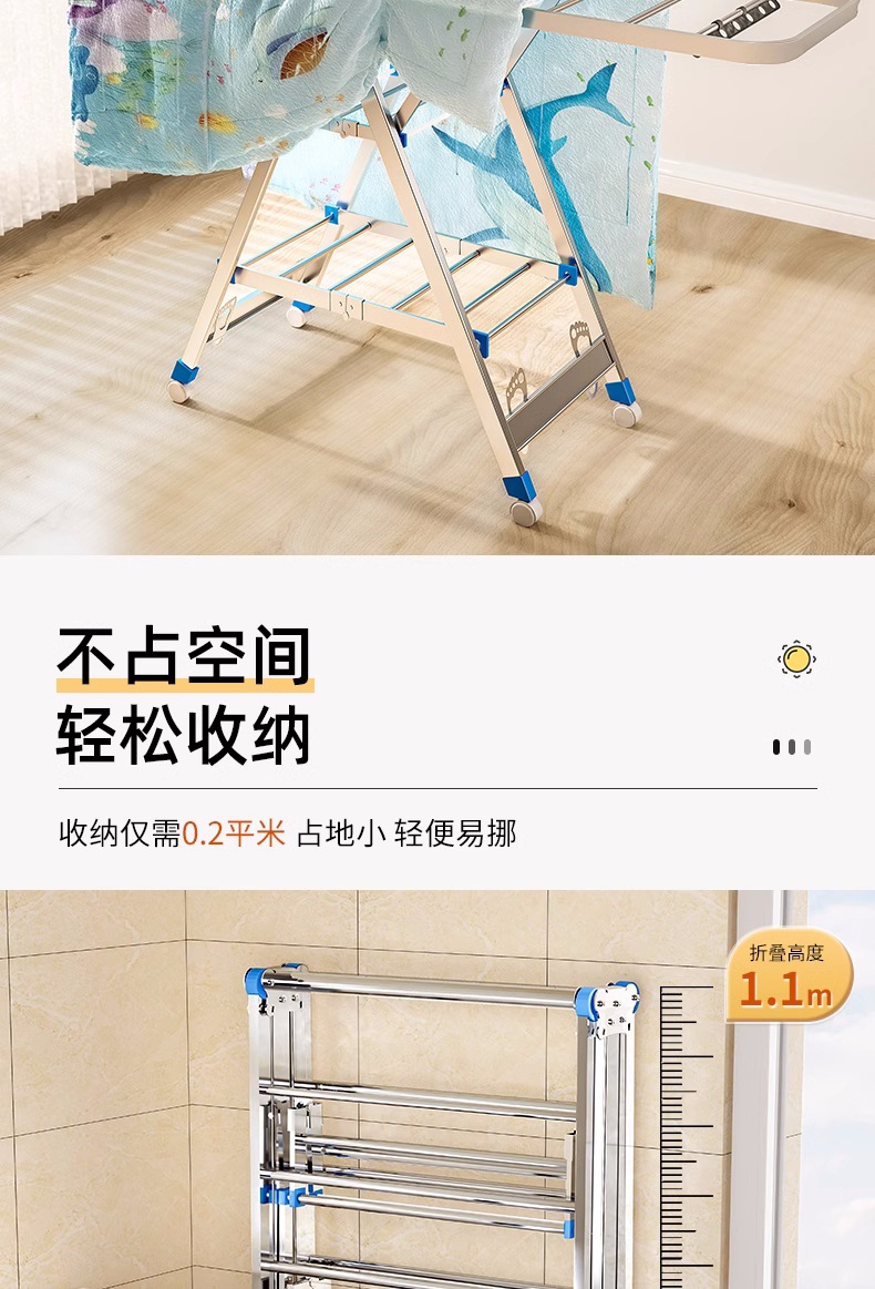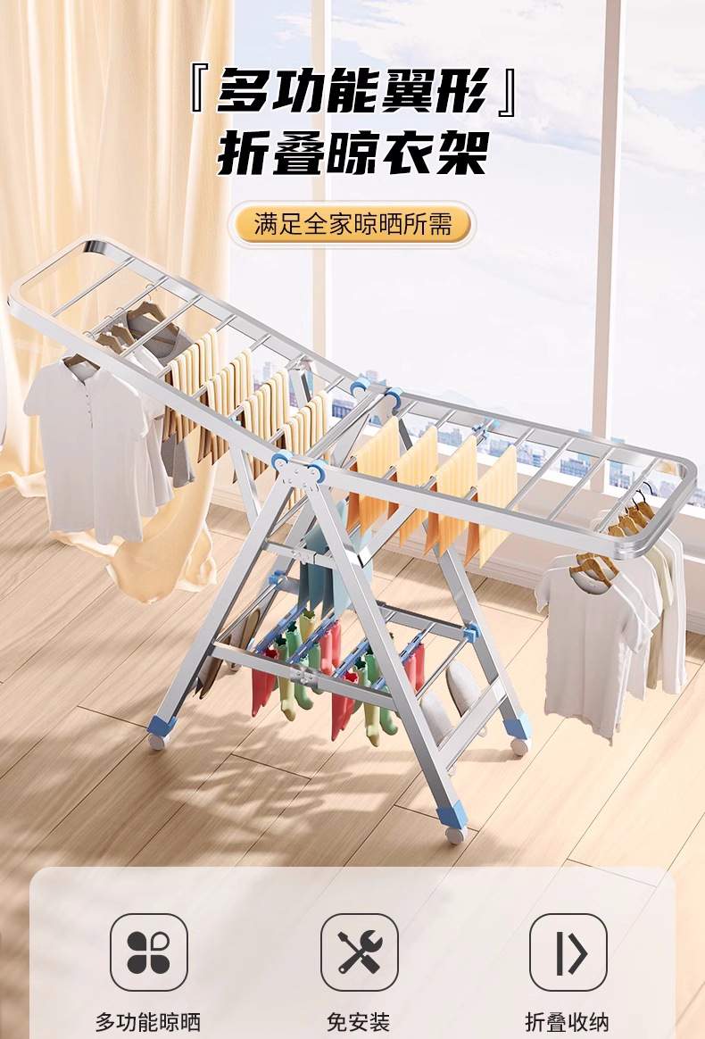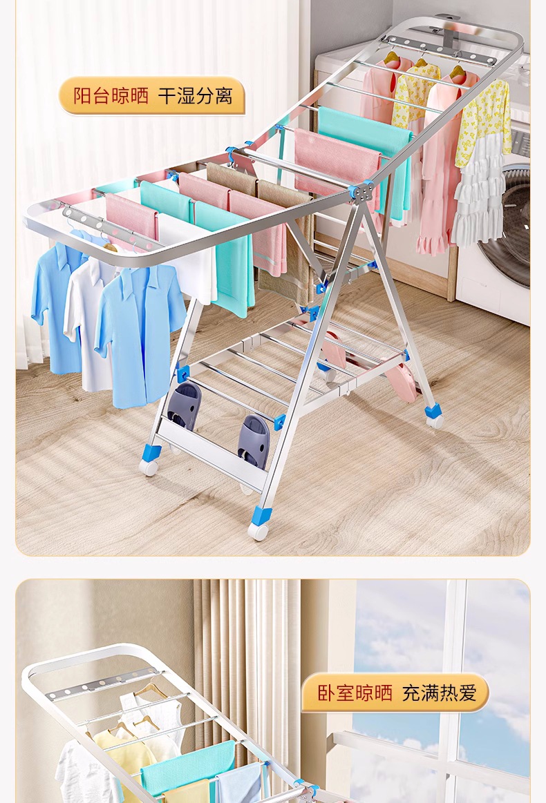 Acero inoxidable plegable percha de ala gruesa móvil percha de secado percha de secado percha de terraza gruesa percha de piso para el hogar