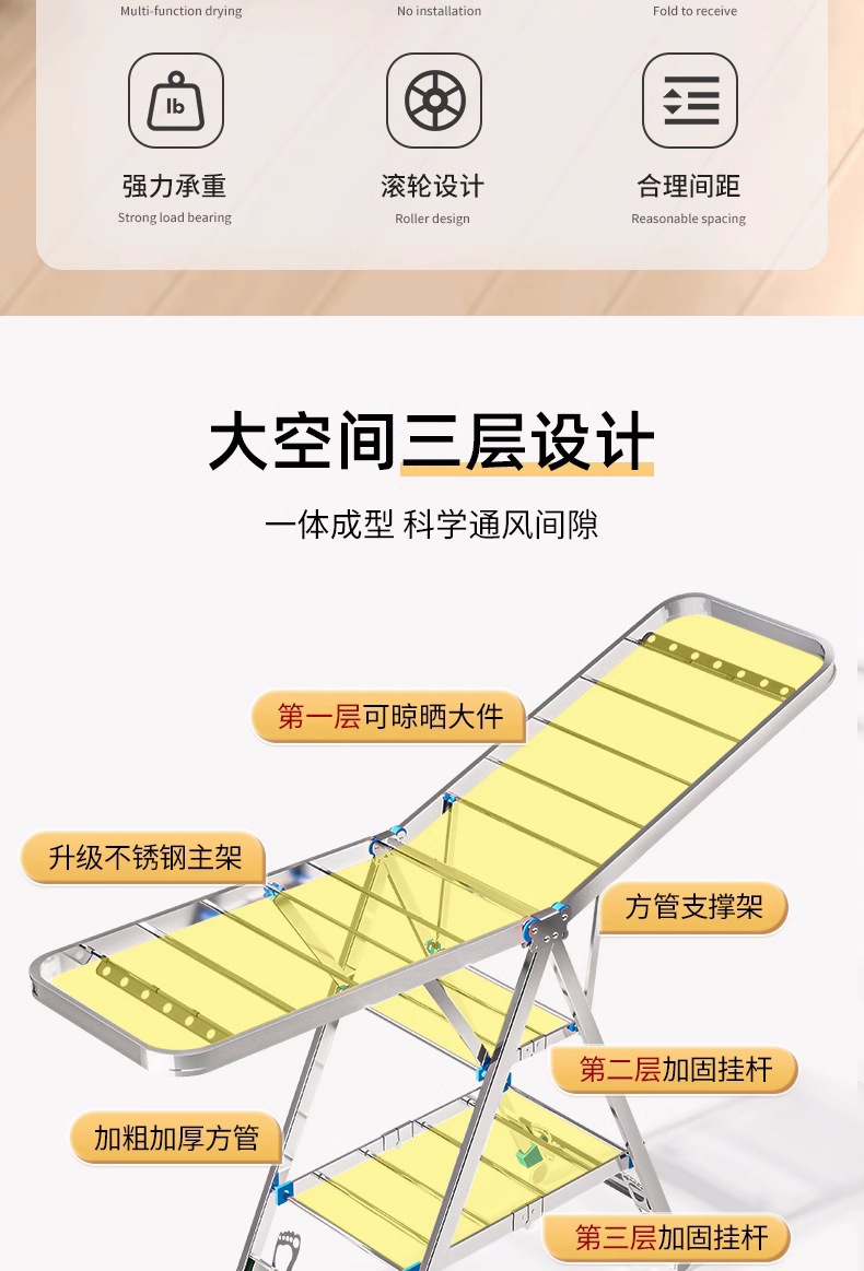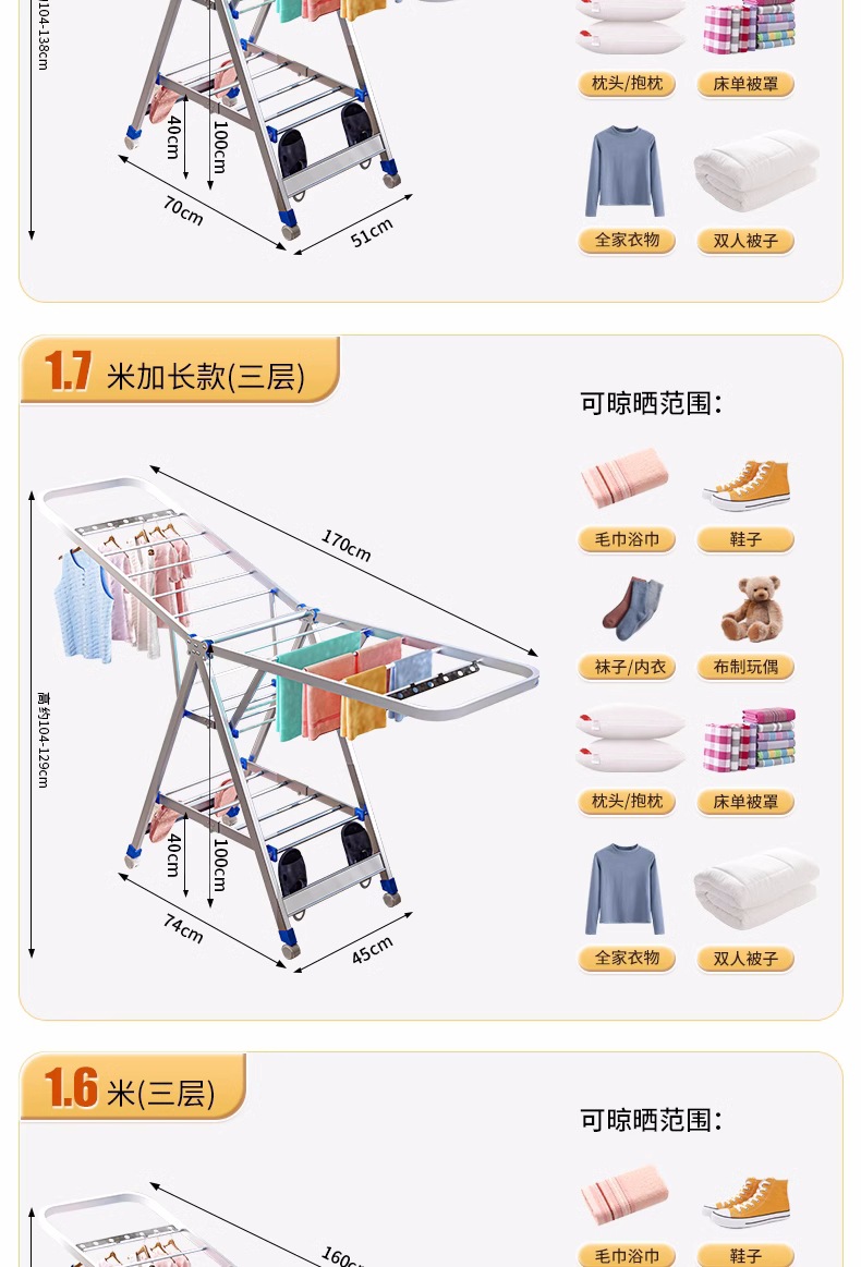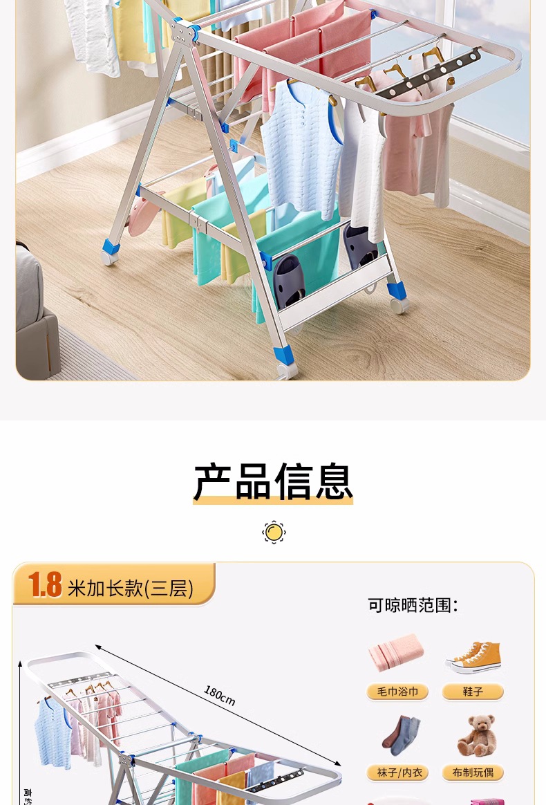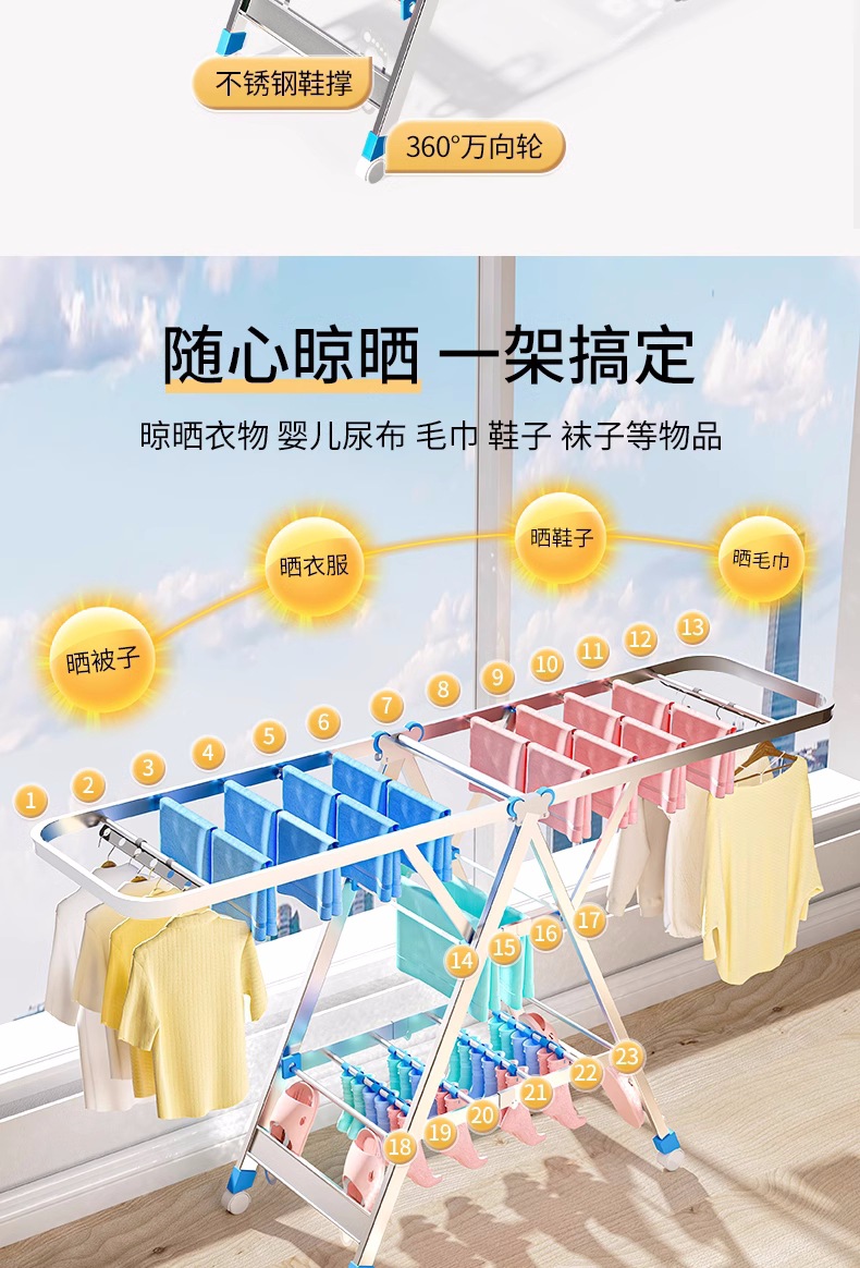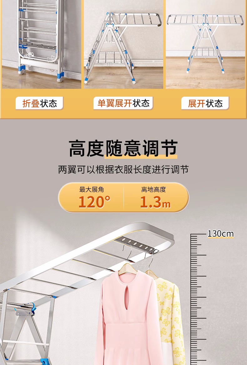 Acero inoxidable plegable percha de ala gruesa móvil percha de secado percha de secado percha de terraza gruesa percha de piso para el hogar