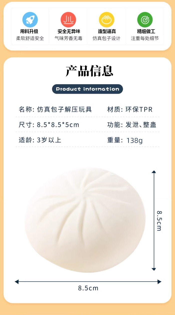 Juguete de peluche grande para aliviar el estrés, aprieta y desahoga, juguete de broma de TPR de rebote lento tipo xiaolongbao, juguete simulado para apretar.