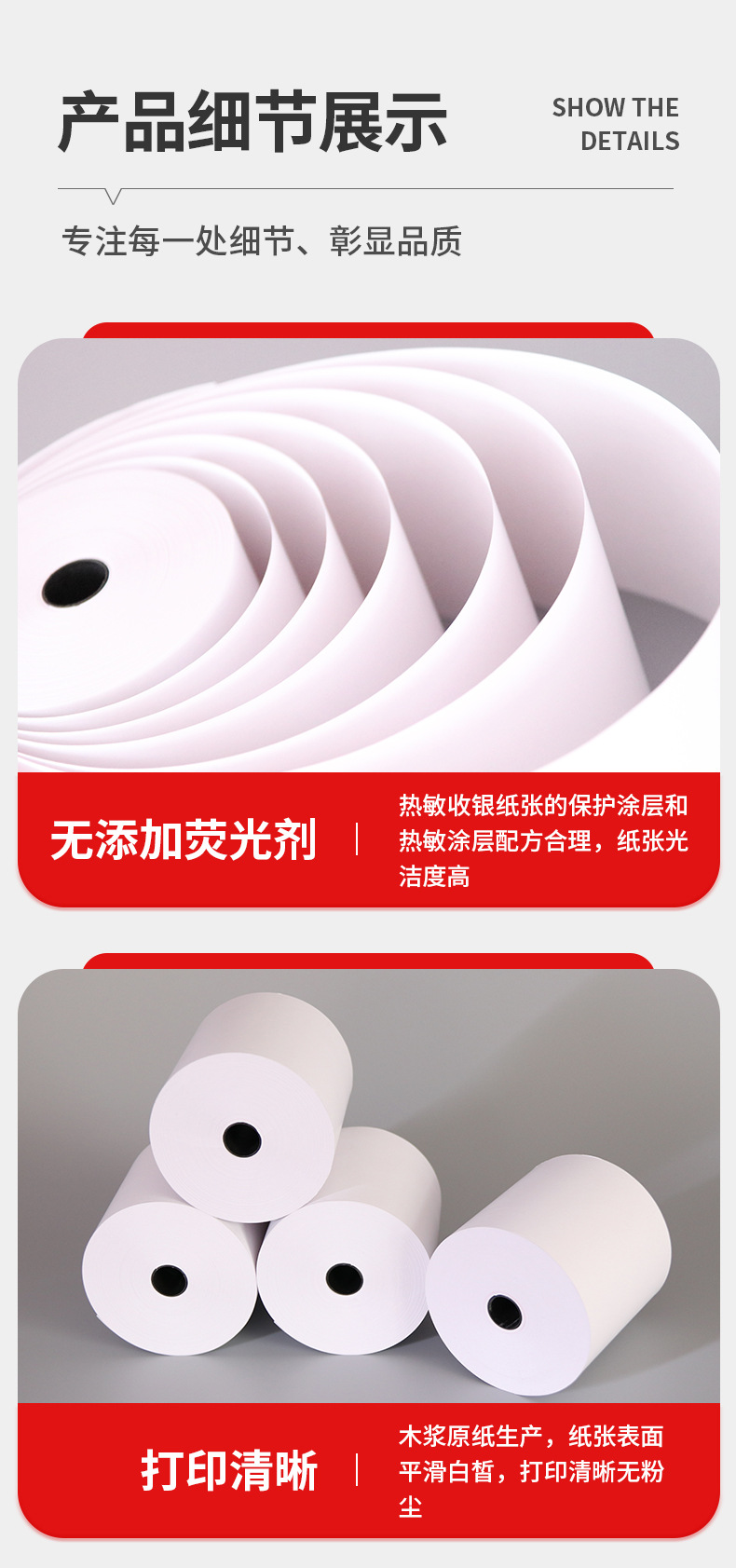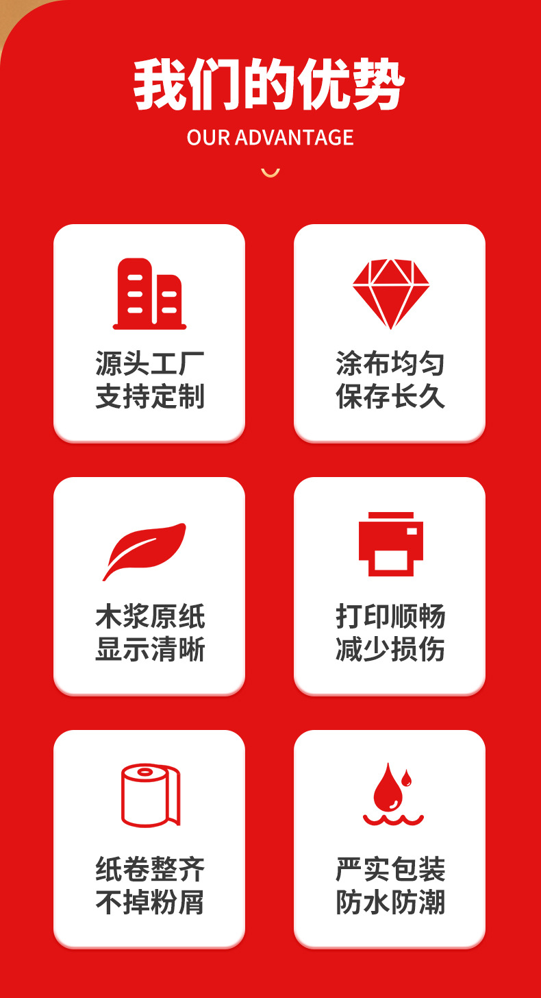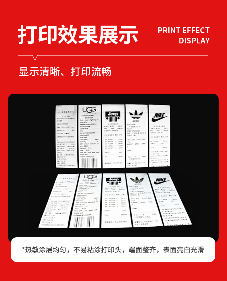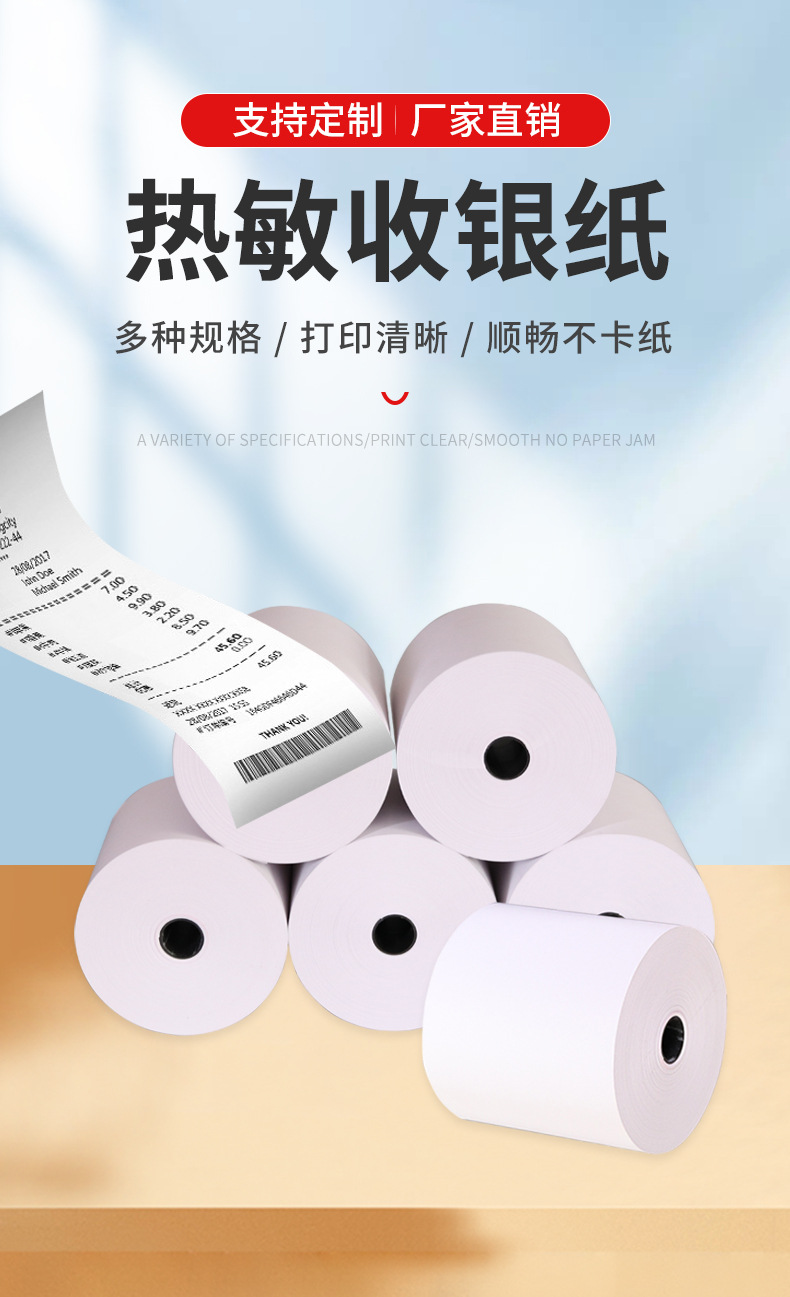 Rollos de papel térmico de núcleo pequeño 80x60, 50 rollos/caja, estilo delgado, 45 metros