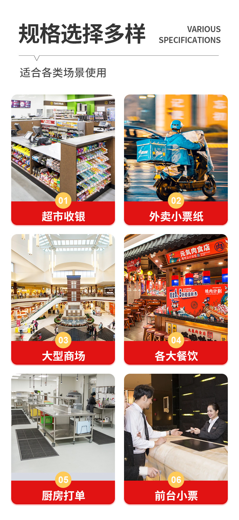 Papel de caja registradora 80x80 Meituan Papel de recibo 57x50 impresora térmica de caja registradora rollo de papel 80mm60 papel de impresión para llevar